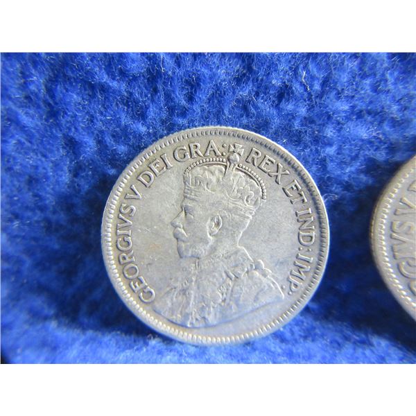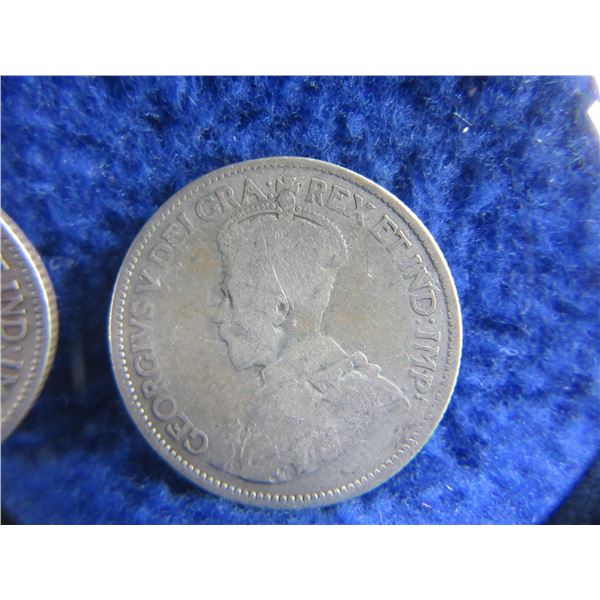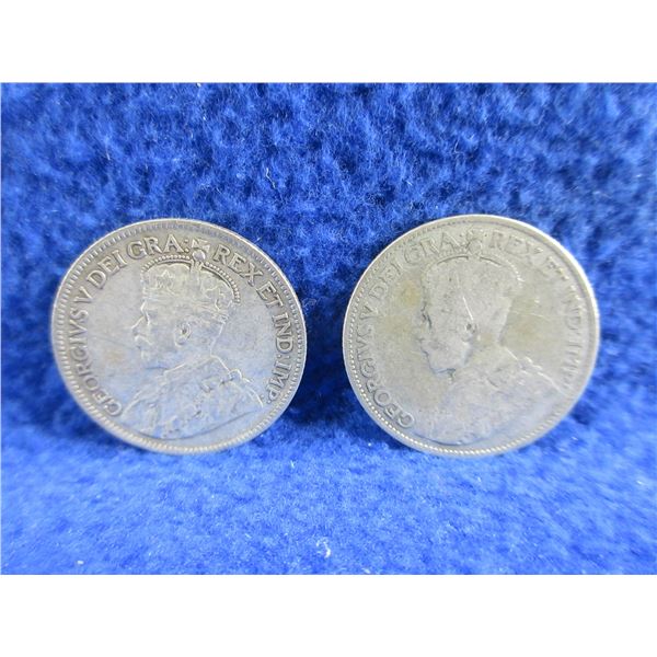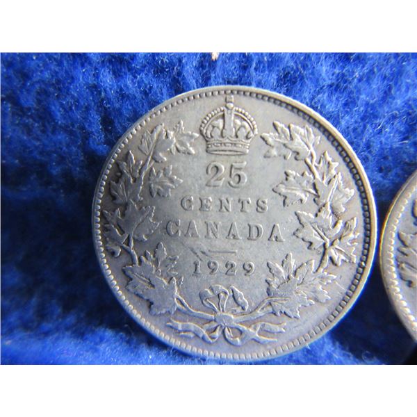 2 Canadian 25 Cent Coins - .800 Silver - 1929 & 192? (Illegible)