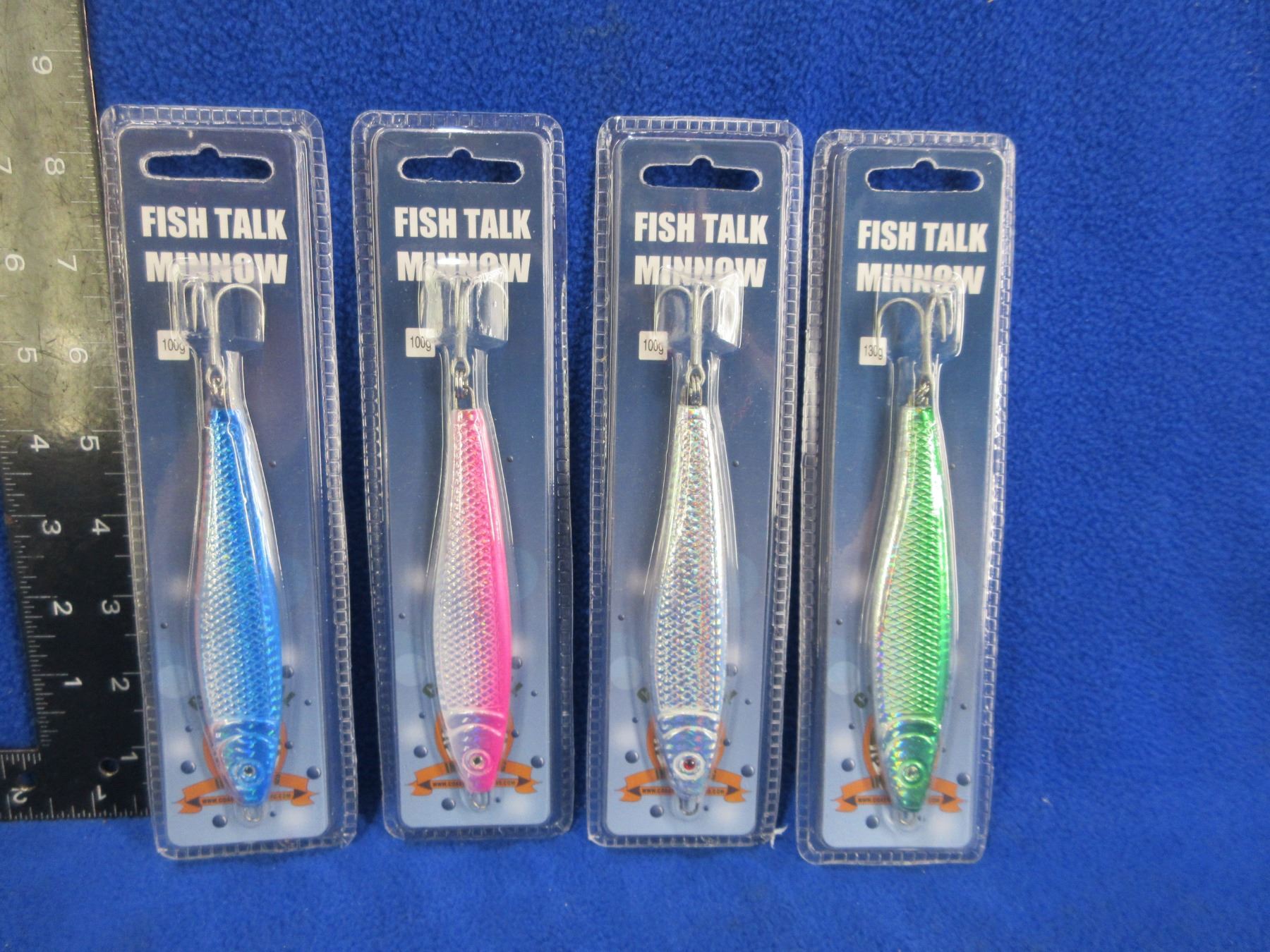 Lot 474 NEW - 4 Fish Talk Minnow Lures - Assorted Colors, 100g & 130g