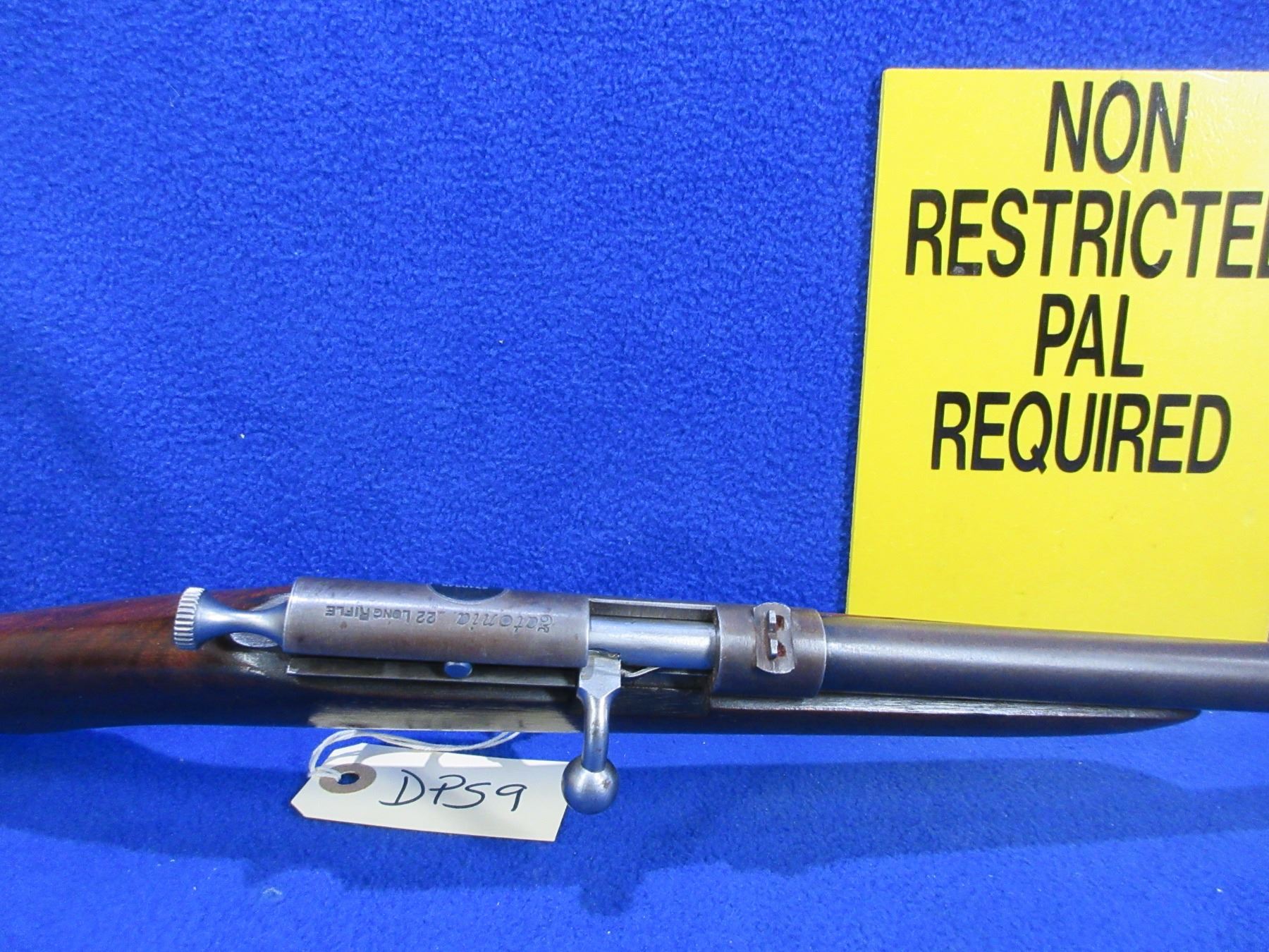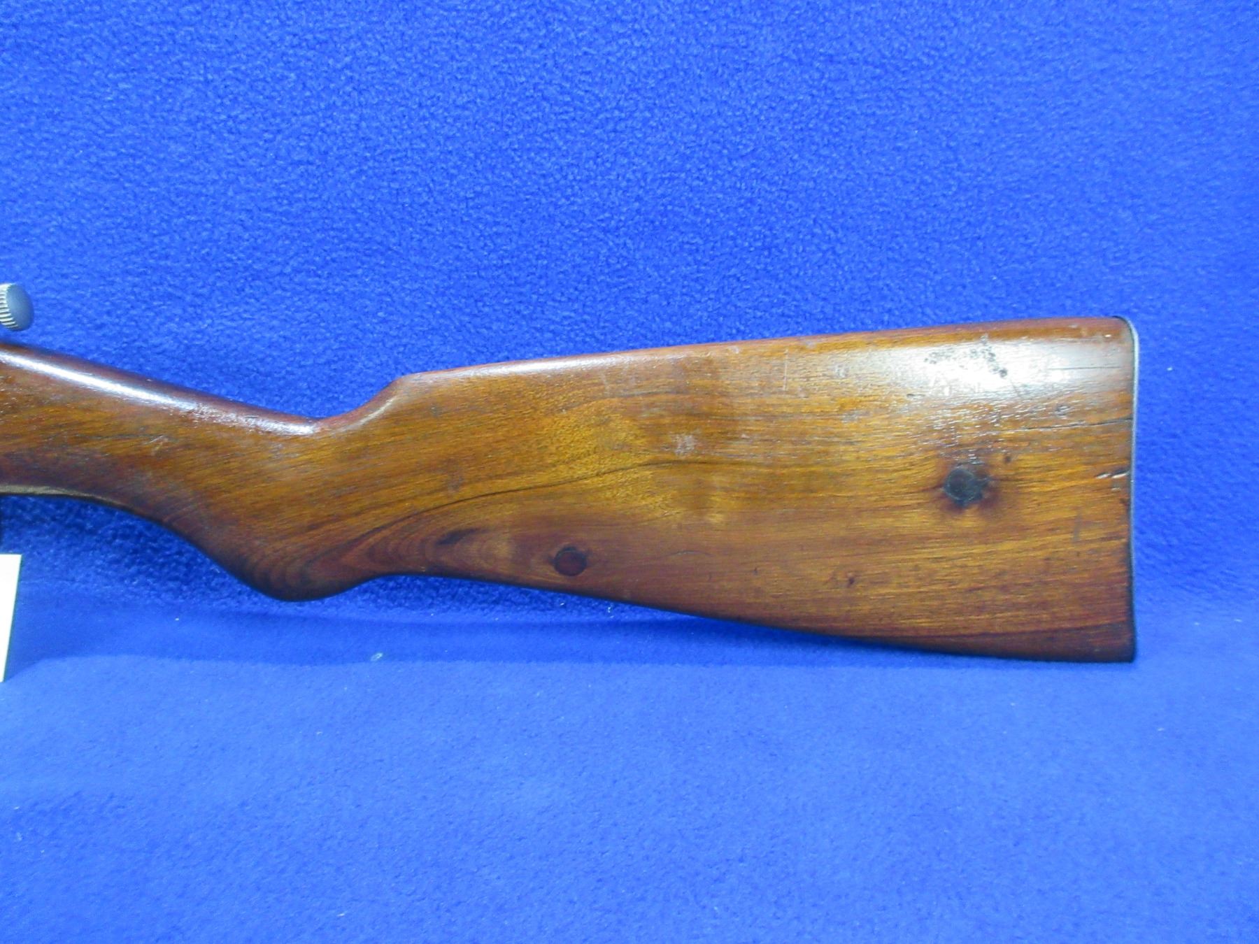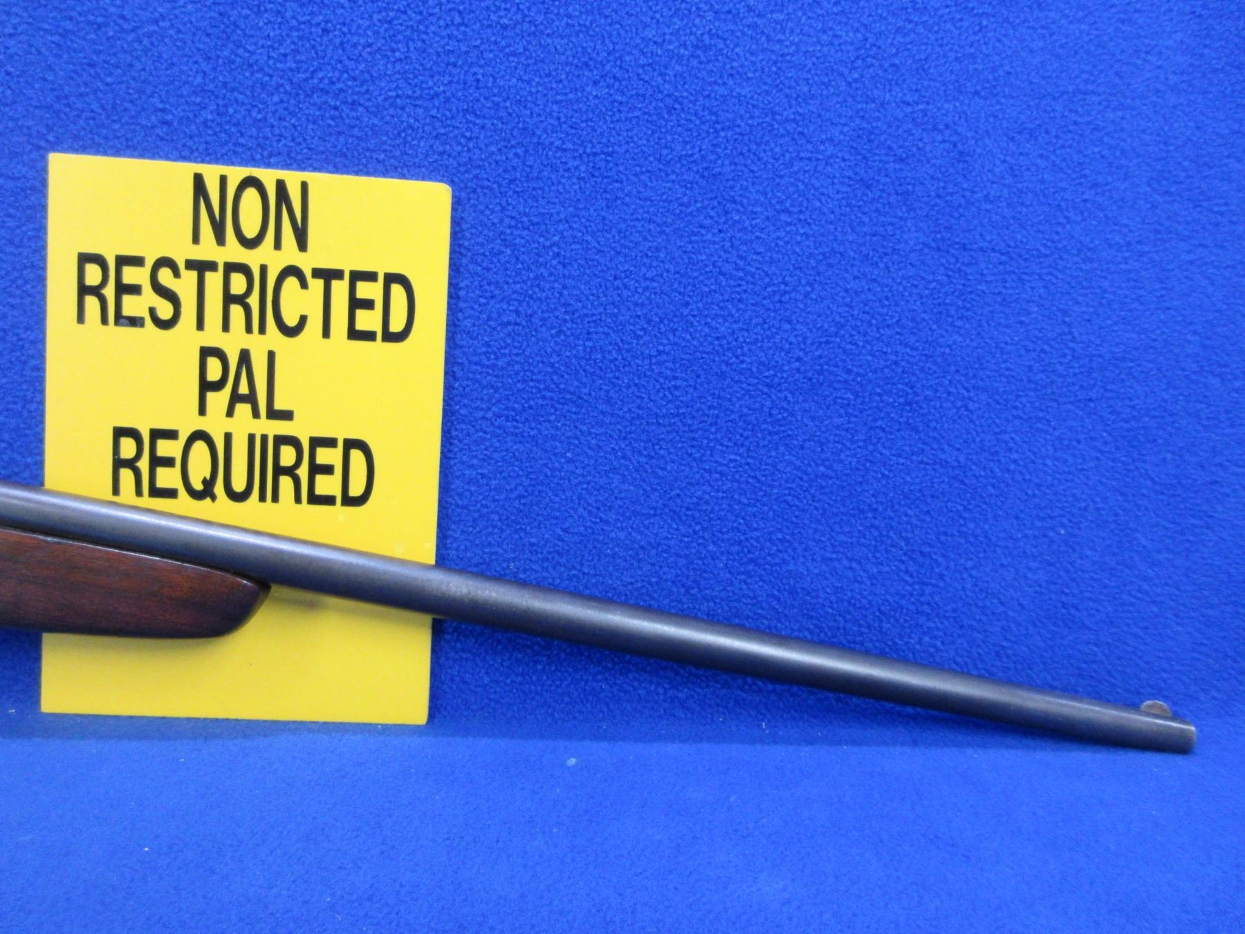 Non-Restricted - Etonia (Cooey) Single Shot in 22 LR - This is a nice, rare single shot bolt action rifle, action appears to be in good to very good working order. Barrel is 18", rifling is good to very good, bluing is mostly grey, has both sights, stock is good with usage marks and some drying cracks on the butt, length of pull is 15", metal butt plate good. Ser # 5710345 on Sticker