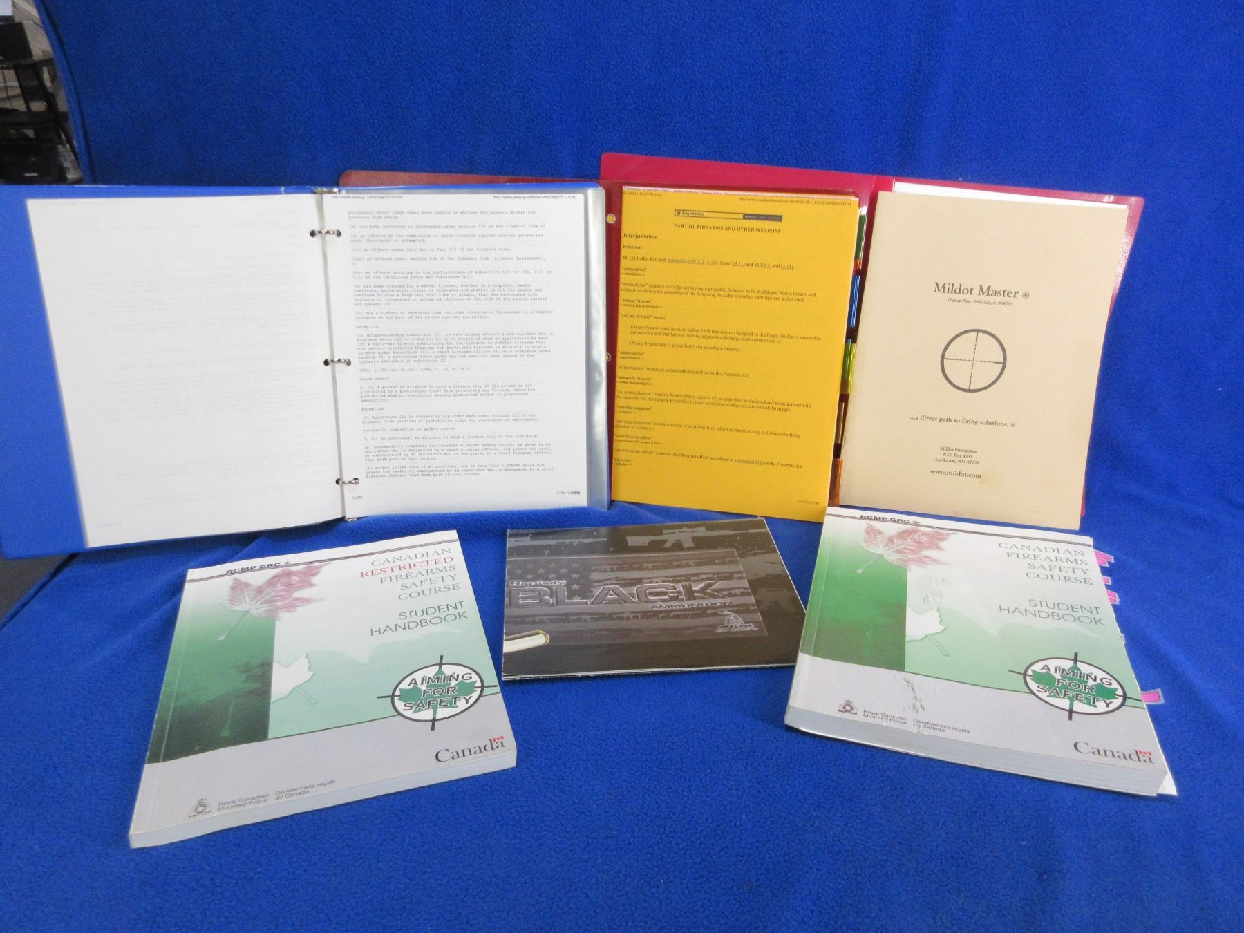 5 Books and 1 Poster - Canadian Firearms Safety Course, Mildot Master, Firearms Act, Hornady Bullet Poster