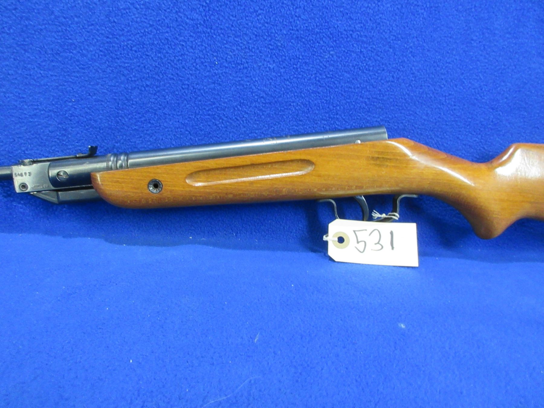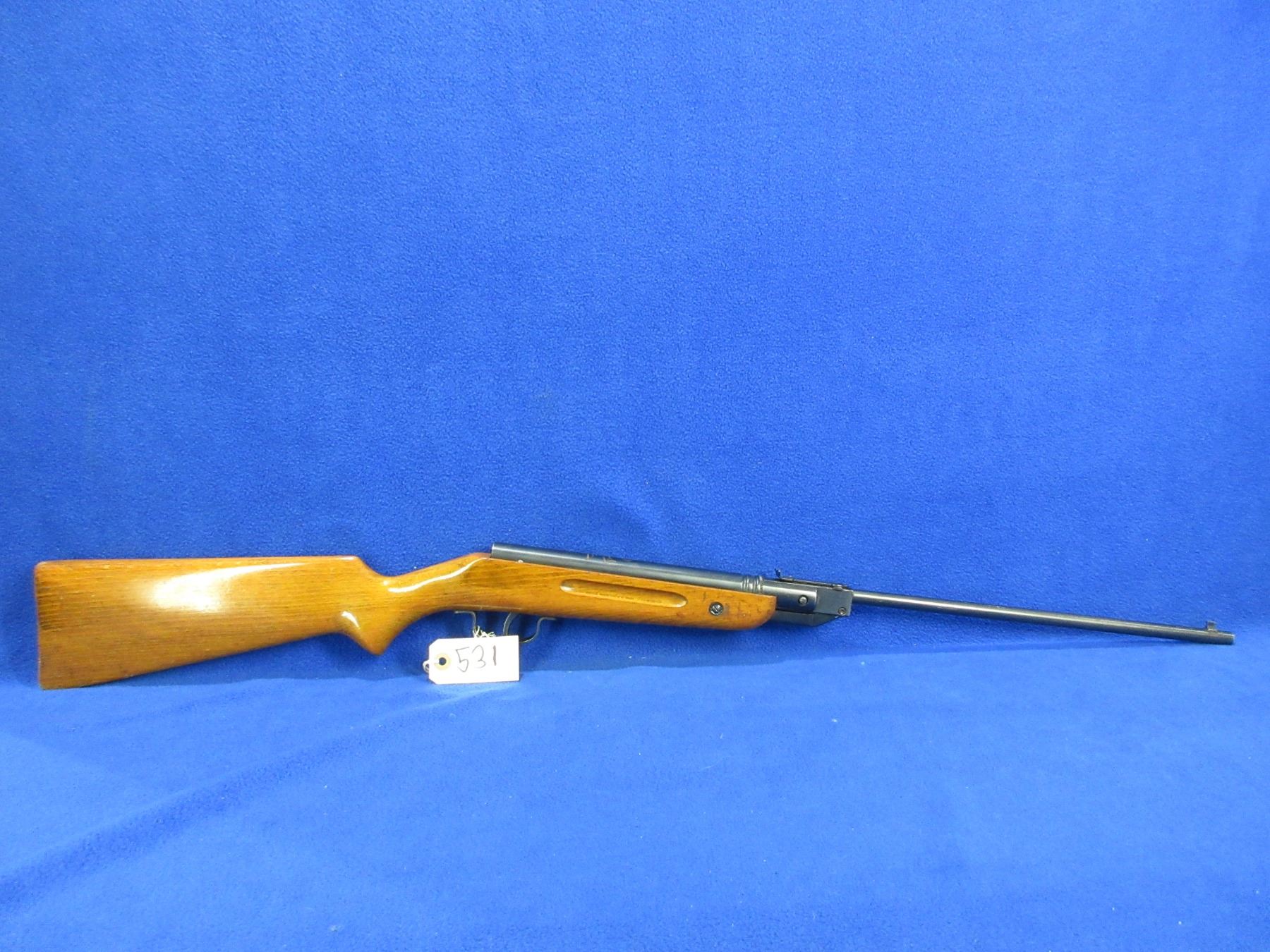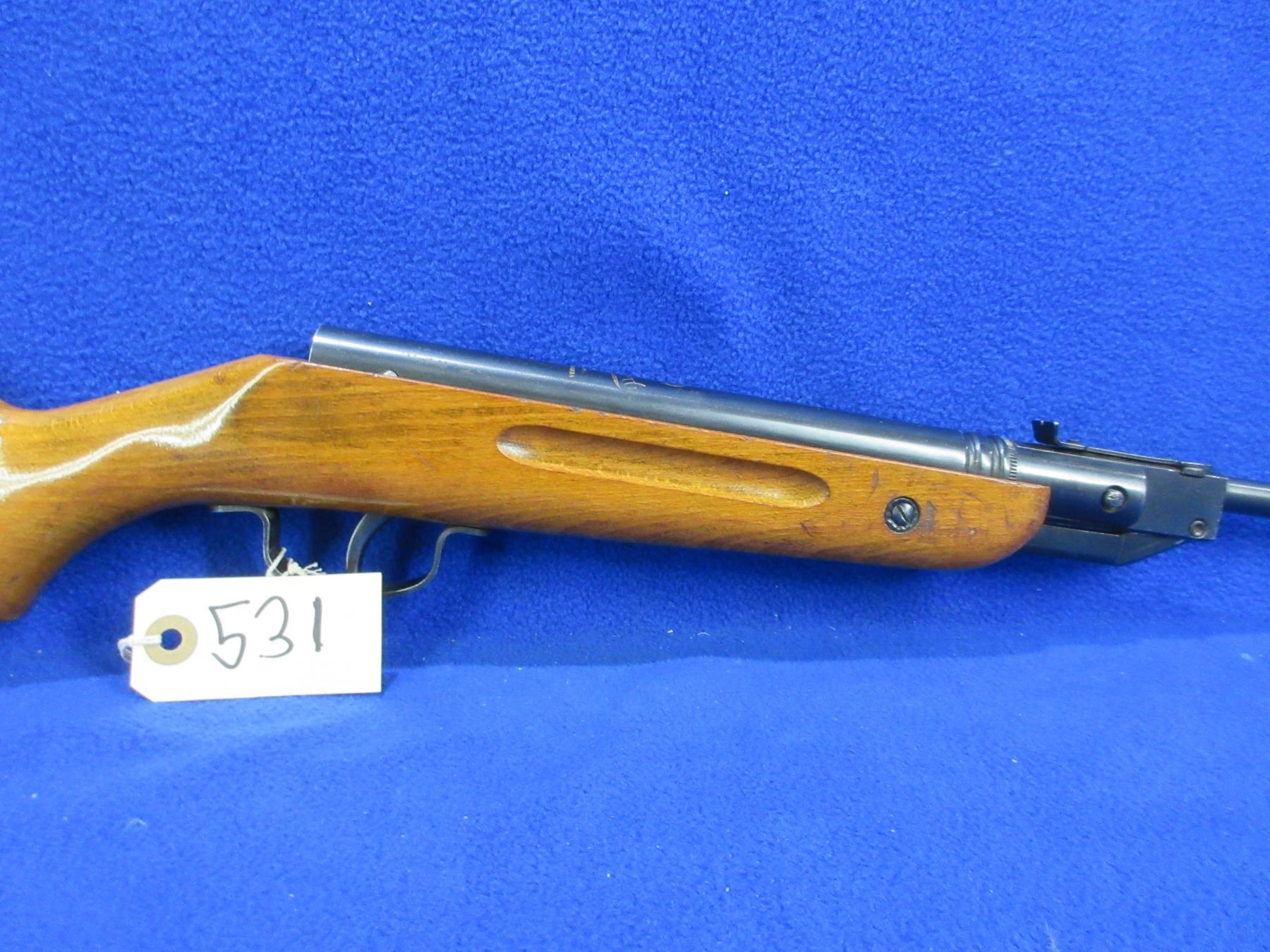 No PAL Required - Liberty Air Rifle in 177 Cal. - Made in Czechslovakia, this is a break barrel action single shot air rifle, action appears to be in good to very good working order. Barrel is 16", rifling is good to very good, bluing is good to very good, has both sights, stock is good to very good with usage marks but is missing 1 forearm screw, length of pull is 14". Ser # 54617