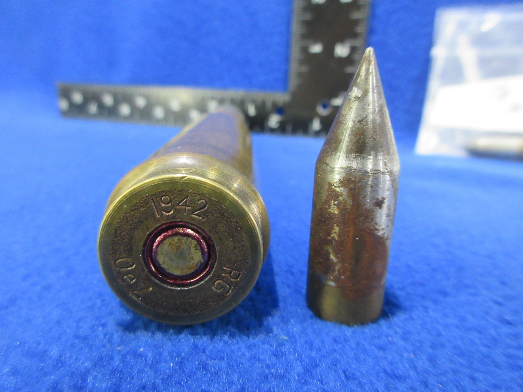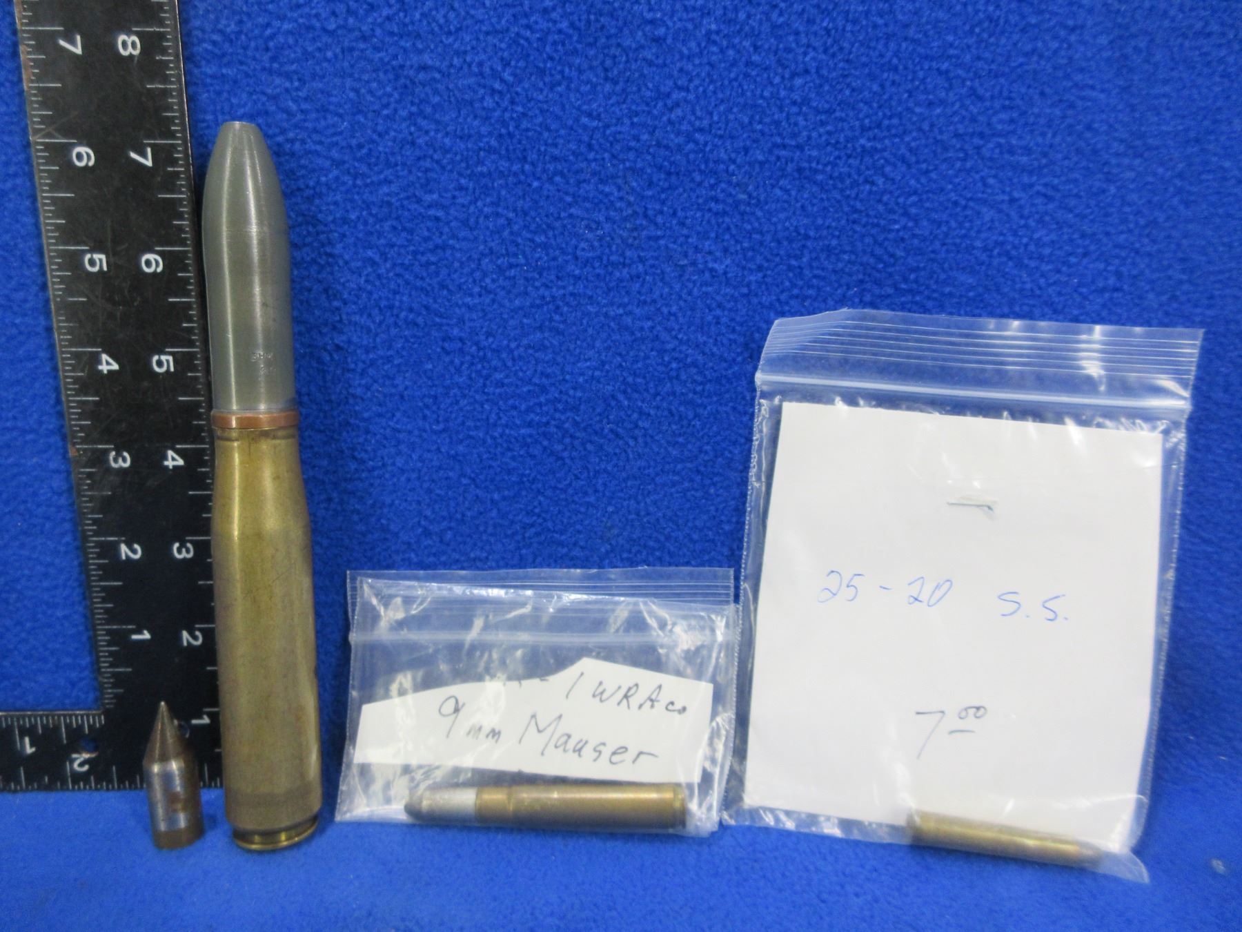 Collector Ammo - 3 Misc. Cartridges (Pick Up or Ship by UPS Only) - 20MM (1942), 9MM Mauser WRA Co., 25-20 UMC and a 50 Cal. Bullet