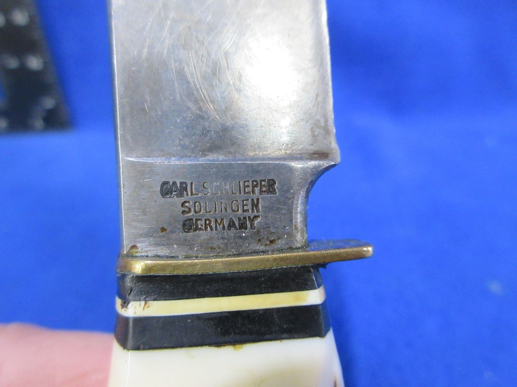 Carl Schlieper Fixed Blade Knife w/ Leather Sheath - 5" Blade, 9" Total Length - Solingen, Germany