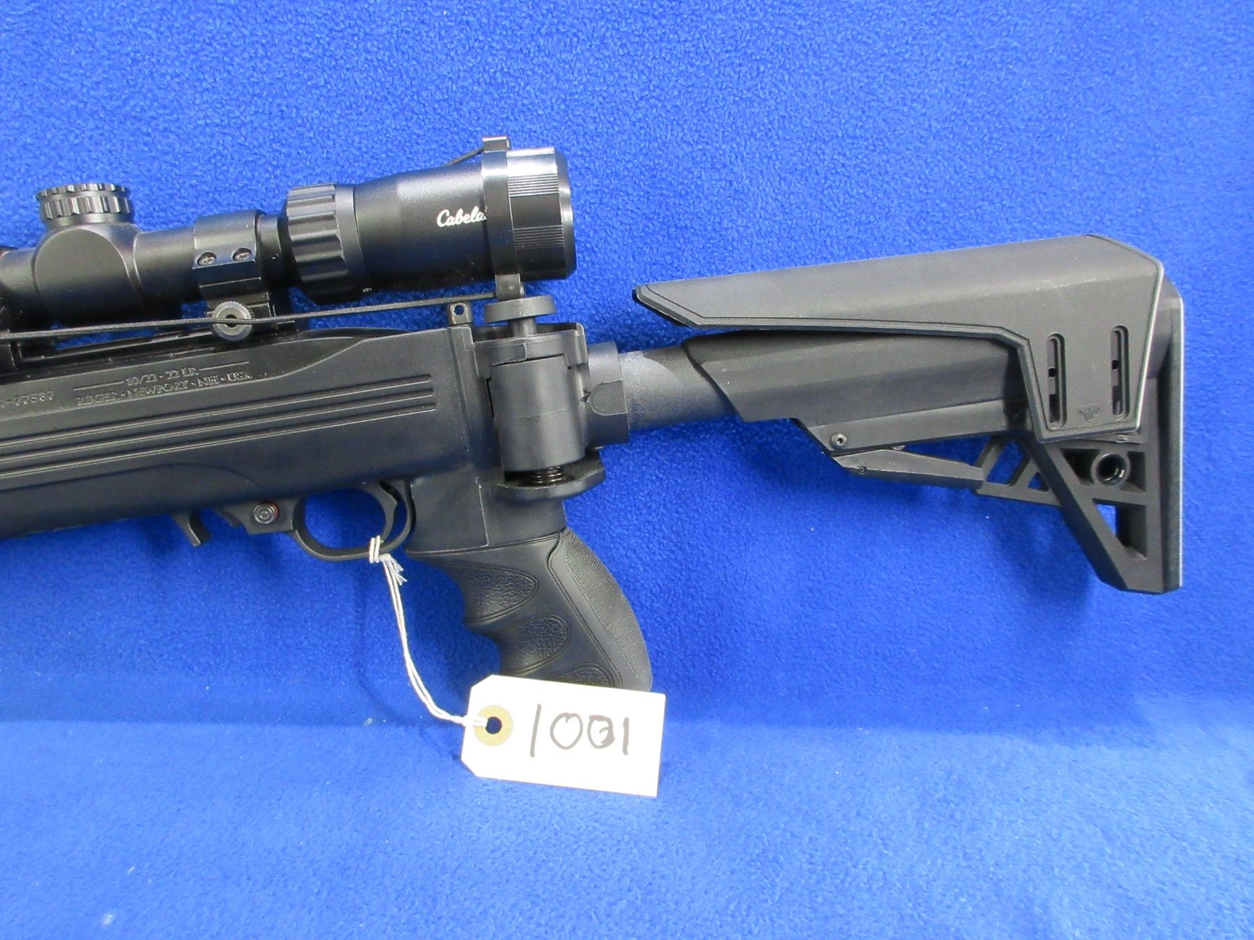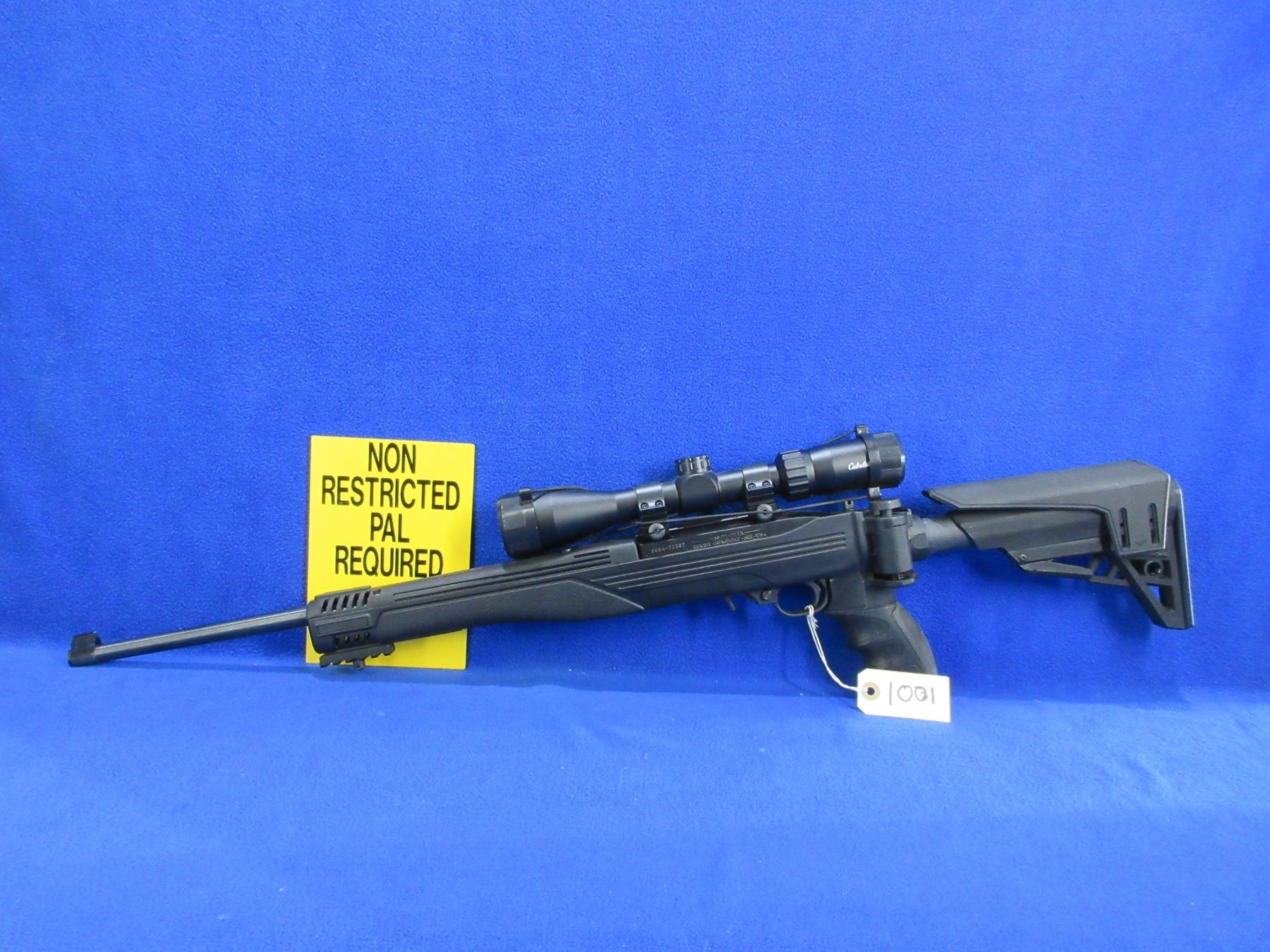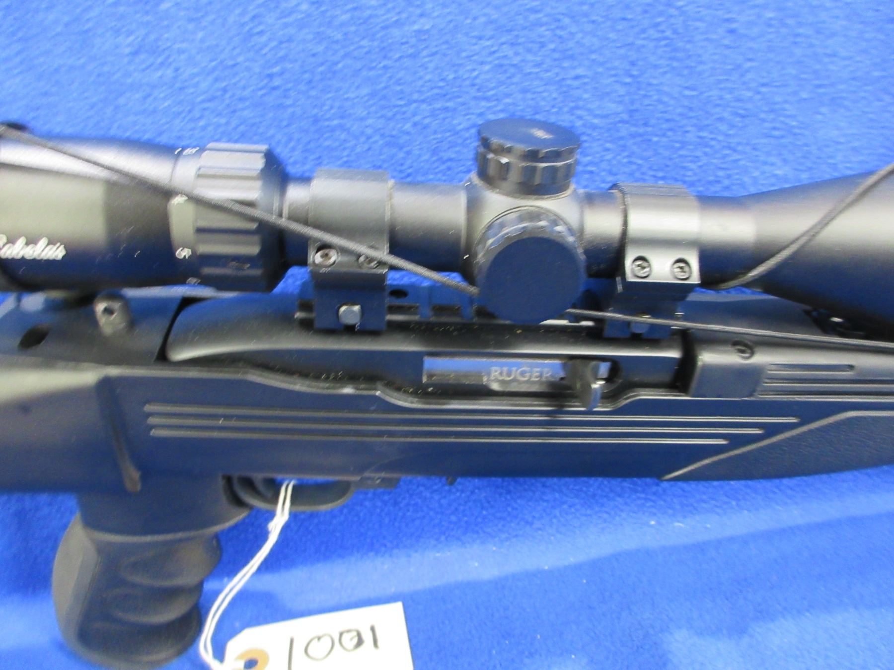 Non-Restricted - Ruger Model 10/22 in 22 LR - This is a semi-auto rifle with removable magazine, action appears to be in very good working order. Barrel is 18 1/2", rifling is very good, bluing is very good, has front sight, missing rear sight but has a Cabela's 3-9x40 22LR scope with lens covers - appears clear, duplex reticle, Ruger adjustable folding tactical stock is very good but comb is missing the lockdown screws, length of pull is 11 3/4 to 15", butt plate good. Ser # OOO4-77387