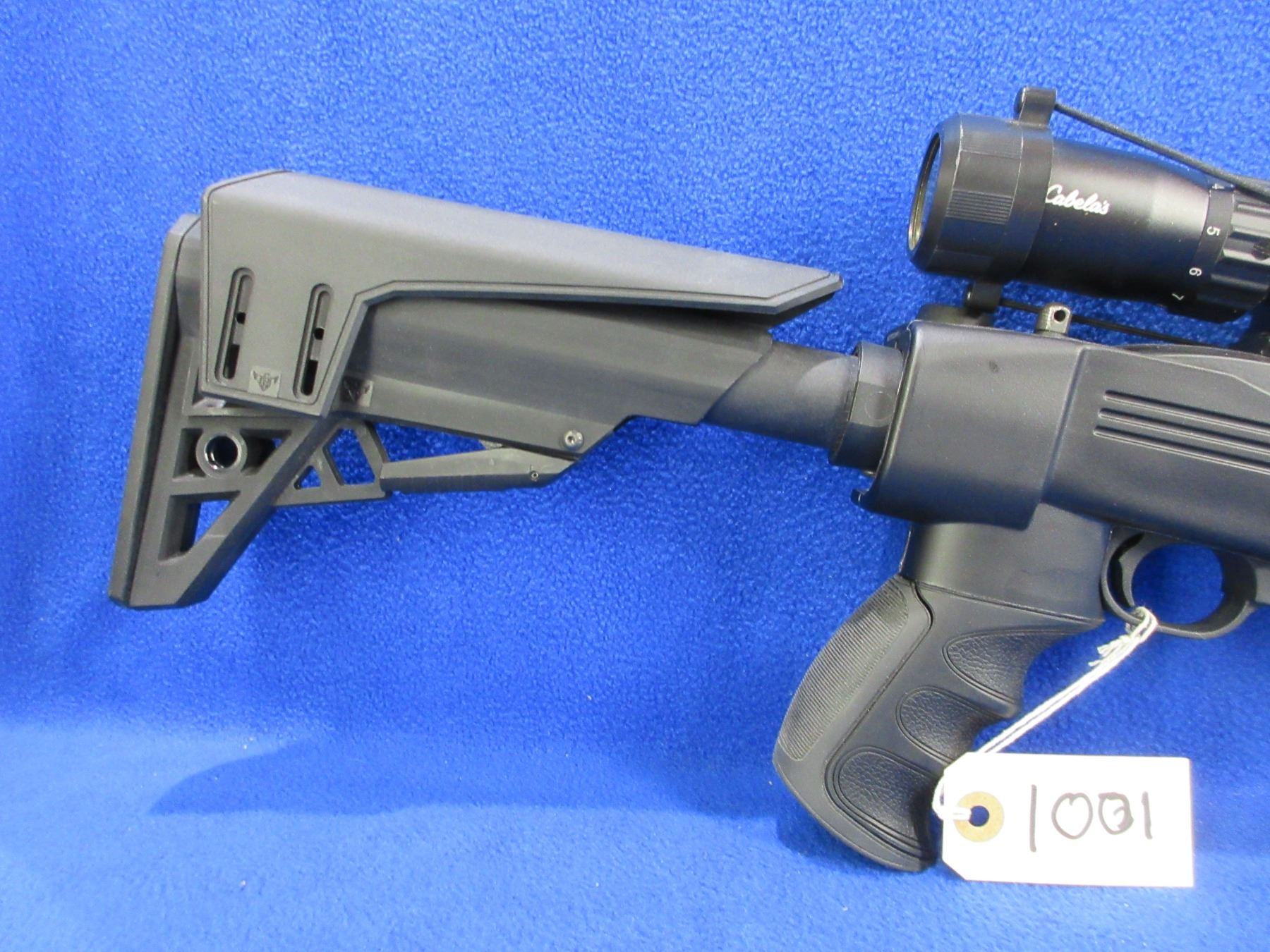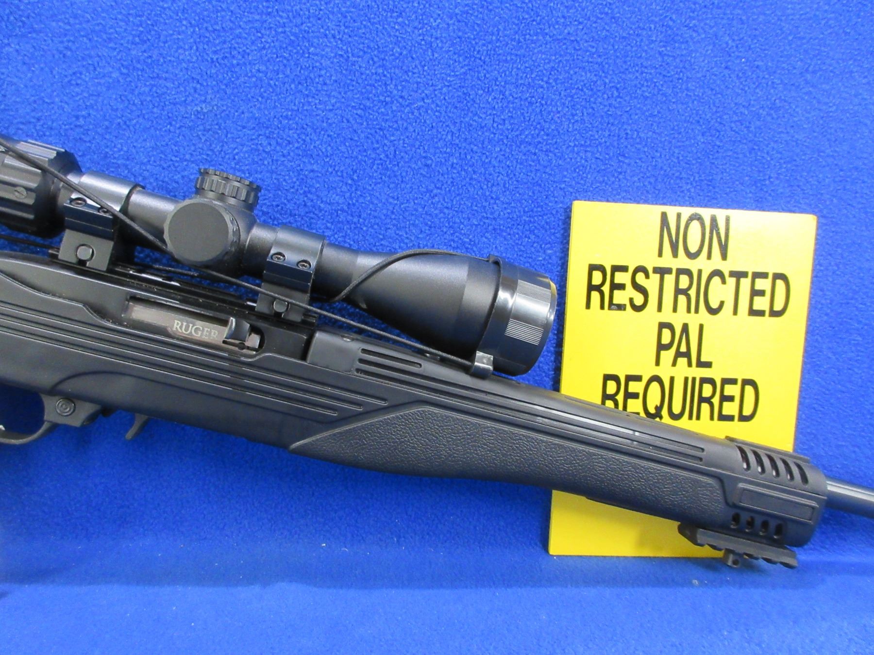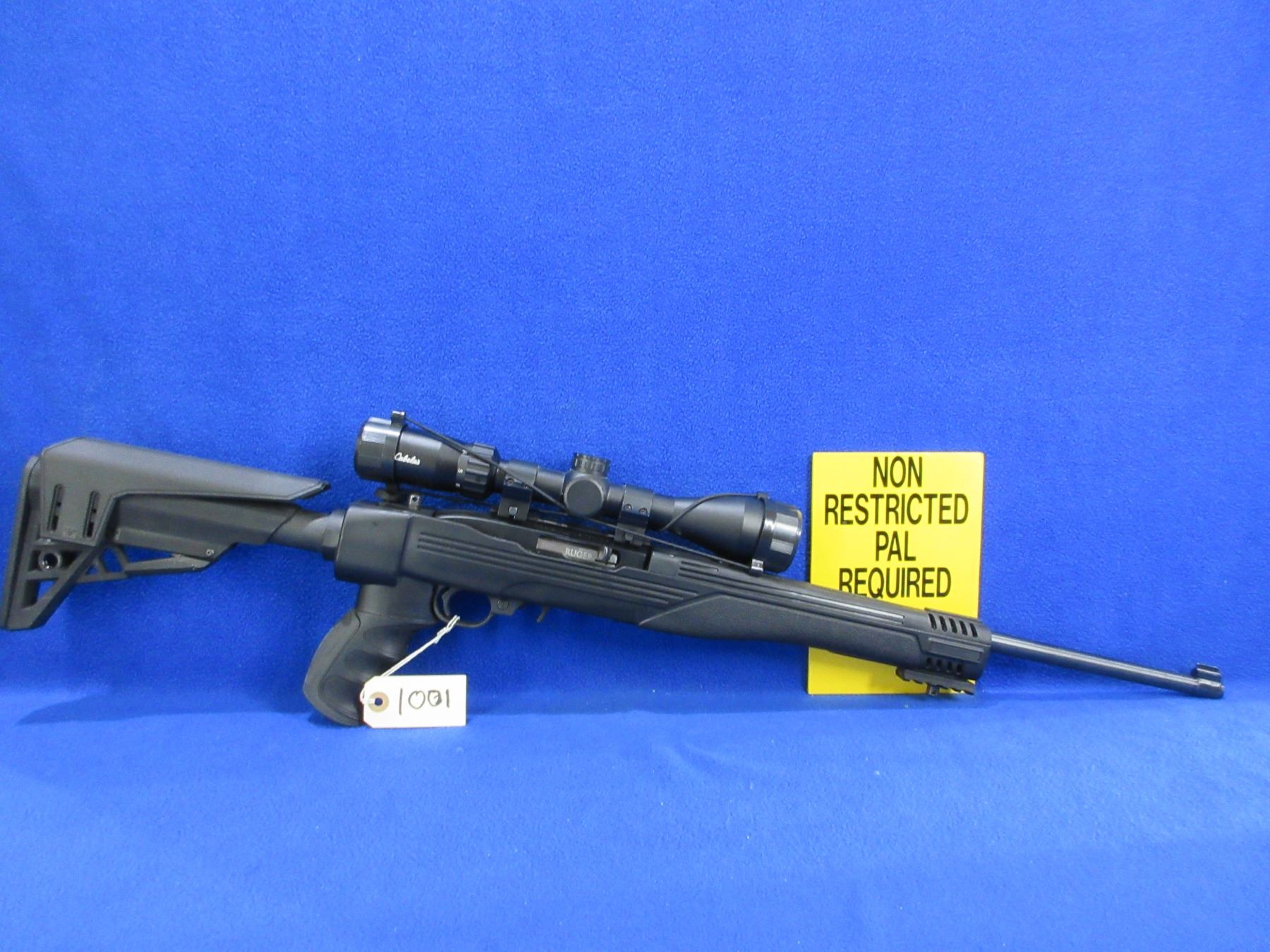 Non-Restricted - Ruger Model 10/22 in 22 LR - This is a semi-auto rifle with removable magazine, action appears to be in very good working order. Barrel is 18 1/2", rifling is very good, bluing is very good, has front sight, missing rear sight but has a Cabela's 3-9x40 22LR scope with lens covers - appears clear, duplex reticle, Ruger adjustable folding tactical stock is very good but comb is missing the lockdown screws, length of pull is 11 3/4 to 15", butt plate good. Ser # OOO4-77387