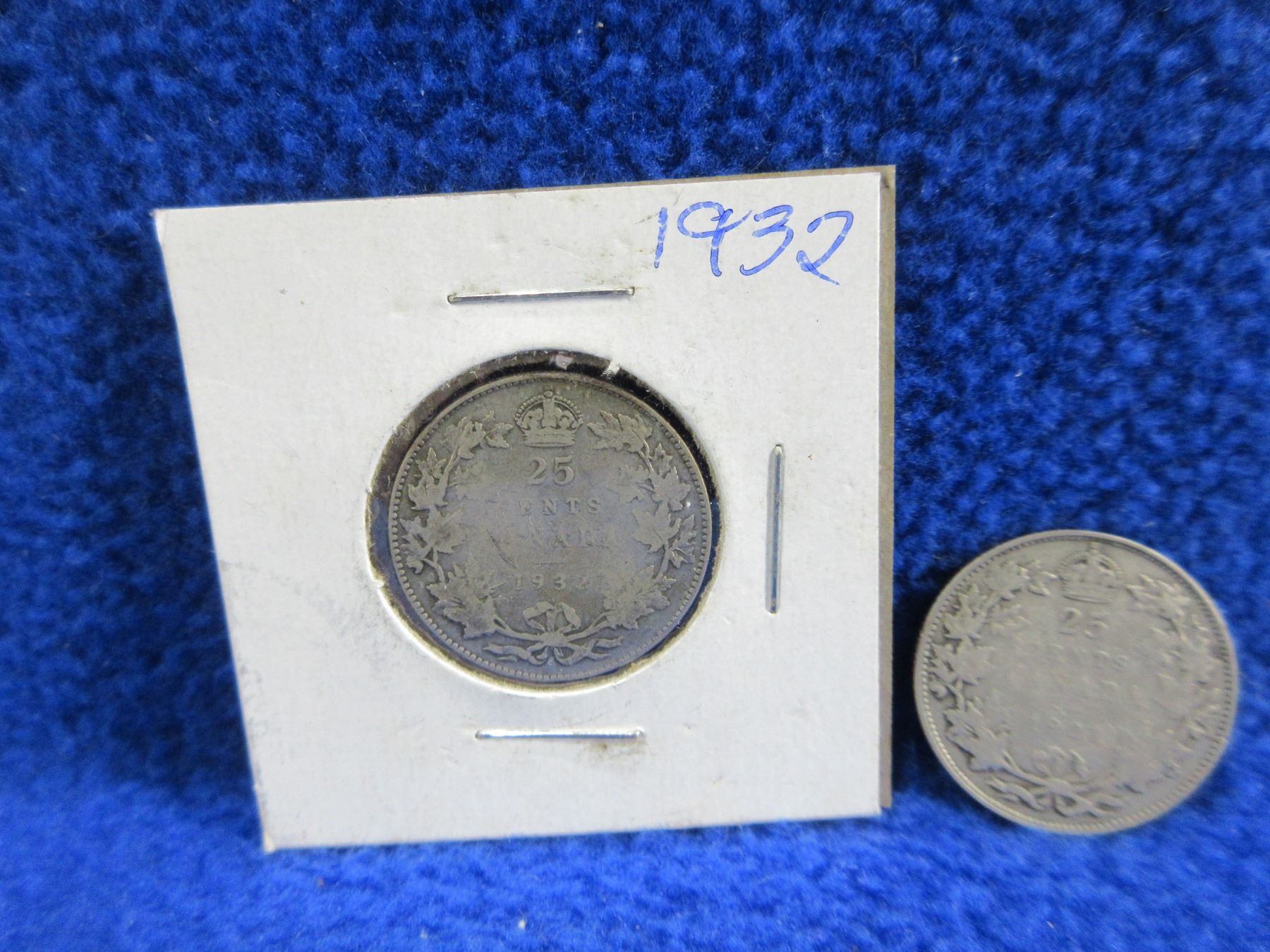 2 Canadian 25 Cent Coins - .800 Silver - 1921, 1932