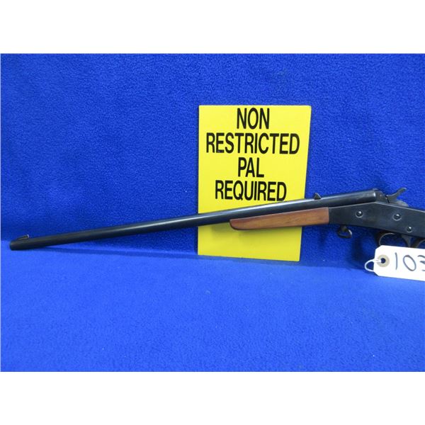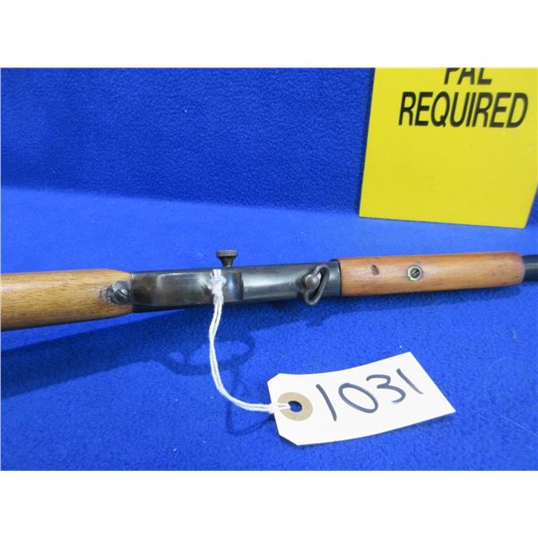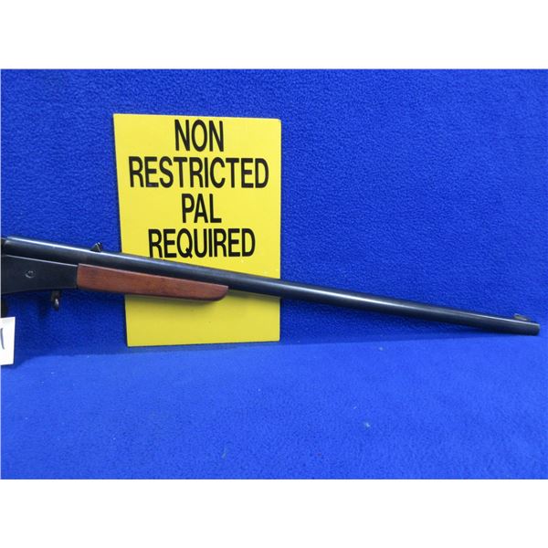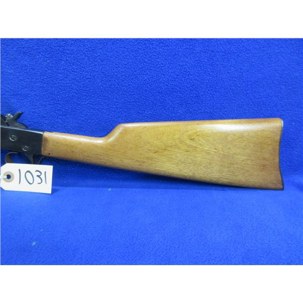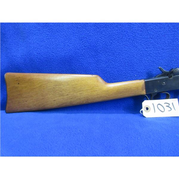 Non-Restricted - J. Stevens Little Scout 14 1/2 in 22 LR - This is a single shot falling block rifle in overall very good condition for age, action appears to be in good working order. Barrel is 18", rifling is fair to good for age, bluing is good to very good with light scratches and appears reblued, has both sights, stock has a hairline crack on top of wrist area, forearm is good with usage marks, length of pull is 13", metal butt plate good, comes with a swivel. Ser # None