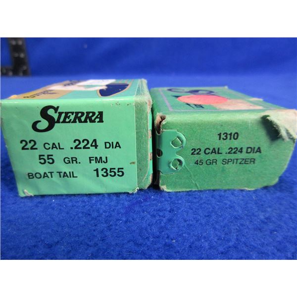22 Cal. .224" Sierra Bullets - Box of 100 (55gr FMJ BT), Box of 100 (45gr Spitzer)
