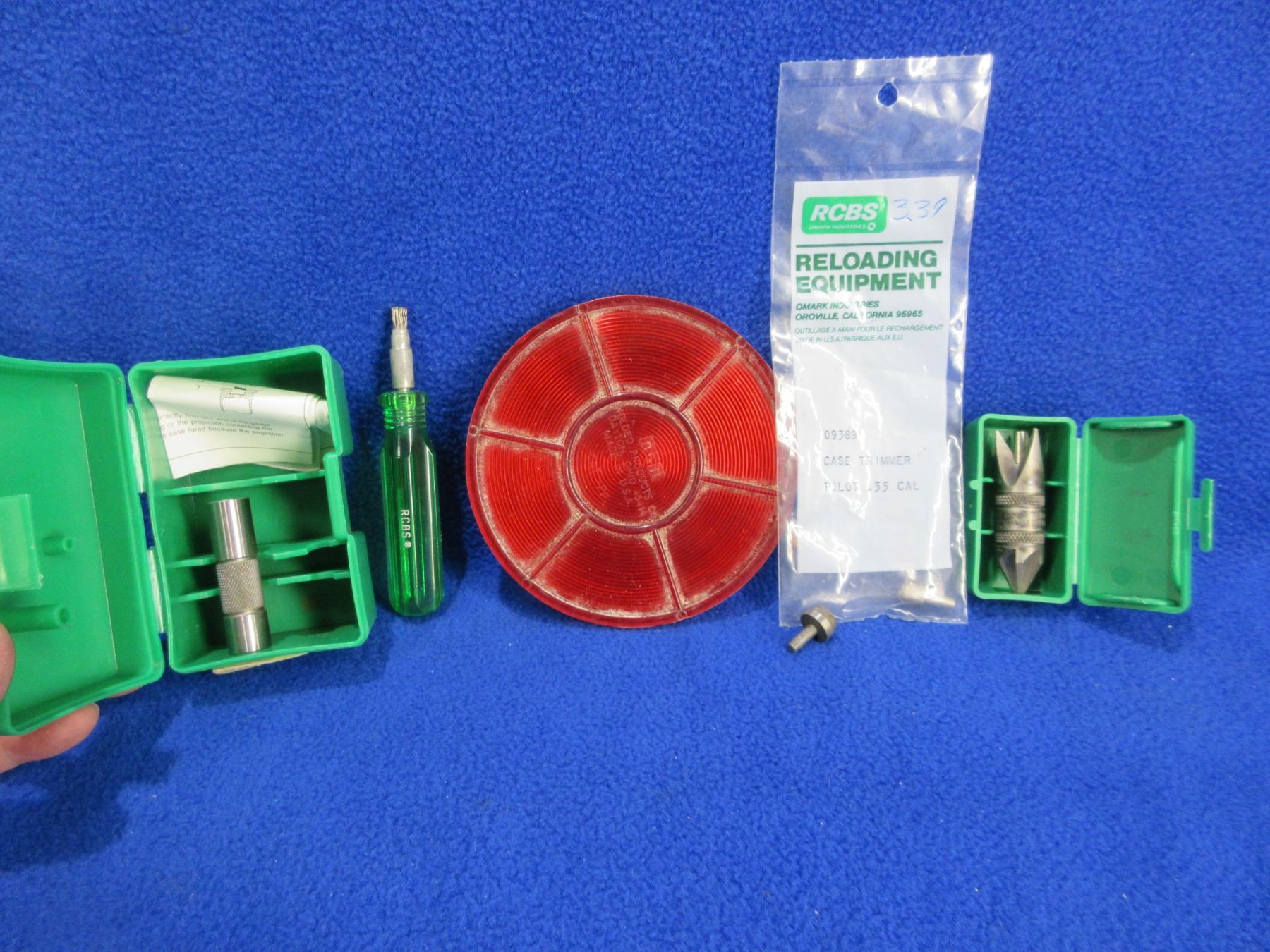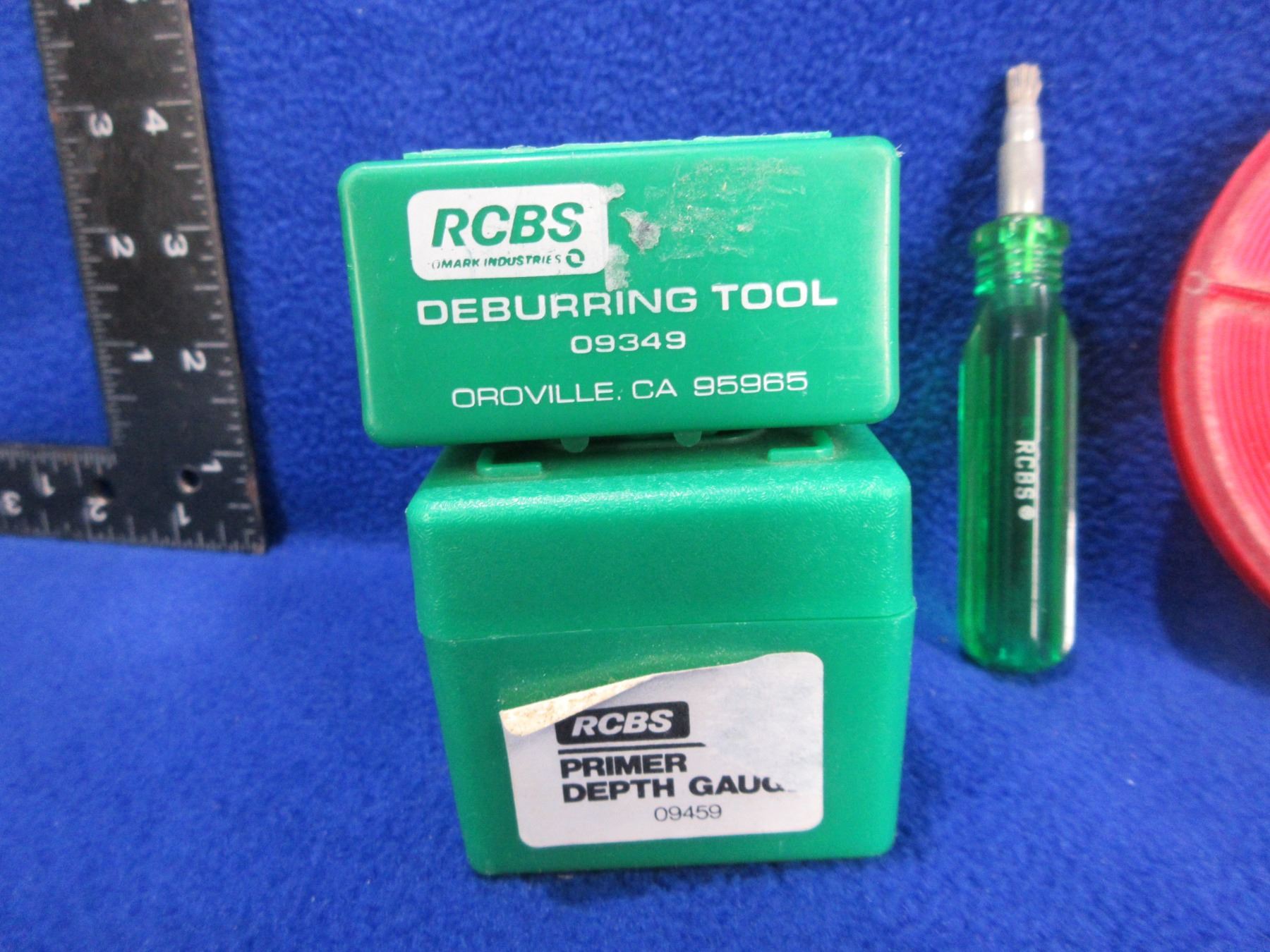 Lot 1048 RCBS Primer Depth Gauge, Pocket Cleaner & Tray, Deburring Tool & 2 Pilots