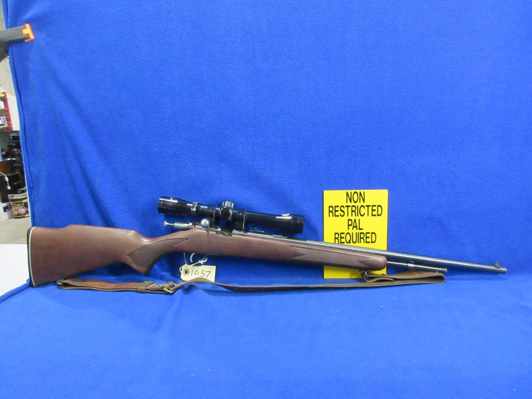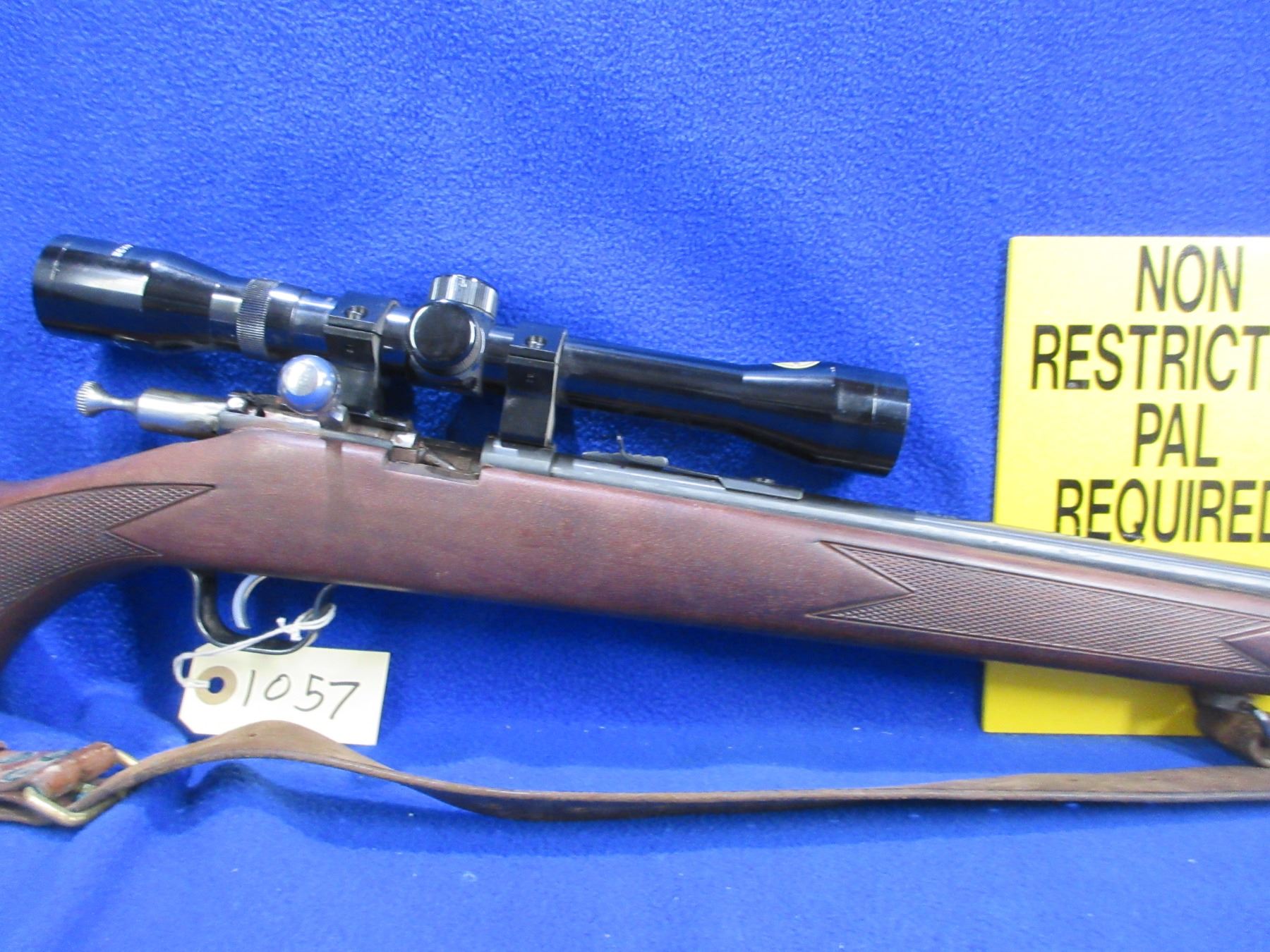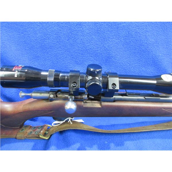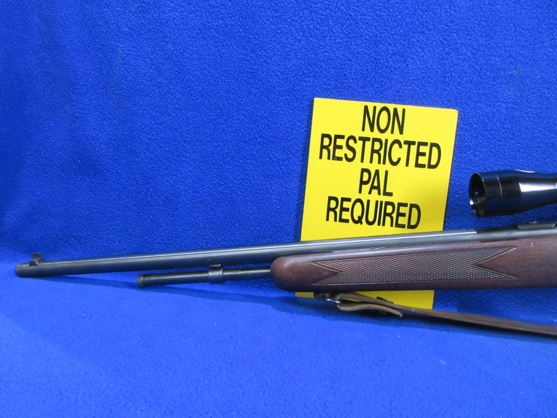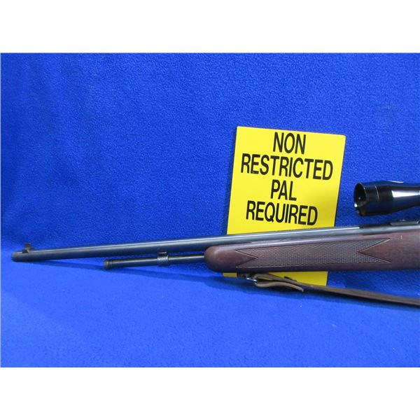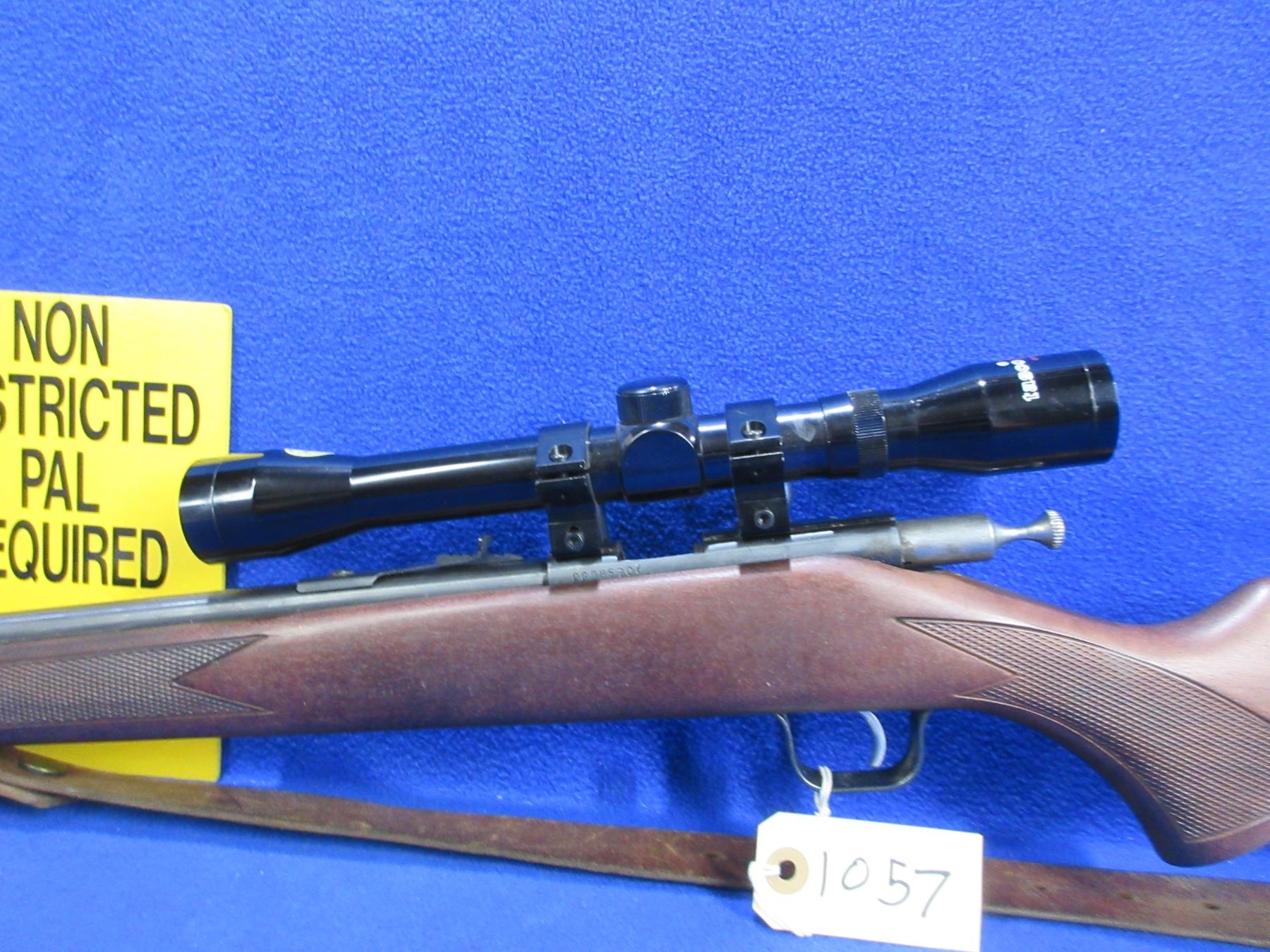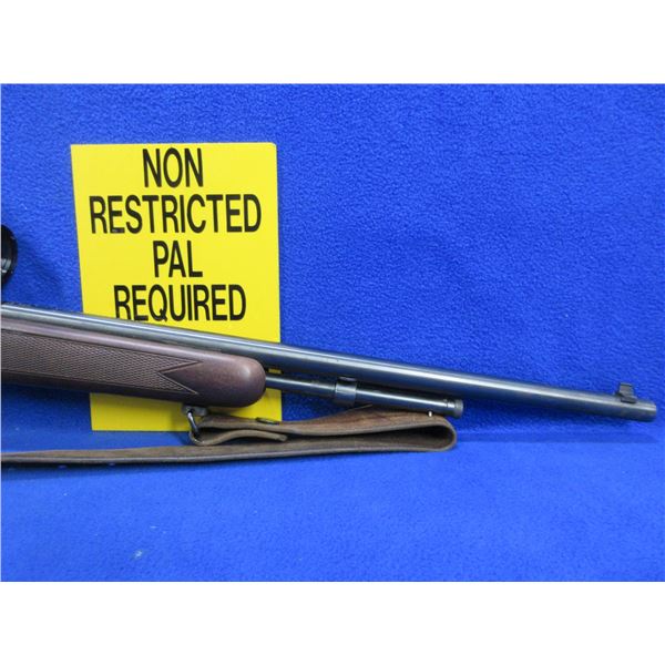 Non-Restricted - Cooey by Winchester Model 600 in 22 S/L/LR - This is a bolt action rifle with tube magazine, action appears to be in good to very good working order but needs cleaning. Barrel is 22", rifling is good to very good, bluing is good to very good, has both sights and a Tasco 4x32 scope - appears clear, standard reticle, stock is good to very good, length of pull is 13 1/2", butt plate good, comes with swivels and a leather strap. Ser # CG085707