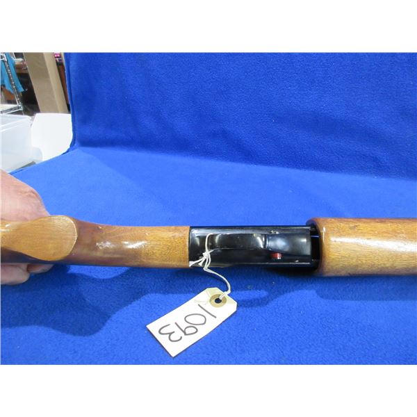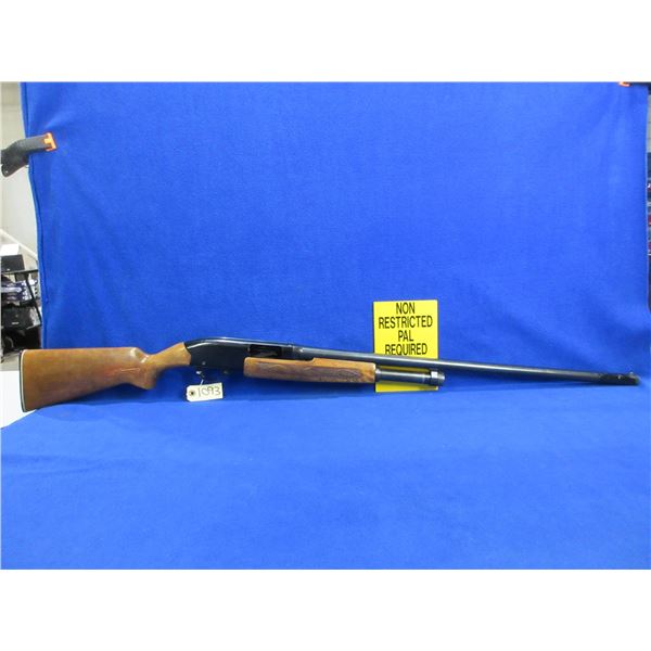 Non-Restricted - Winchester Model 2200 in 12 Ga. 2 3/4" - This is a pump action shotgun with tube magazine, action appears to be in good to very good working order. Barrel is 28" and appears to be extended and brazed with a choke (not sure why), bore is good, bluing is good with some light pitting, has bead front sight, stock is good with usage marks and a drying crack on the right side, forearm is good with usage marks, length of pull is 14", butt plate good. Ser # L945986