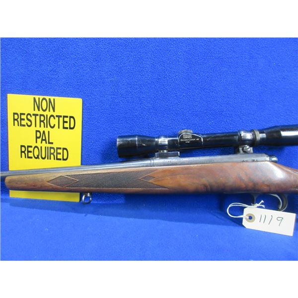 Non-Restricted - Remington Model 700 ADL in 264 Win. Mag - This is a bolt action rifle with internal magazine, action appears to be in good to very good working order. Barrel is 23 1/2", rifling is good to very good, bluing is fair, has no sights but has Bushnell Scopechief IV scope with Redfield rings and bases - appears clear, single dot reticle, stock is good with usage marks and some finish flaking, length of pull is 13 1/4", rubber recoil pad good, comes with swivels. Ser # 19561