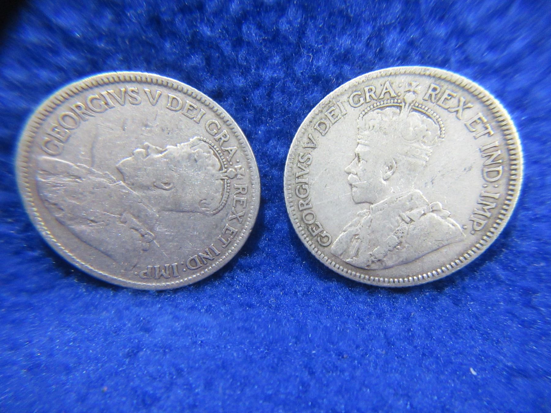 Lot 1129 2 Canadian 25 Cent Coins - 1919 (.925 Silver), 1936 (.800 Silver)