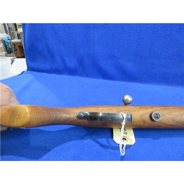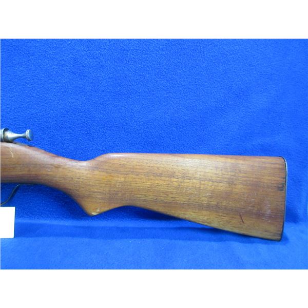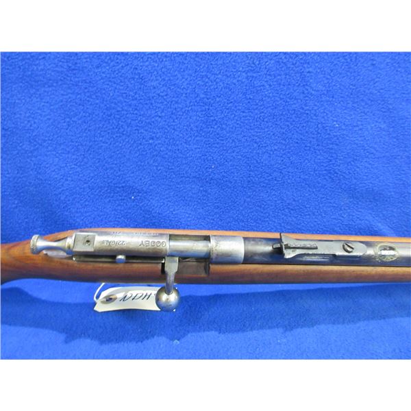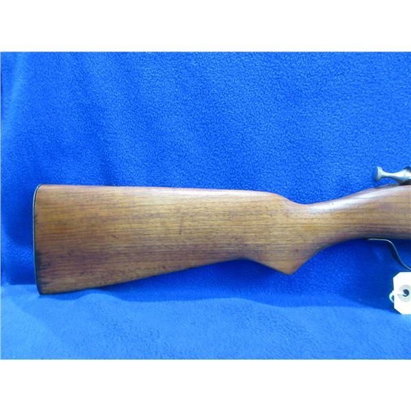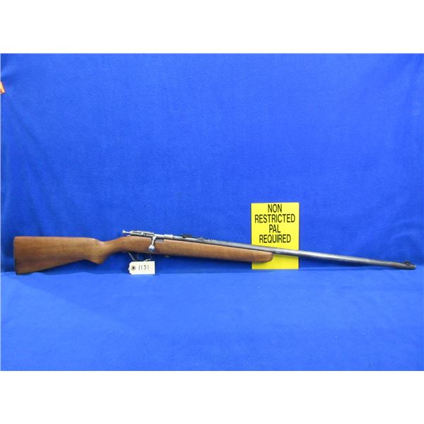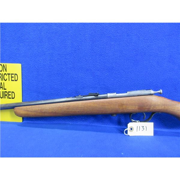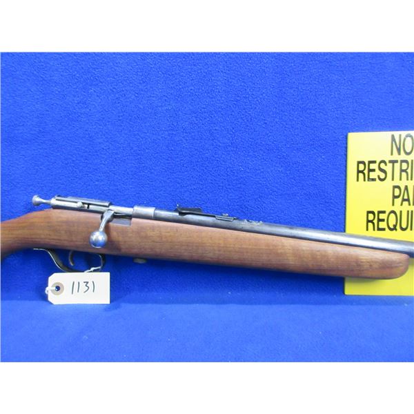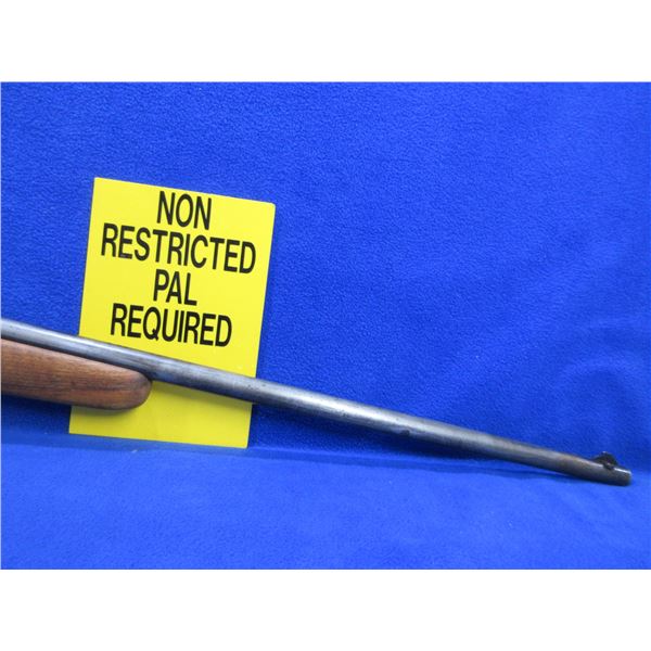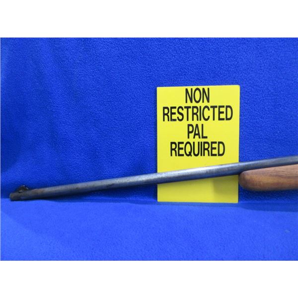 Non-Restricted - Cooey Model 78 Single Shot in 22 Cal. - This is a single shot bolt action rifle, action appears to be in good to very good working order. Barrel is 27", rifling is good to very good, bluing is gone, has both sights, stock has been refinished and is good to very good, length of pull is 13 1/2", metal butt plate good. Ser # 4317648 on Sticker