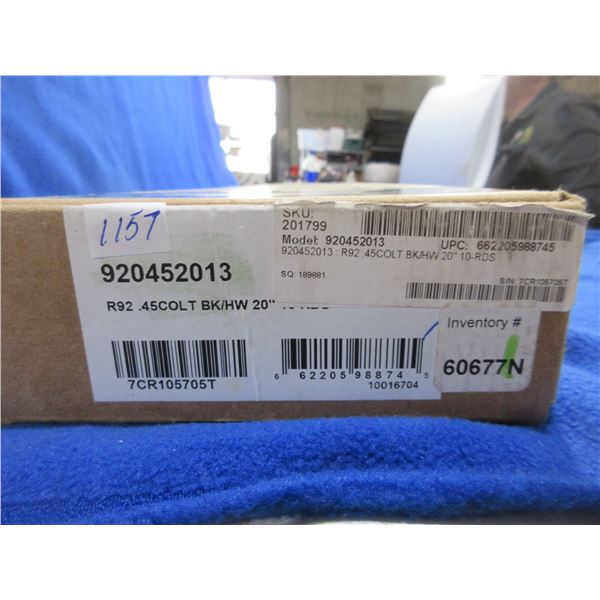 NEW - Non-Restricted - Rossi Model R92 in 45 Long Colt - This is a NEW, never fired lever action rifle with tube magazine. Barrel is 20", has both sights, length of pull is 13". Comes with original box and paperwork. Ser # 7CR10570ST