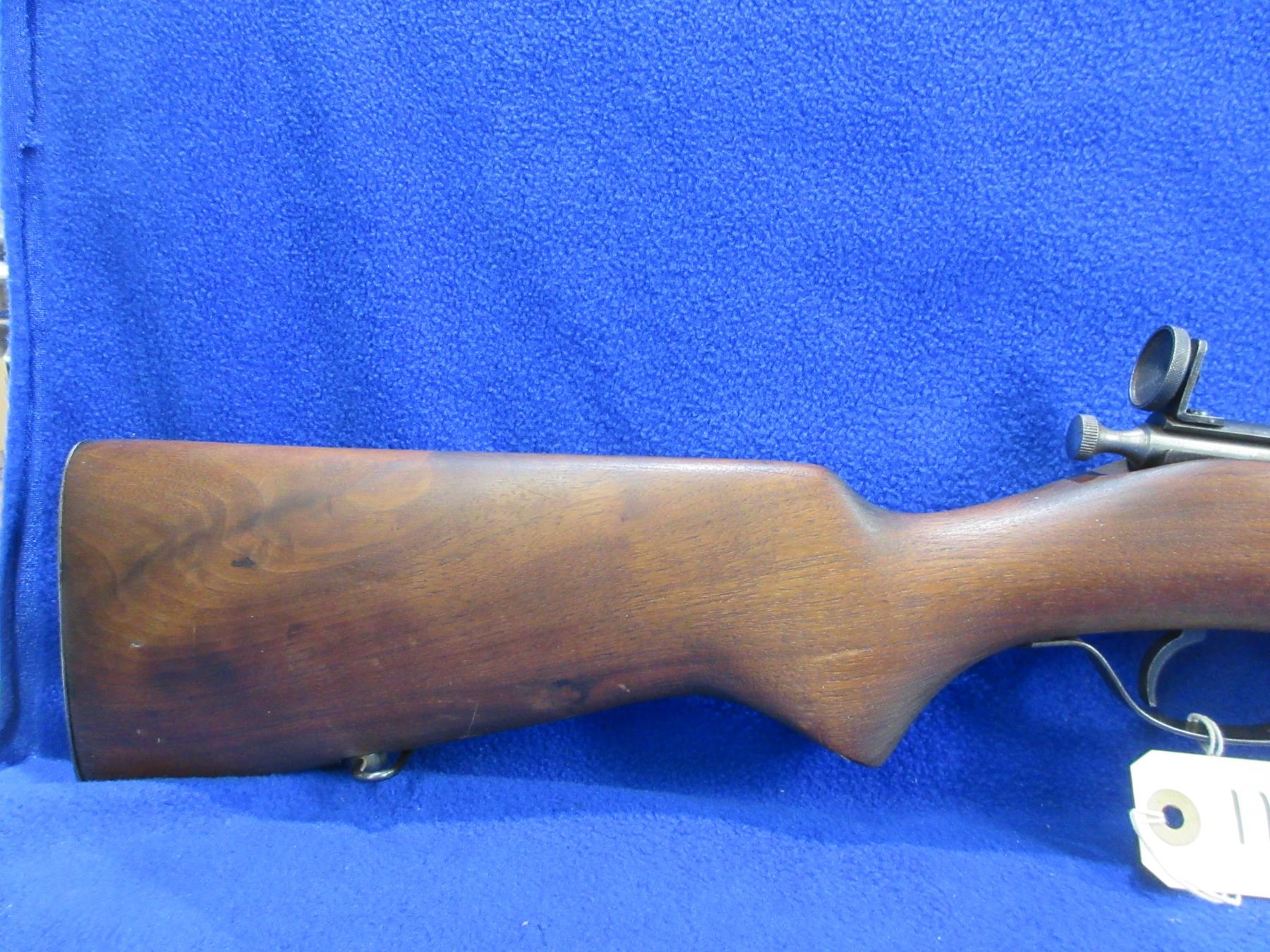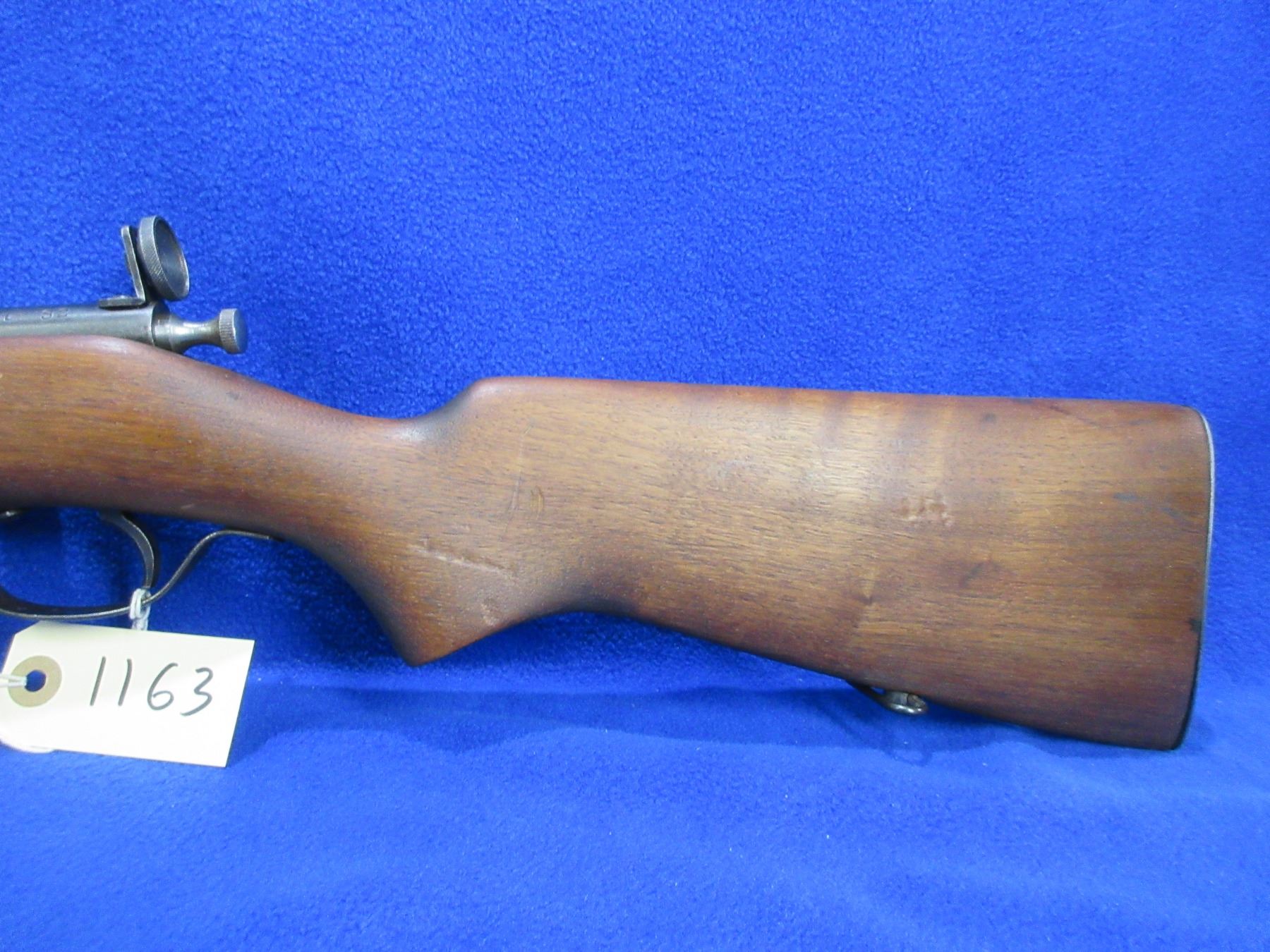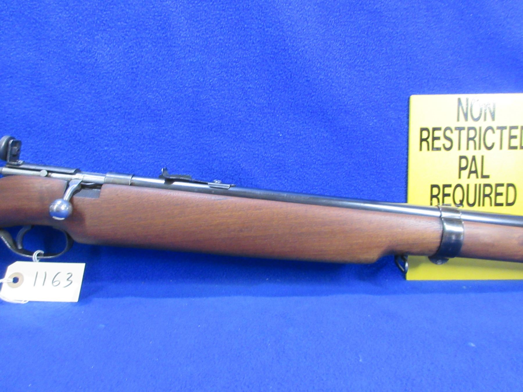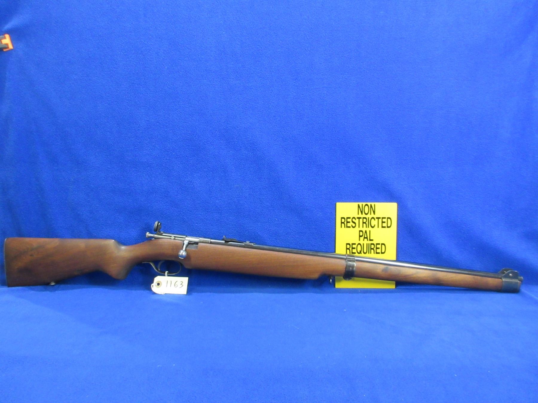 Non-Restricted - Cooey Model 82 Trainer in 22 Cal. - This single shot bolt action rifle is in nice condition and a collectible trainer, action appears to be in good to very good working order. Barrel is 27", rifling is good to very good, bluing is good to very good for age, has both sights and rear peep sight, full wood stock is good to very good with usage marks and has been refinished, length of pull is 13", metal butt plate good, comes with swivels. Ser # 5384 on Stock