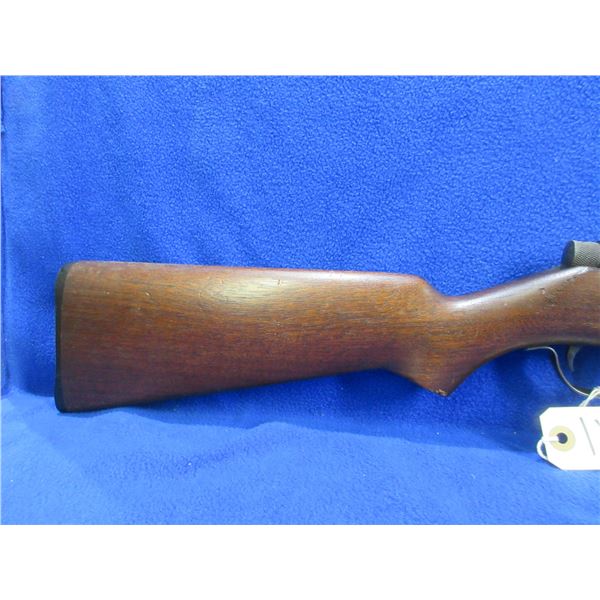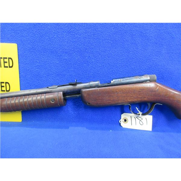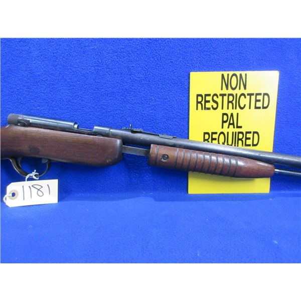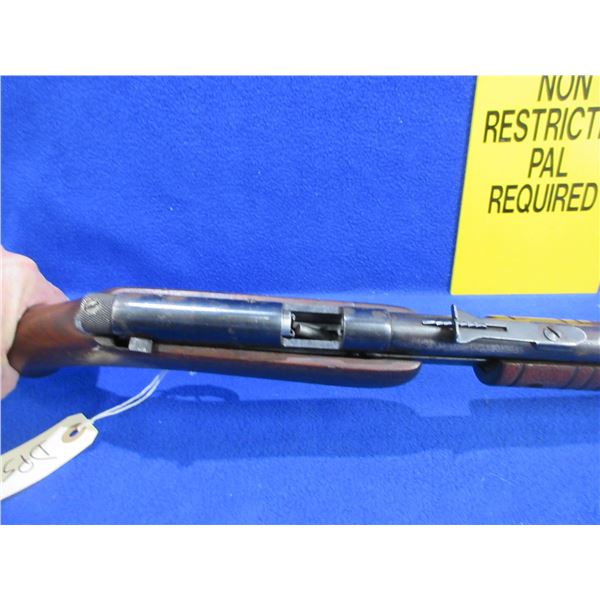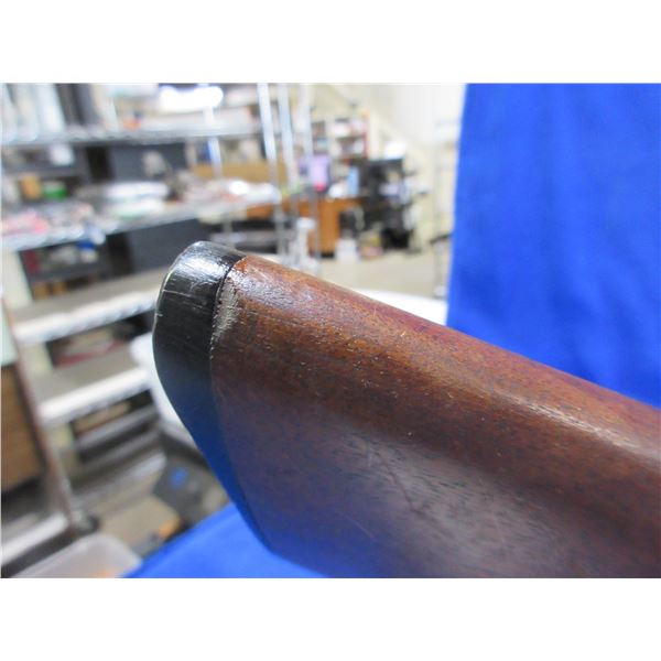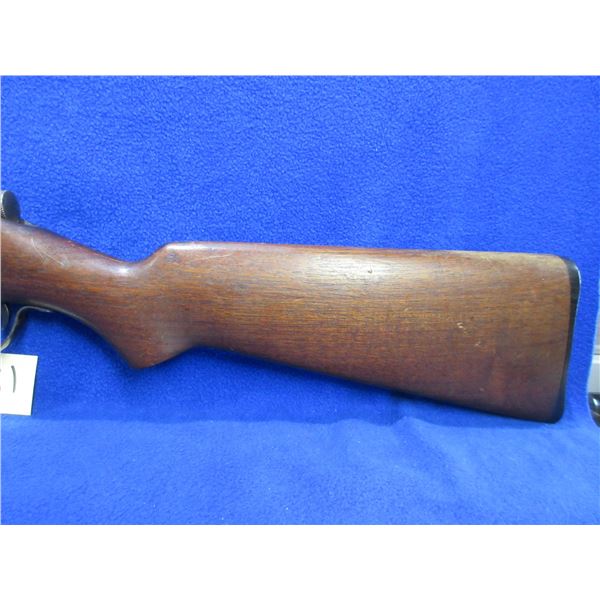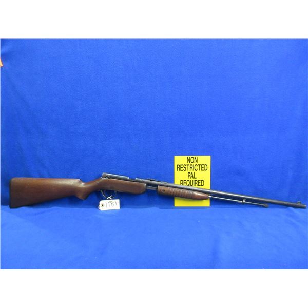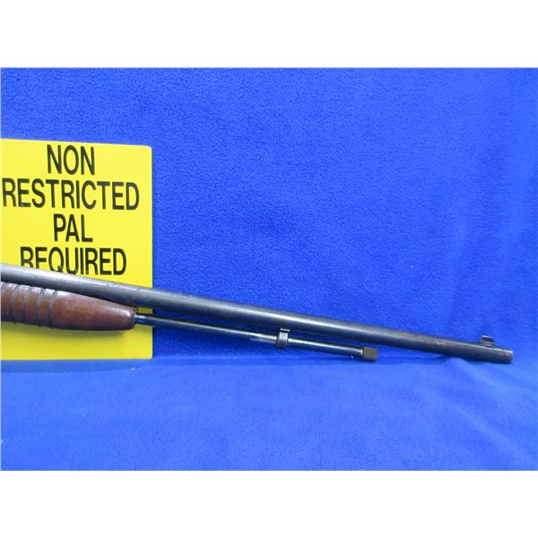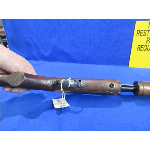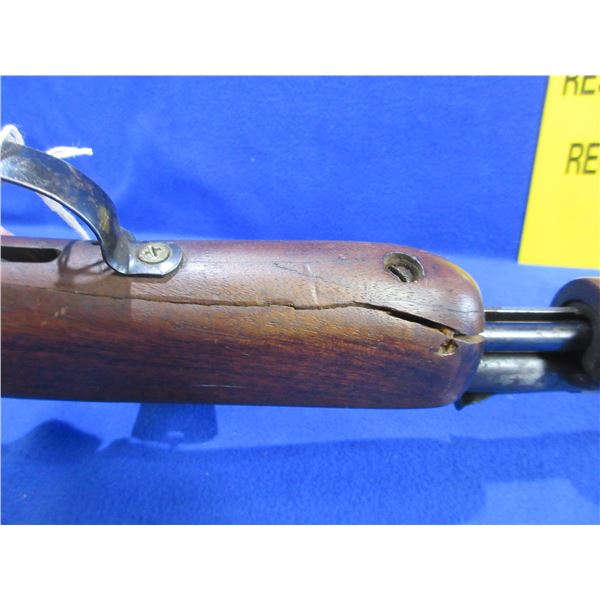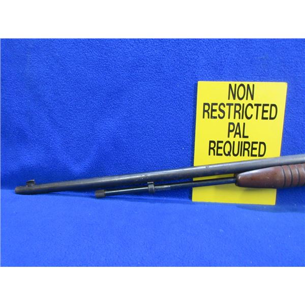 Non-Restricted - Noble Model 33A in 22 S/L/LR - This is a pump action rifle with tube magazine, action appears to be in working order. Barrel is 24", rifling is good to very good, bluing is poor to fair with pitting, has both sights, stock has a large crack on bottom left of action and back of action top right (needs replaced), forearm is good with usage marks, length of pull is 13 1/2", butt plate good. Ser # None