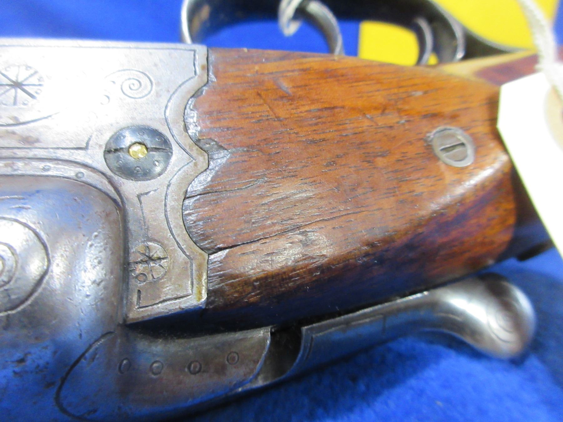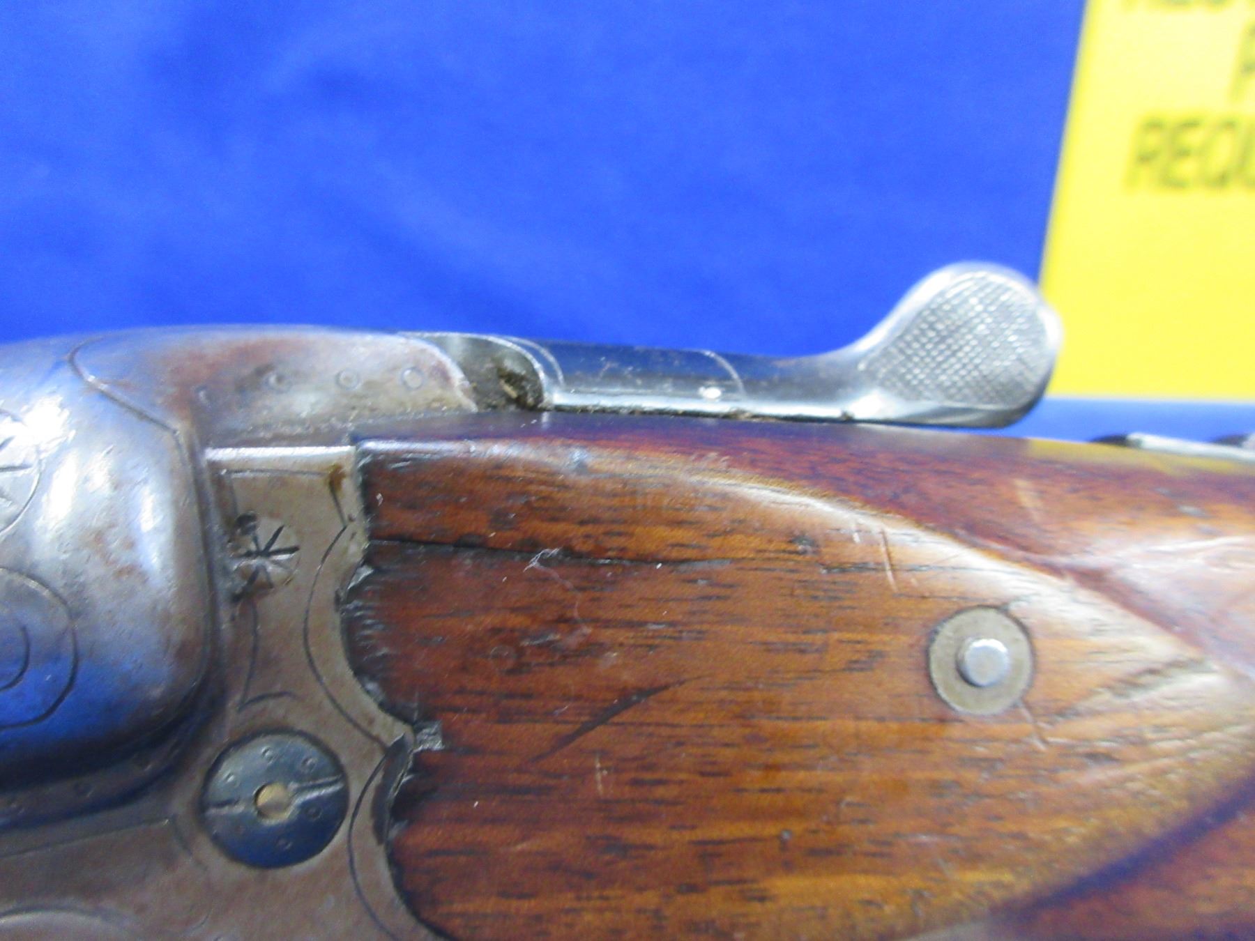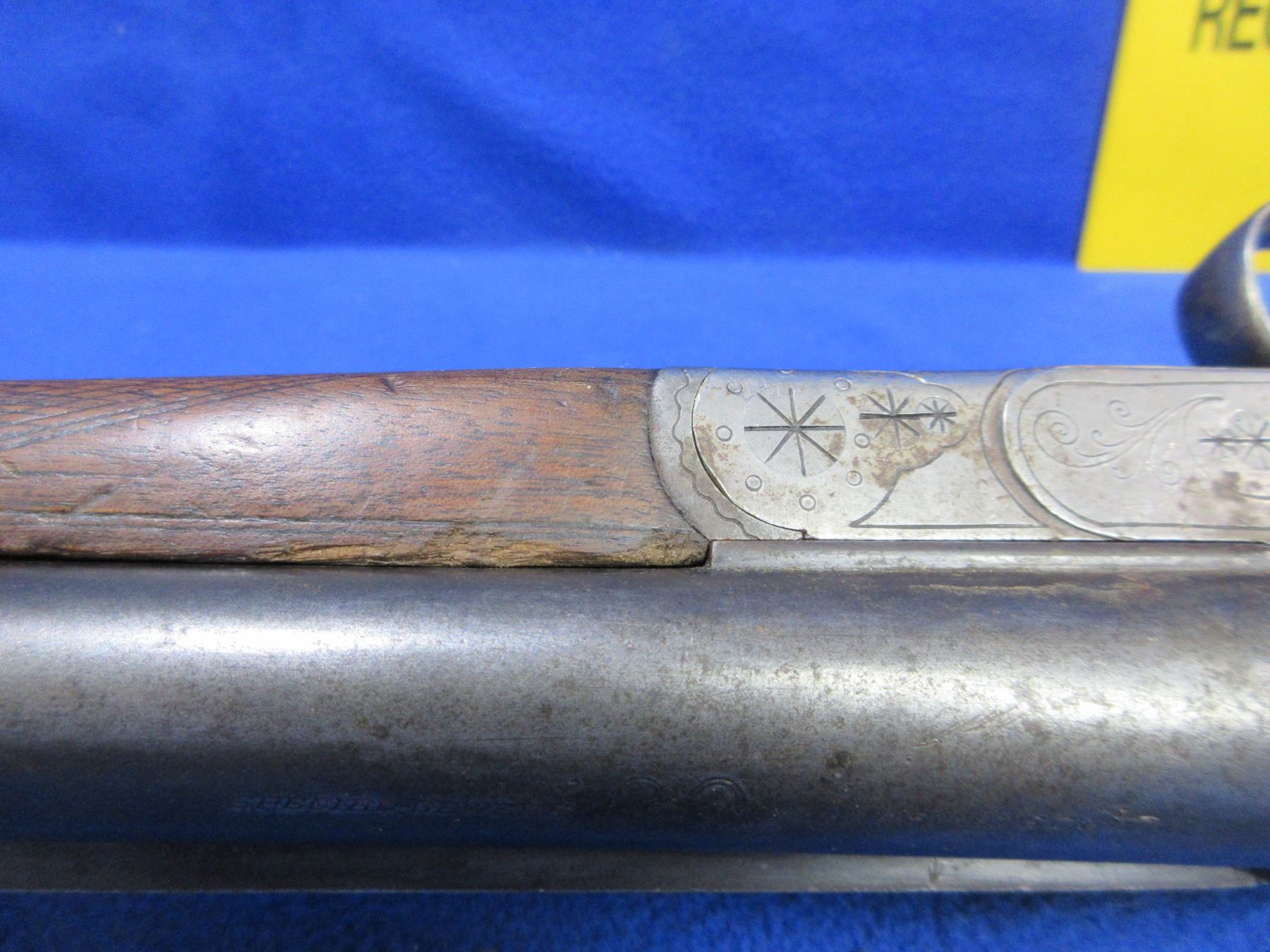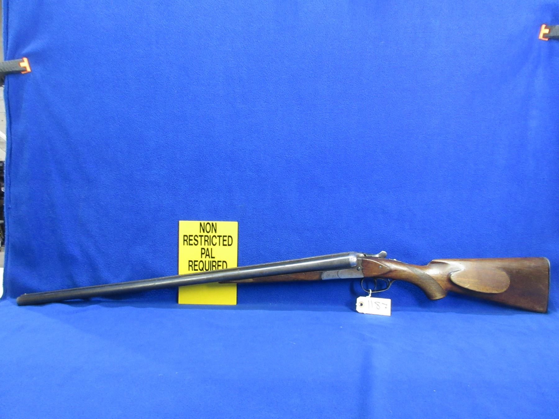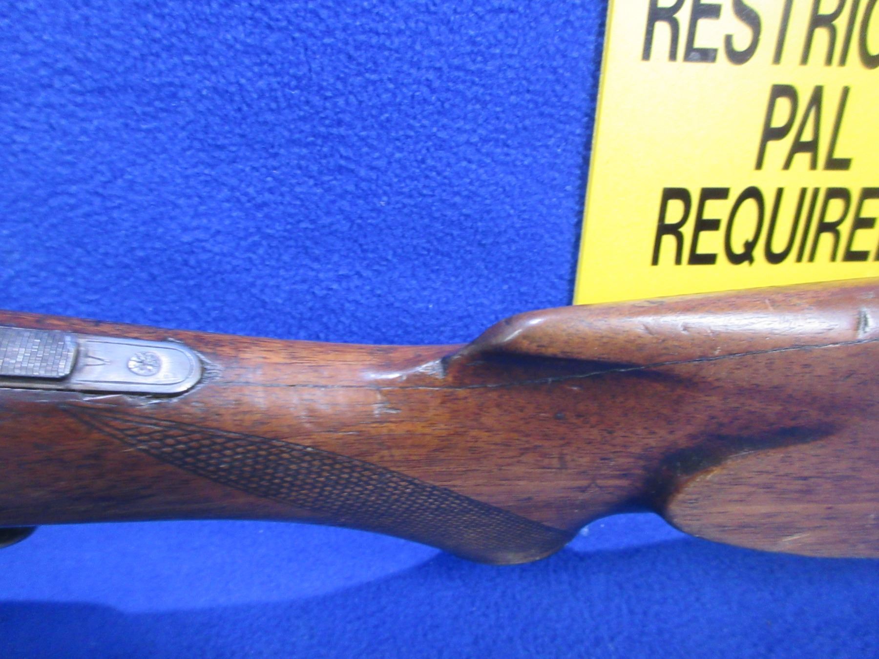 Non-Restricted - Sauer & Sohn Model 8 in 12 Ga. 2 3/4" - This is a tip up SXS shotgun, action is tight and appears to be in good working order but should not be fired as the stock has cracks. Barrels are 28 3/8", bores are good, bluing is fair to good with some pitting, has bead front sight, stock has a full length crack on the bottom and other hairline cracks, forearm has a chip on the left side, length of pull is 14 1/2", butt plate good. Ser # 489113