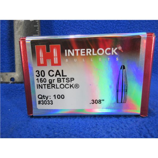 30 Cal. .308" 150gr BTSP Interlock Hornady Bullets - Sealed Box of 100