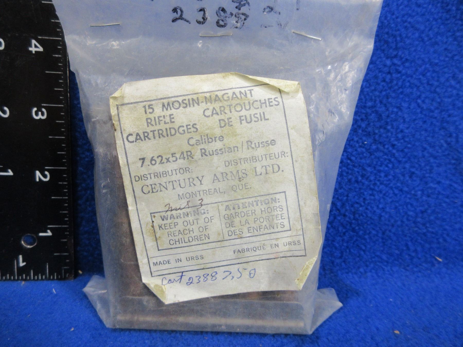7.62X54R (Russian) Mosin Nagant Cartridges (Pick Up or Ship by UPS Only) - Bag of 15 on 3 Stripper Clips