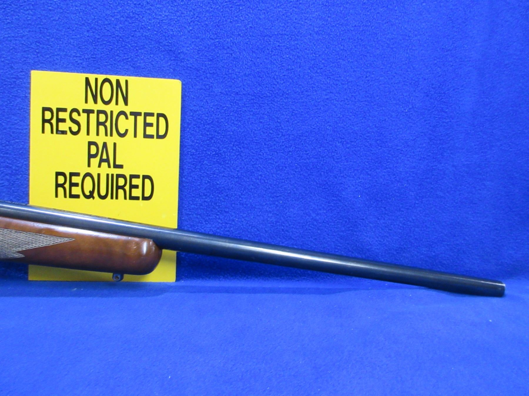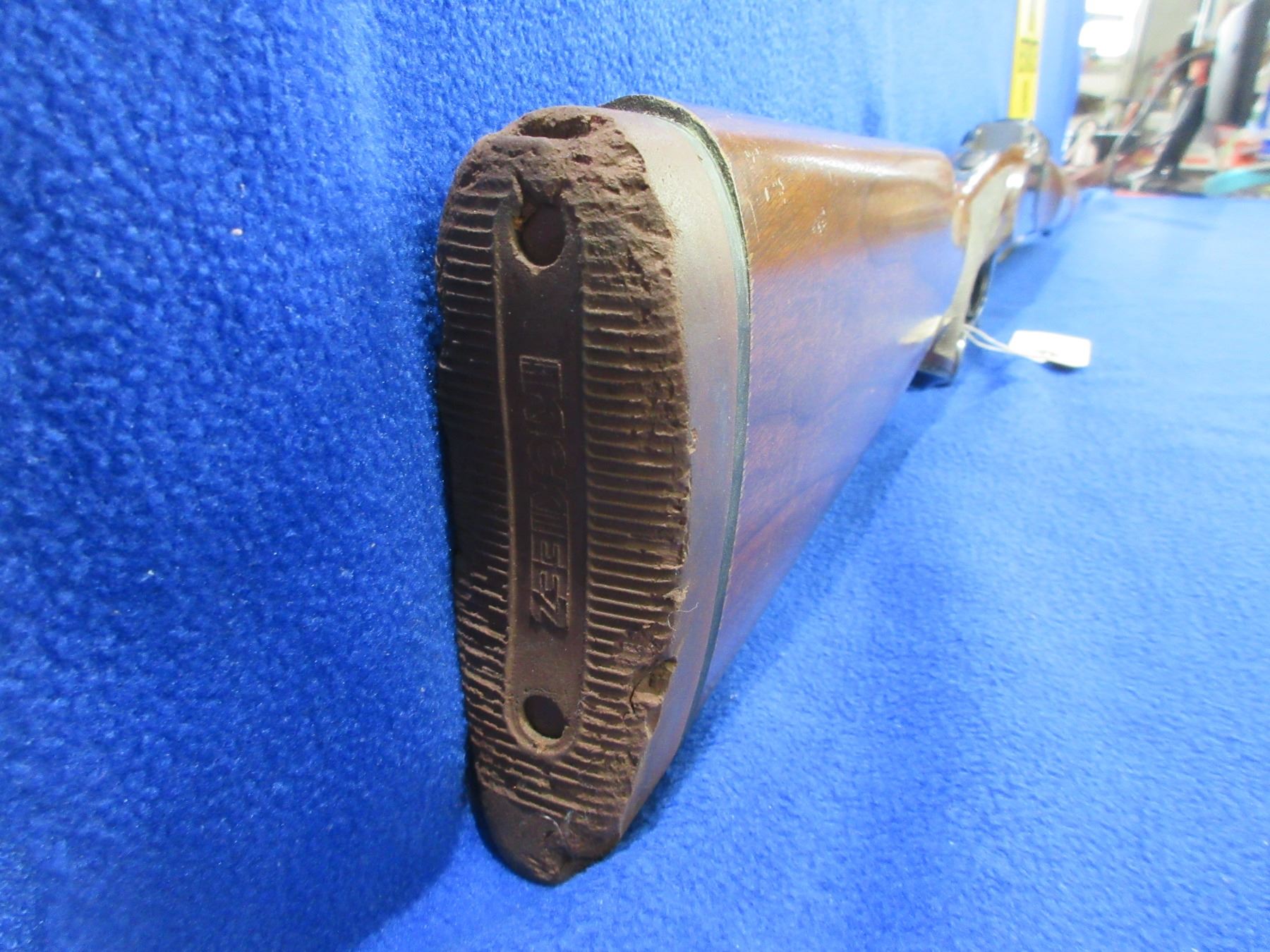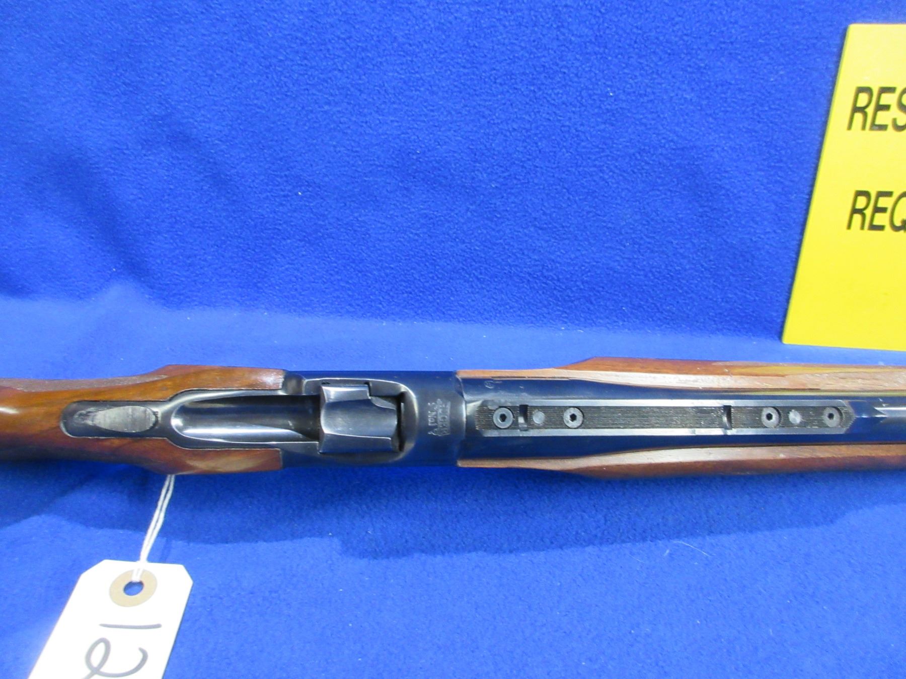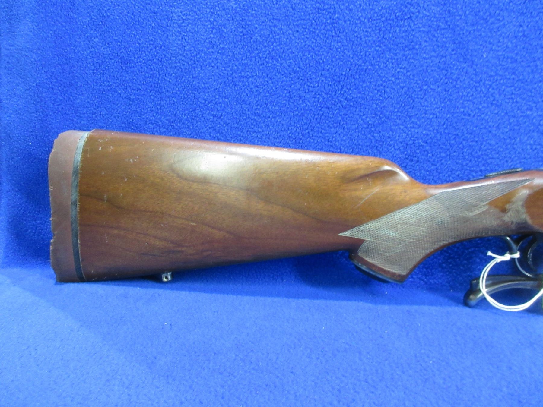 Non-Restricted - Ruger No. 1 in 338 Win. Mag - This is a single shot falling block rifle, action appears to be in good to very good working order. Rifle has no caliber markings on the barrel but consignor lists as 338 win. mag. Barrel is 26", rifling is fair to good, bluing is good with some wear spots, has no sights but has drilled and tapped integral rail, stock is good with usage marks, forearm has a large chip on the top left side, length of pull is 14 1/4", rubber recoil pad, comes with swivel studs. Ser. # 132-27518