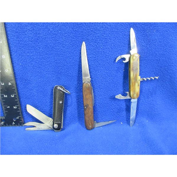3 Vintage Folding Blade Pocket Knives - L. Wilson Sheffield, Eller Rostfrei, Kaufmann Solingen - Sheffield is damaged
