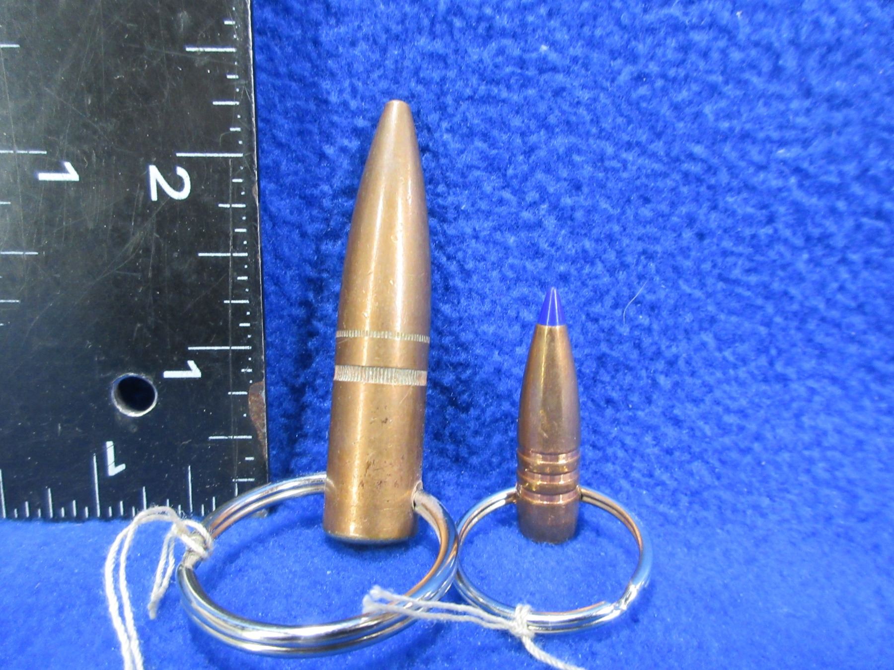 2 Bullet Key Chains - 50 Cal. (.511") and 8mm. (.323")