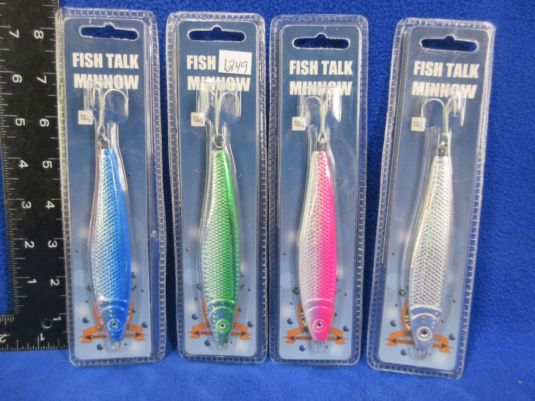 Lot 1249 NEW - 4 Fish Talk Minnow Lures - Assorted Colors, 100g & 130g