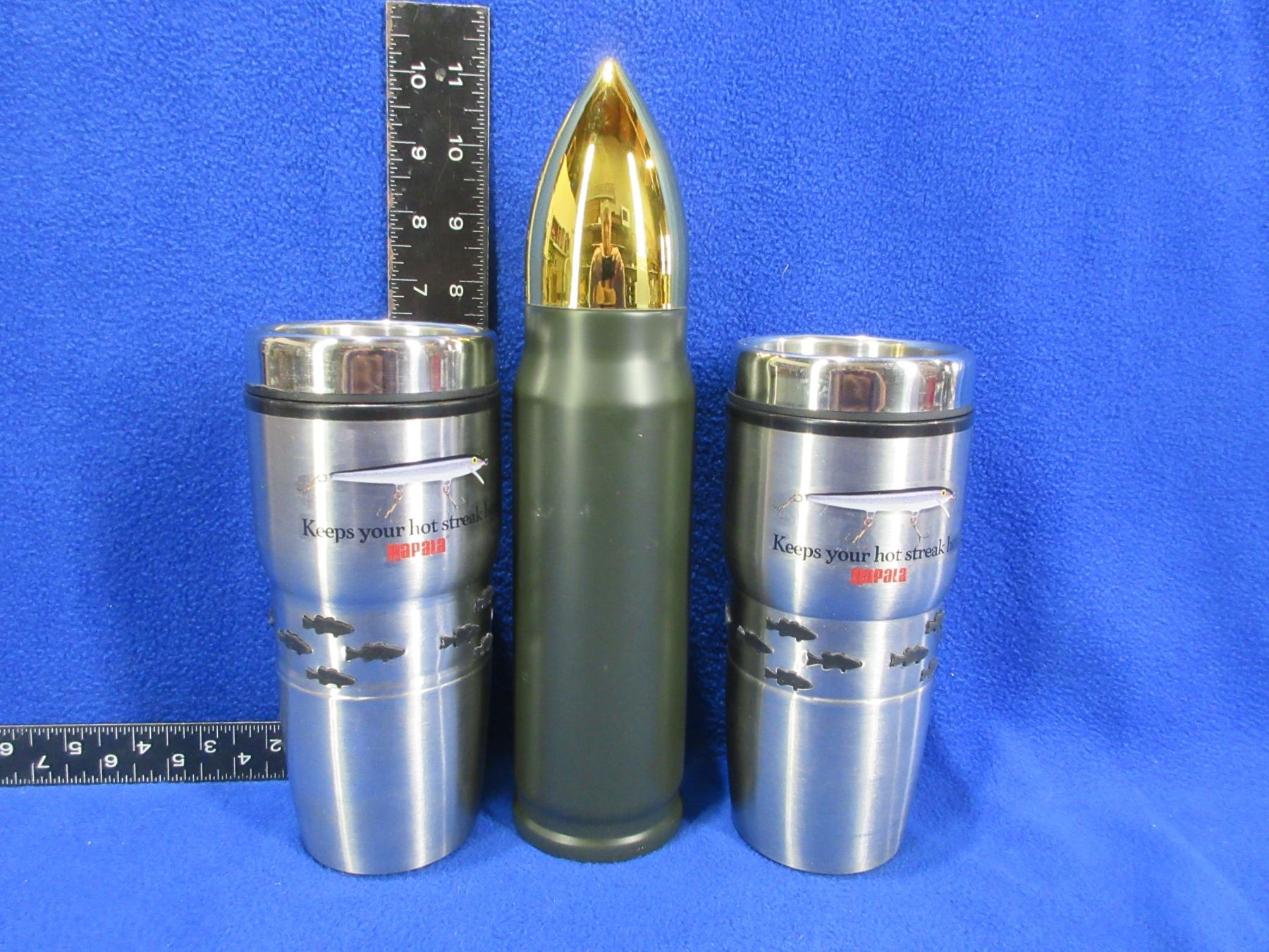 Lot 1250 NEW - Bullet Thermos and 2 Thermal Rapala Travel Mugs