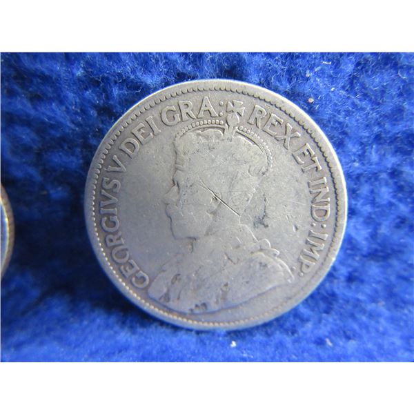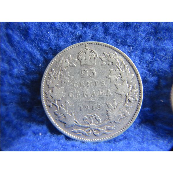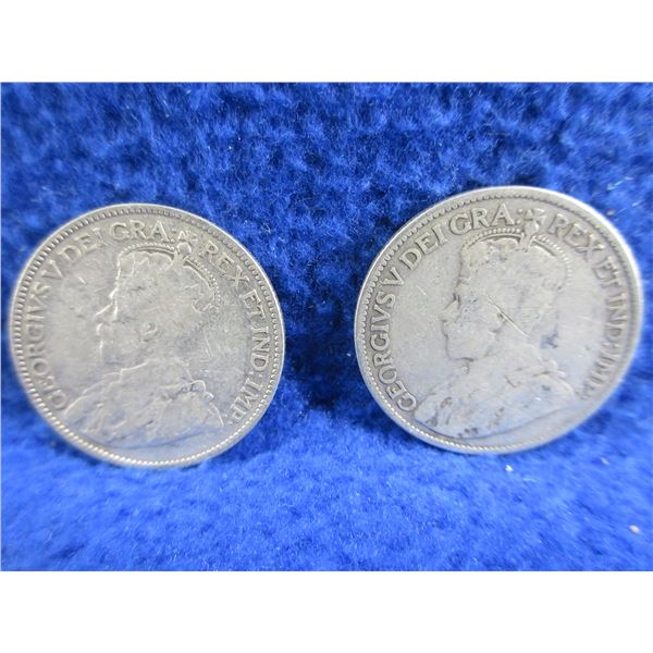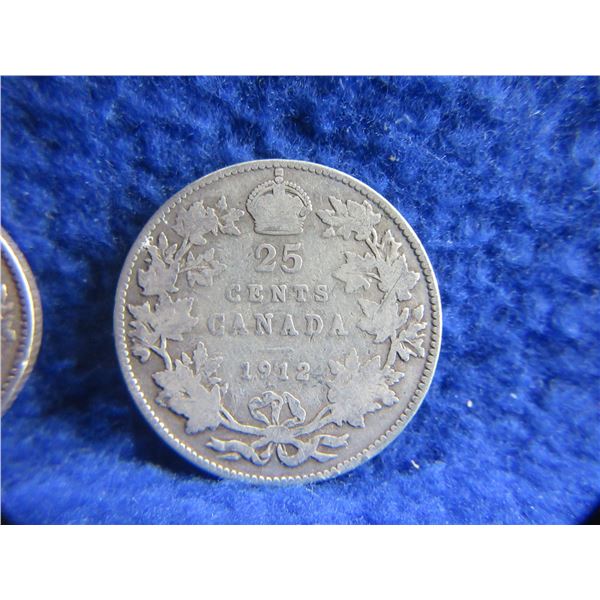 2 Canadian 25 Cent Coins - .925 Silver - 1912, 1913