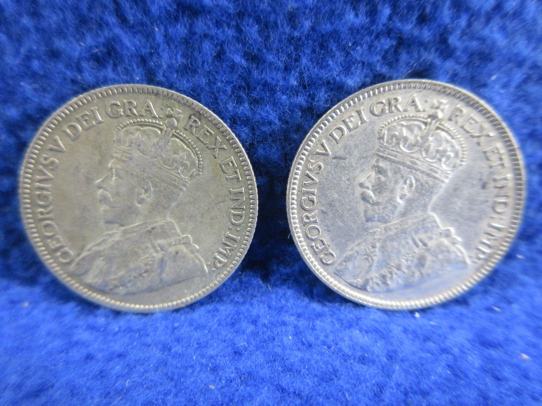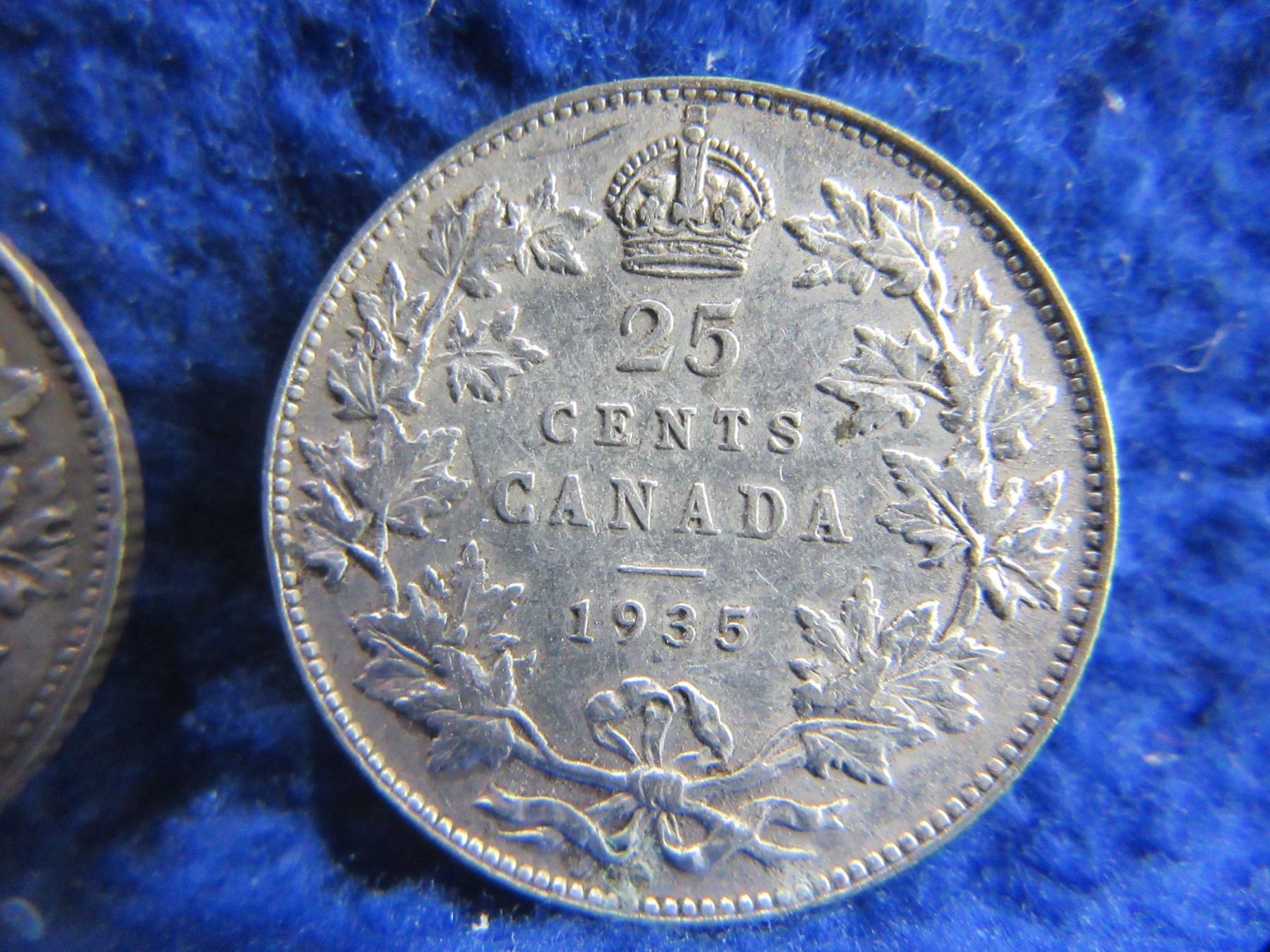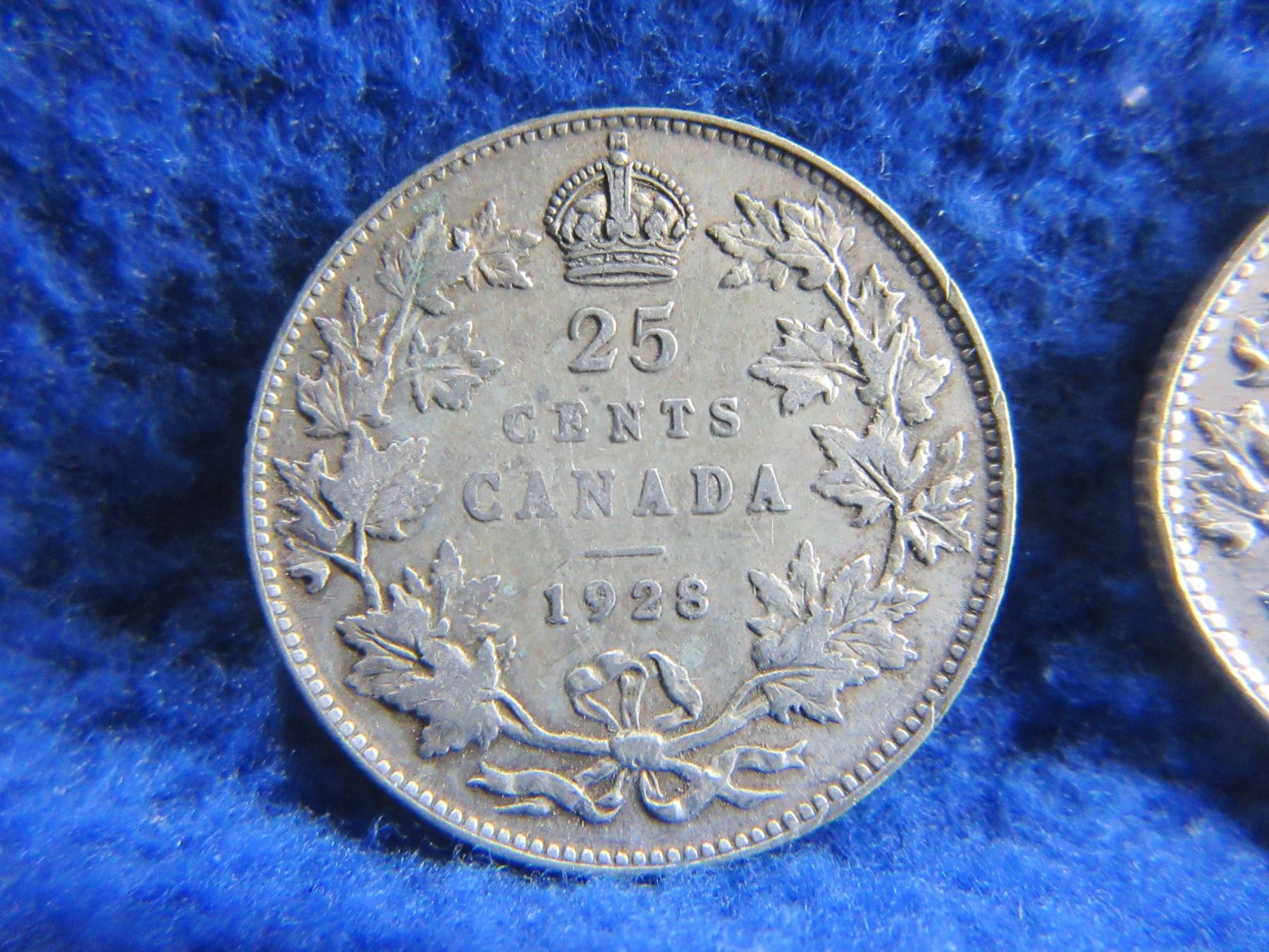 Lot 1255 2 Canadian 25 Cent Coins - .800 Silver - 1928, 1935