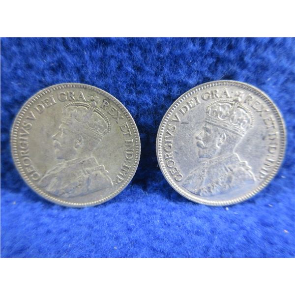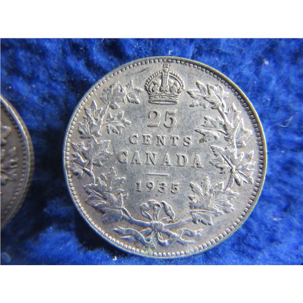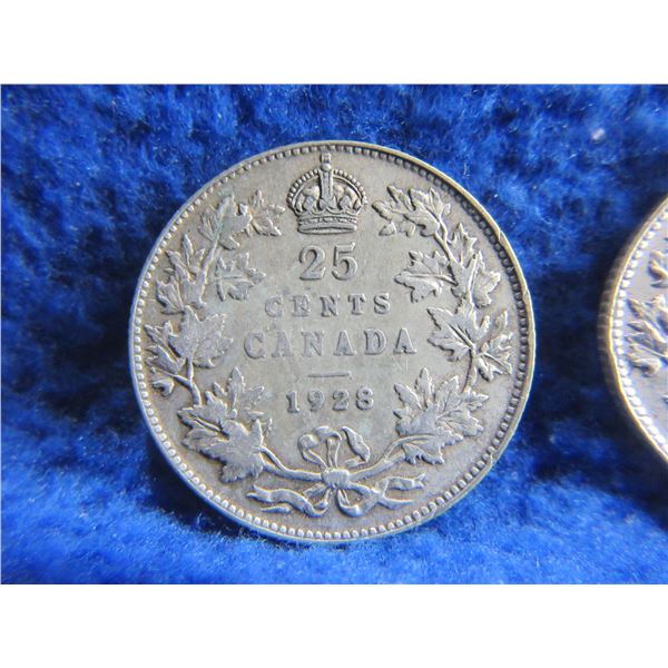 2 Canadian 25 Cent Coins - .800 Silver - 1928, 1935