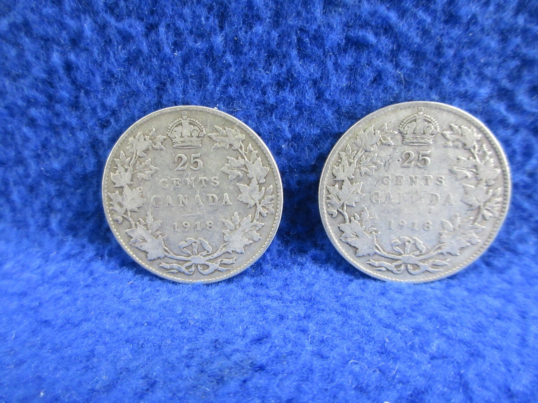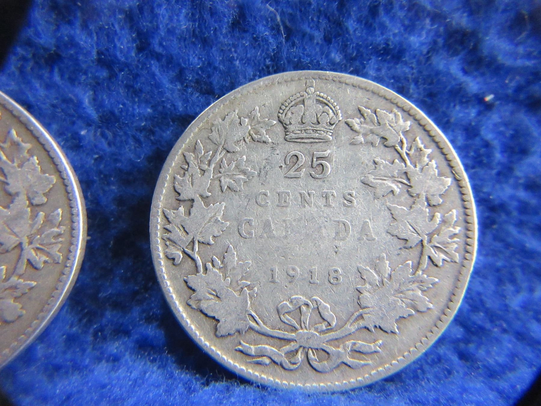 2 Canadian 25 Cent Coins - .925 Silver - 1918 x 2