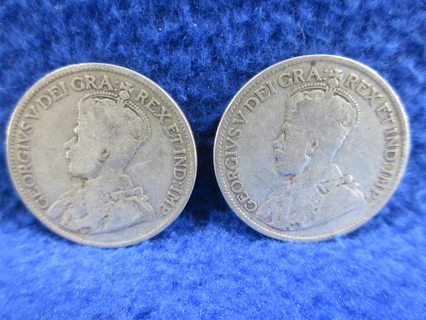 Lot 1260 2 Canadian 25 Cent Coins - .925 Silver - 1918 x 2