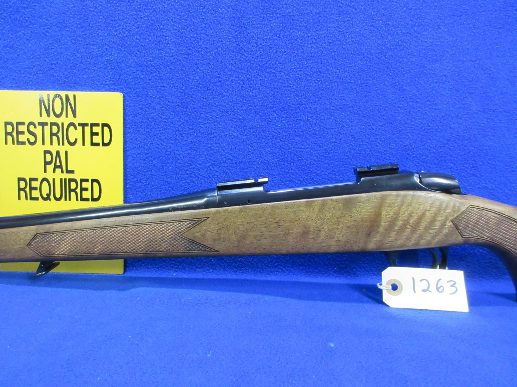 Non-Restricted - BSA Guns Ltd. in 7MM Rem. Mag - This is a bolt action rifle with floor plate magazine, action appears to be in good to very good working order. Barrel is 23 1/2", rifling is good to very good, bluing is good to very good, has no sights but has Weaver style bases, stock has nice grain and is good to very good, length of pull is 14", rubber recoil pad good, comes with quick release swivels. Ser # 12R4278