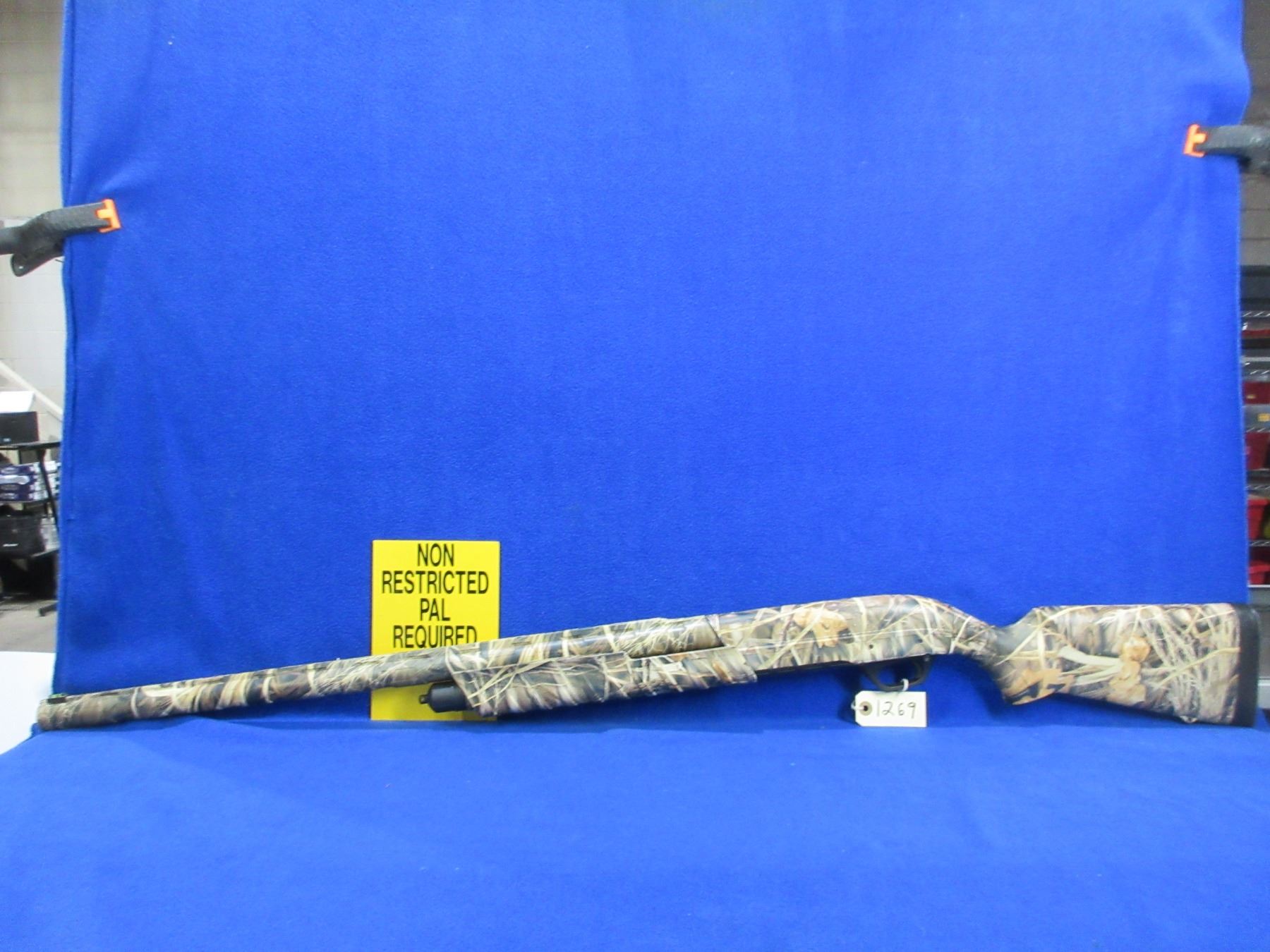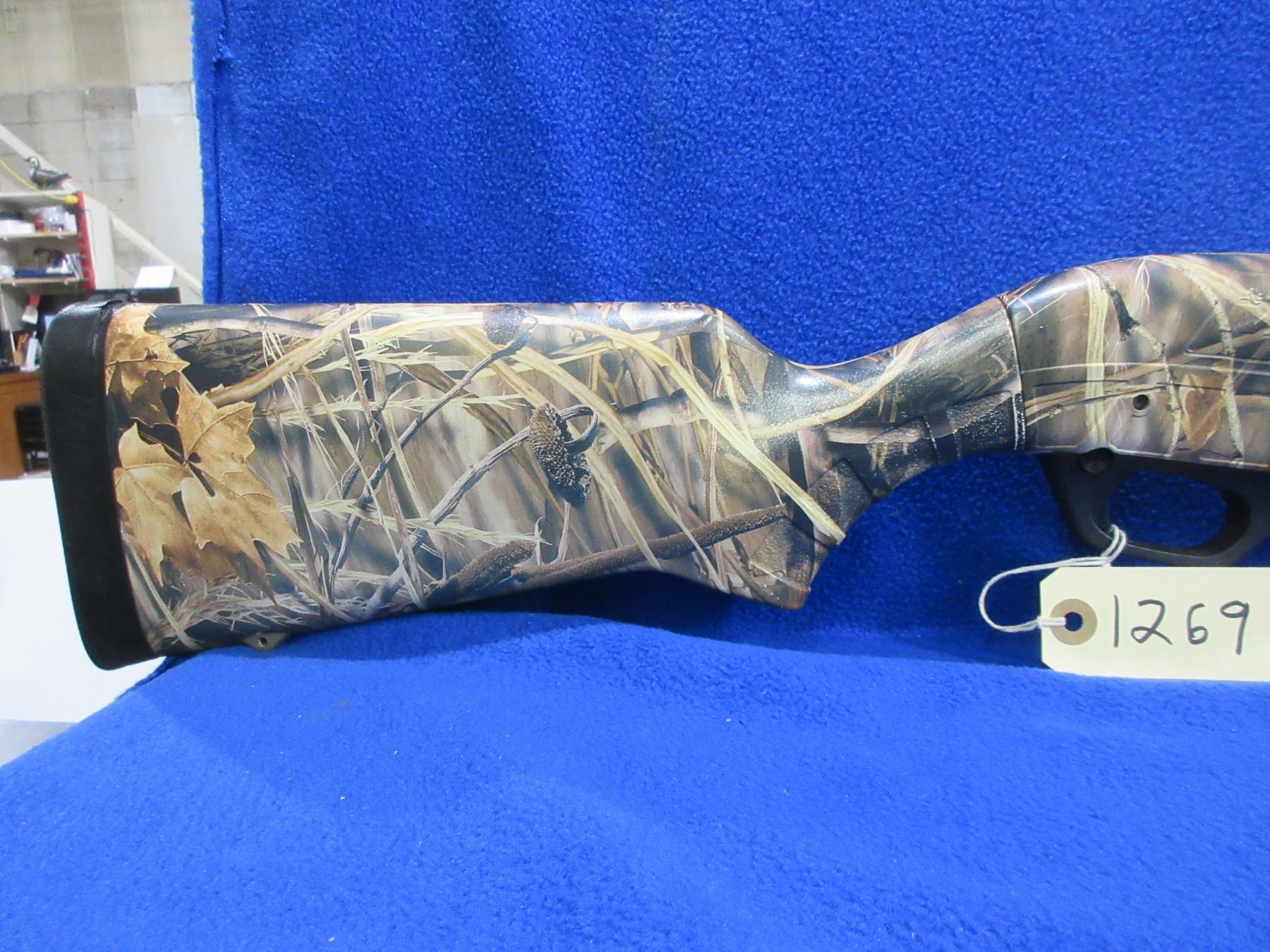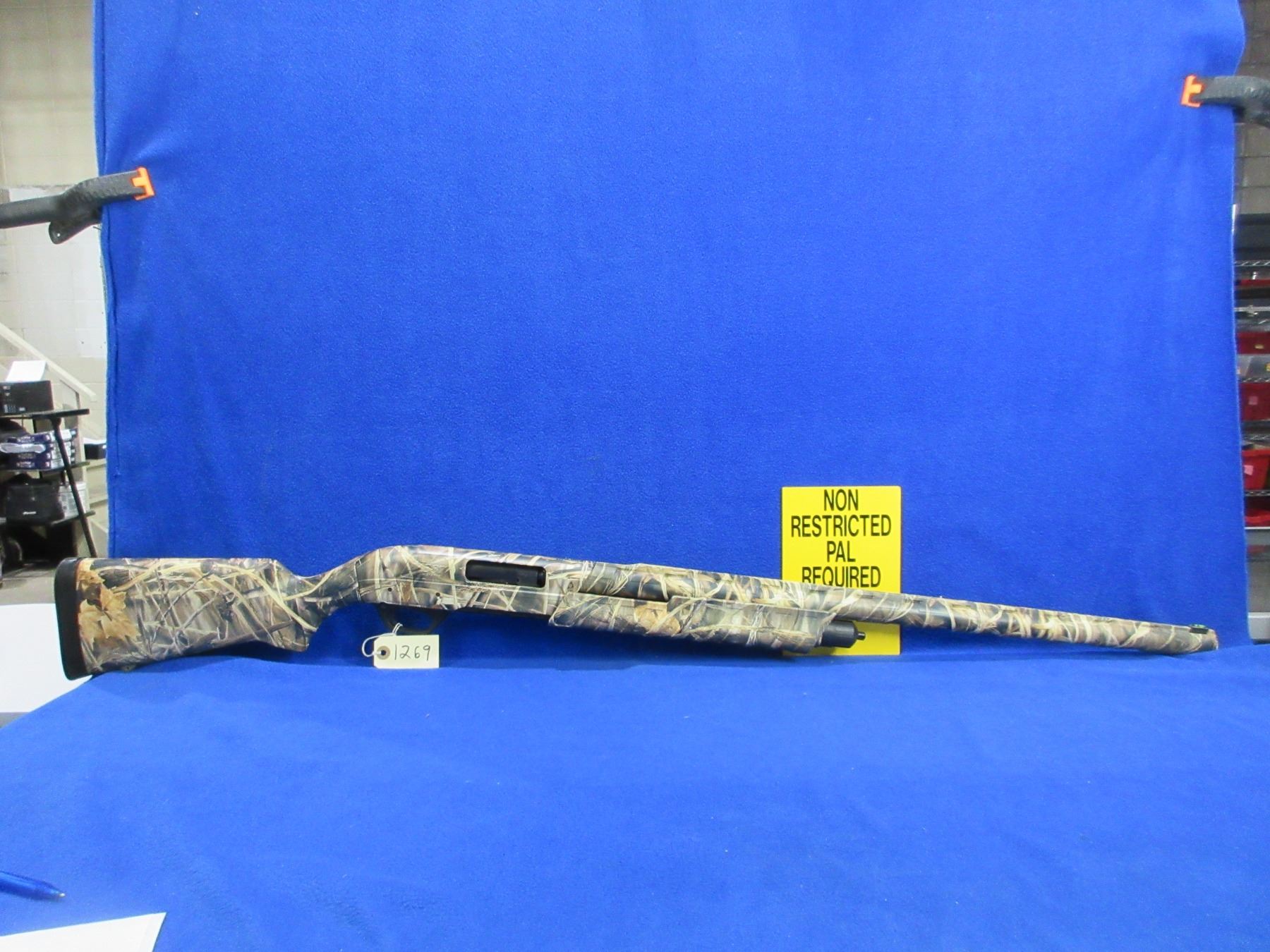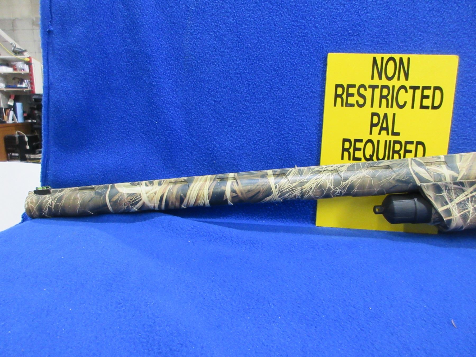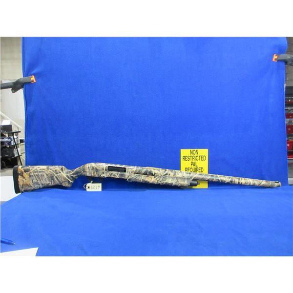 Non-Restricted - Remington Model M887 in 12 Ga. 3 1/2" - This is a pump action shotgun with tube magazine and removable choke, action appears to be in very good working order. Barrel is 28", bore is very good, bluing is very good, has fiber optic front sight, synthetic camo stock and forearm are very good, length of pull is 13 3/4", rubber recoil pad very good, very good camo pattern (do not lay on the ground in autumn). Ser # AAE059665