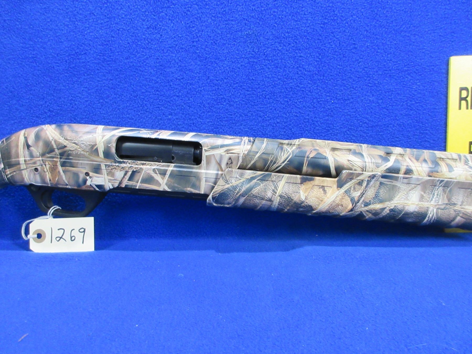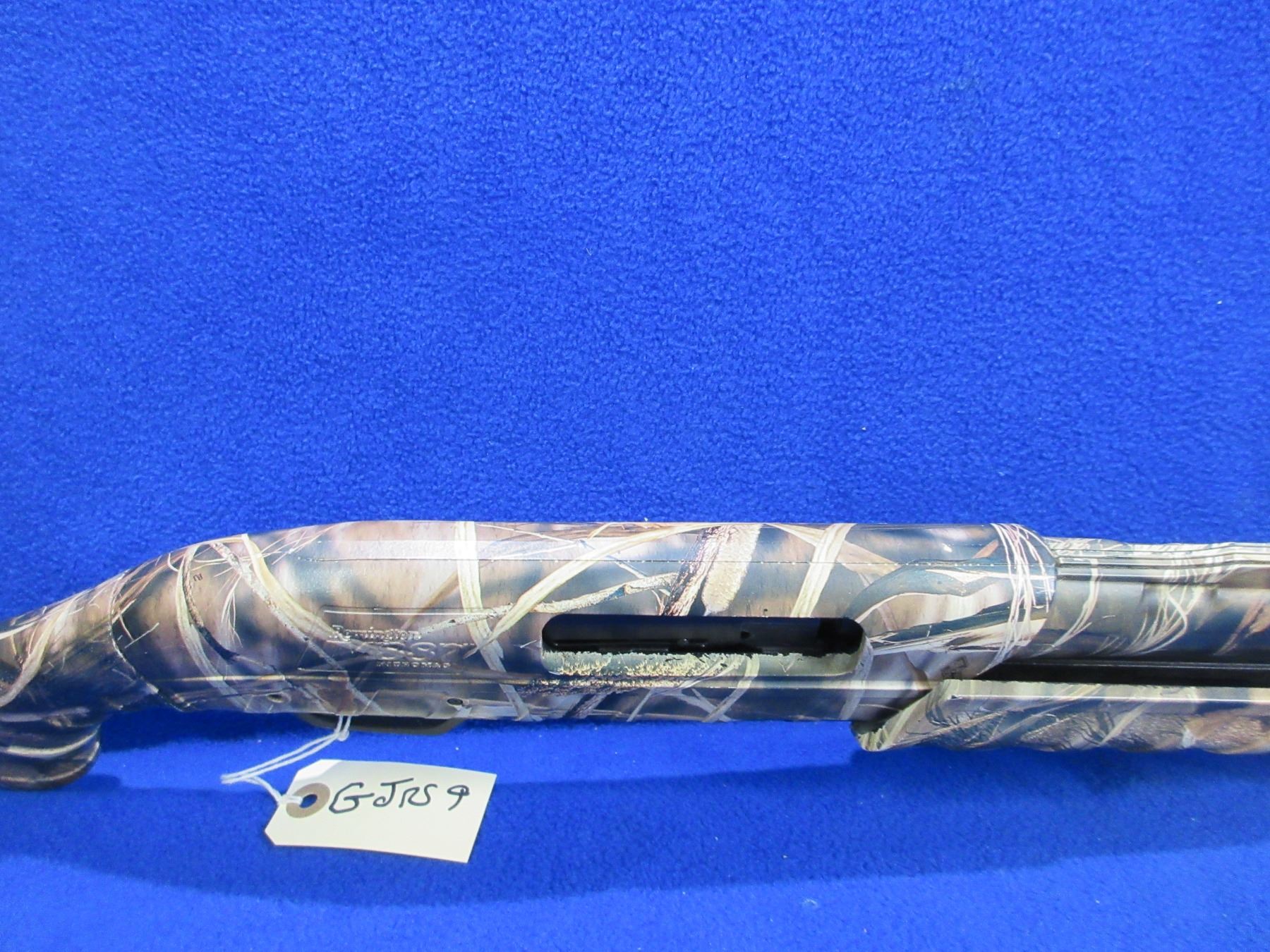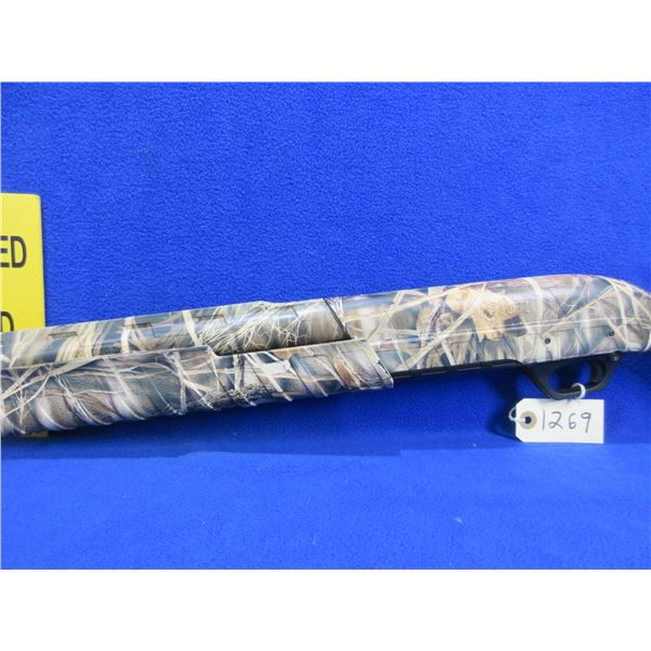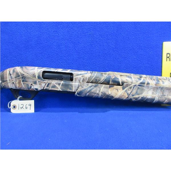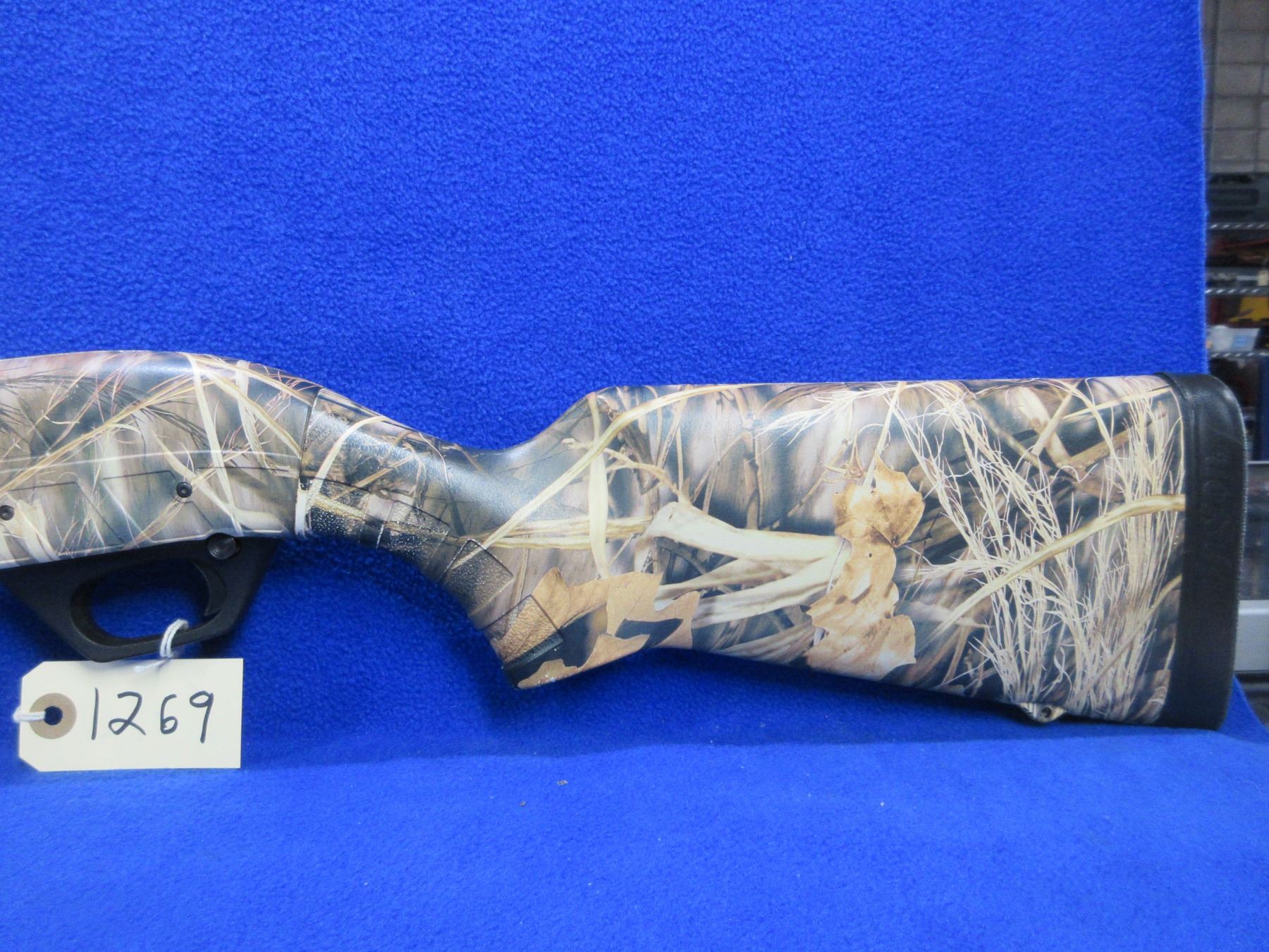Non-Restricted - Remington Model M887 in 12 Ga. 3 1/2" - This is a pump action shotgun with tube magazine and removable choke, action appears to be in very good working order. Barrel is 28", bore is very good, bluing is very good, has fiber optic front sight, synthetic camo stock and forearm are very good, length of pull is 13 3/4", rubber recoil pad very good, very good camo pattern (do not lay on the ground in autumn). Ser # AAE059665