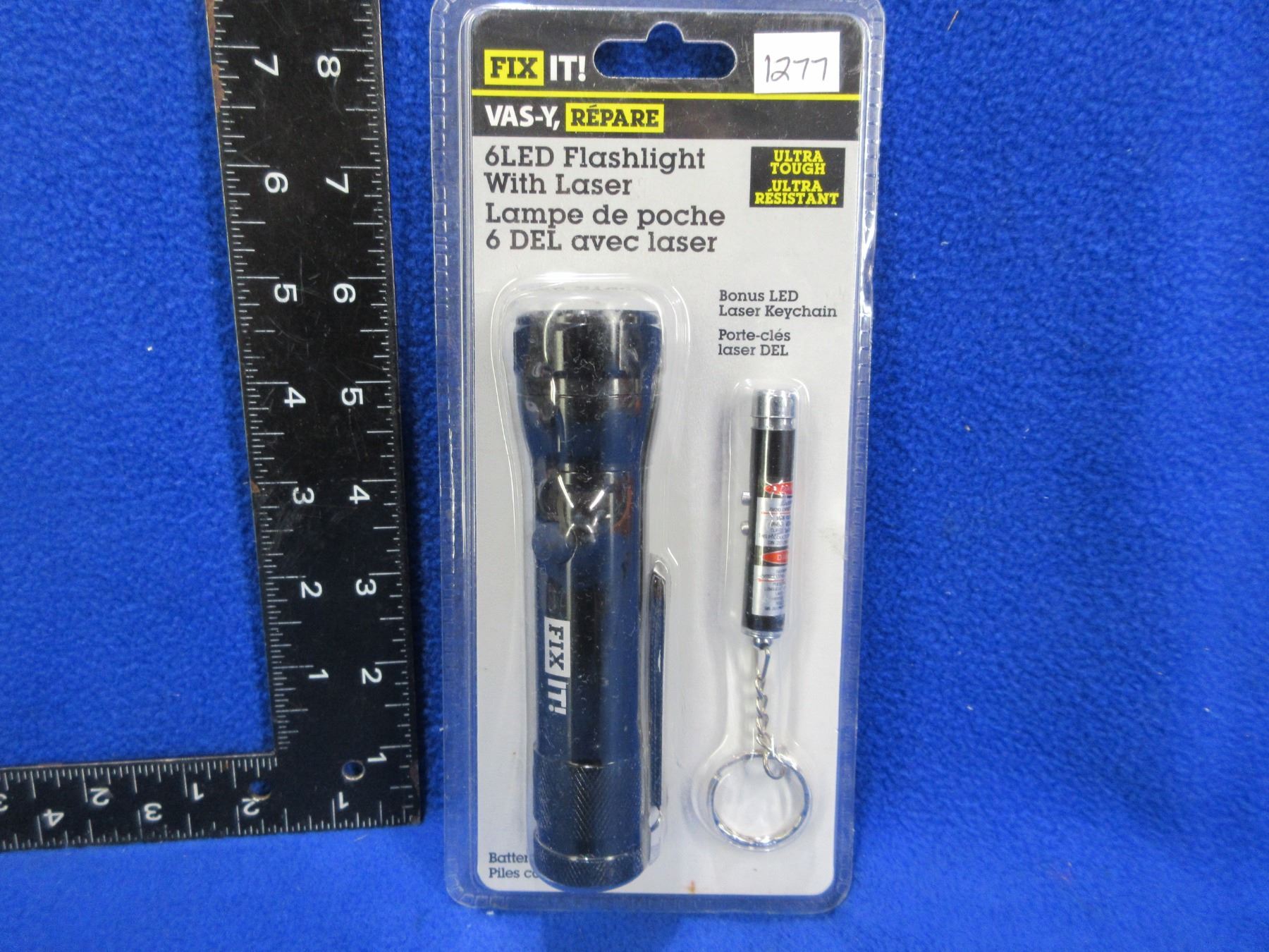 Lot 1277 NEW - Fix It 6LED Flashlight with Laser, Bonus Laser Keychain