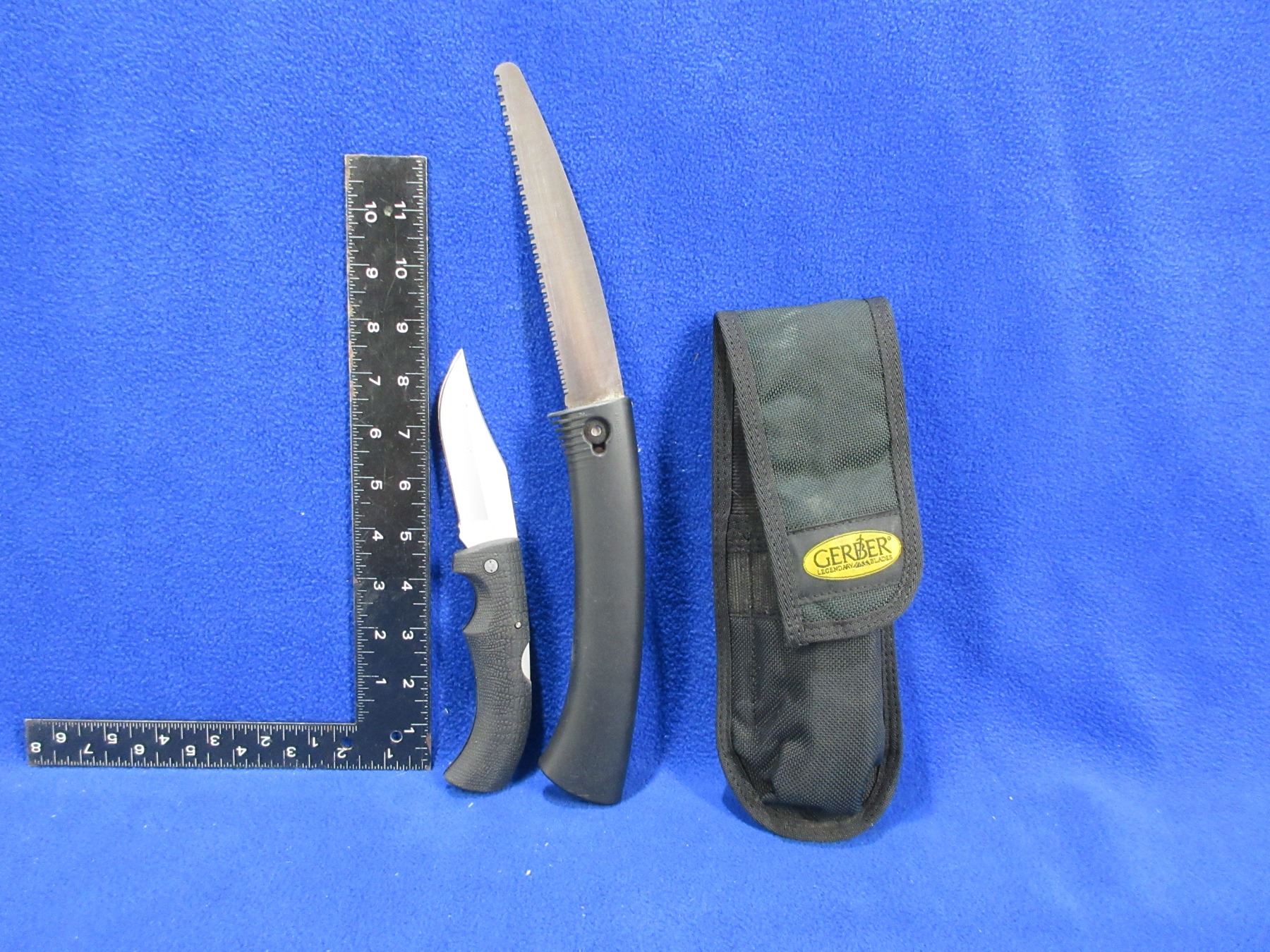 Lot 1282 Gerber Hunting Set - Gator 4" Folding Knife, 6 1/2" Sliding Saw, Nylon Sheath