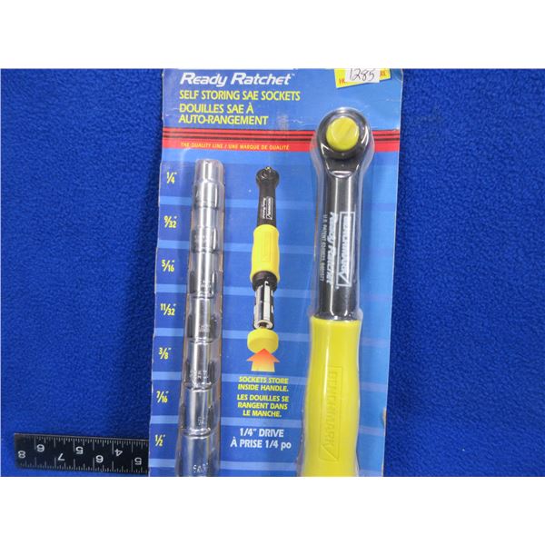 Unknown Ratchet set and Benchmark Ready Ratchet with Self Storing SAE Sockets