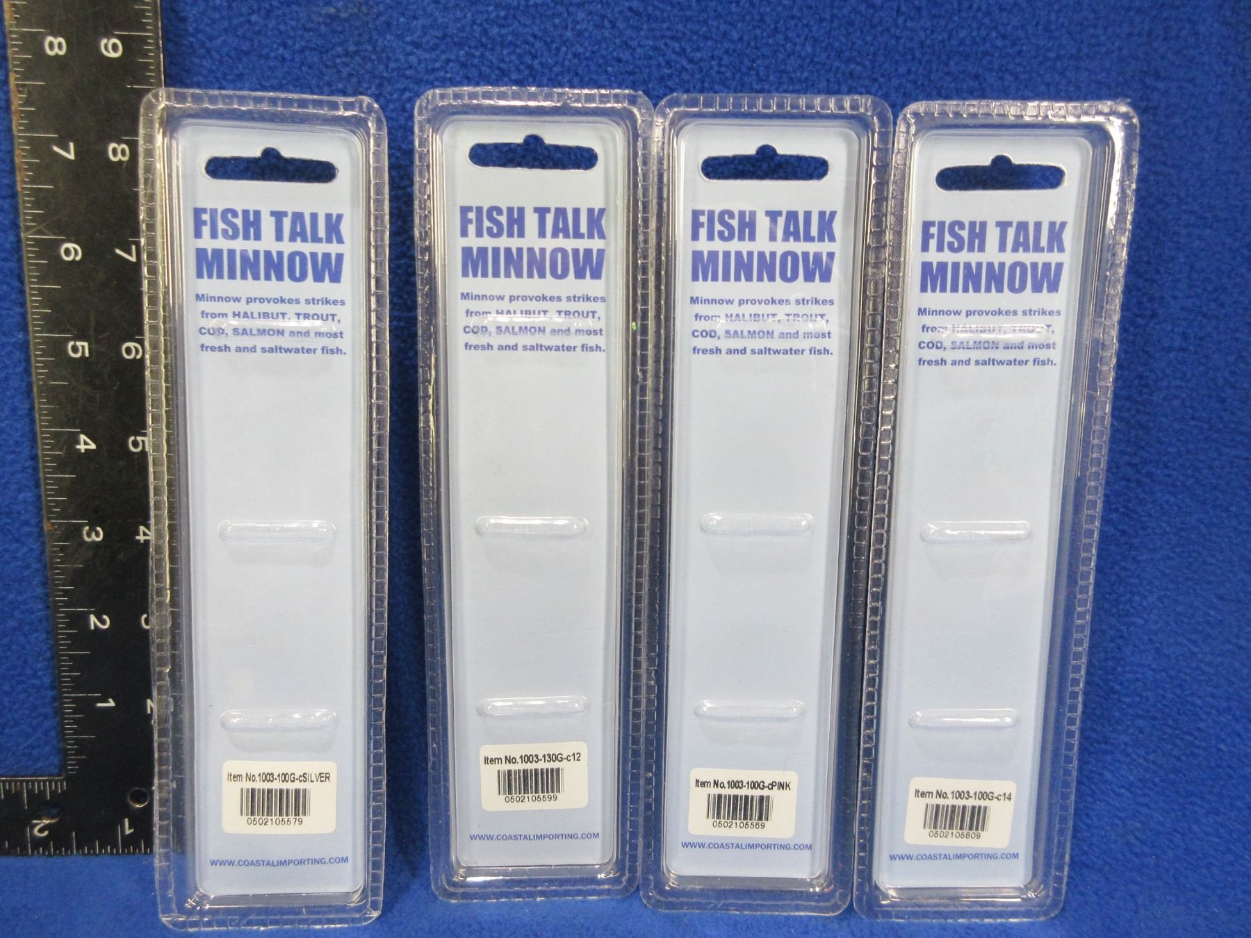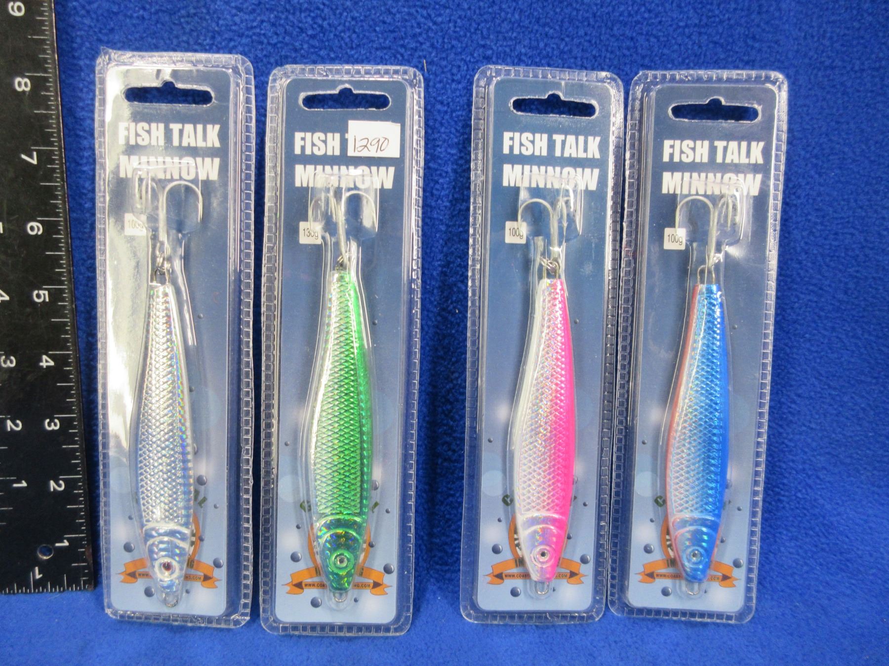 Lot 1290 NEW - 4 Fish Talk Minnow Lures - Assorted Colors, 100g & 130g