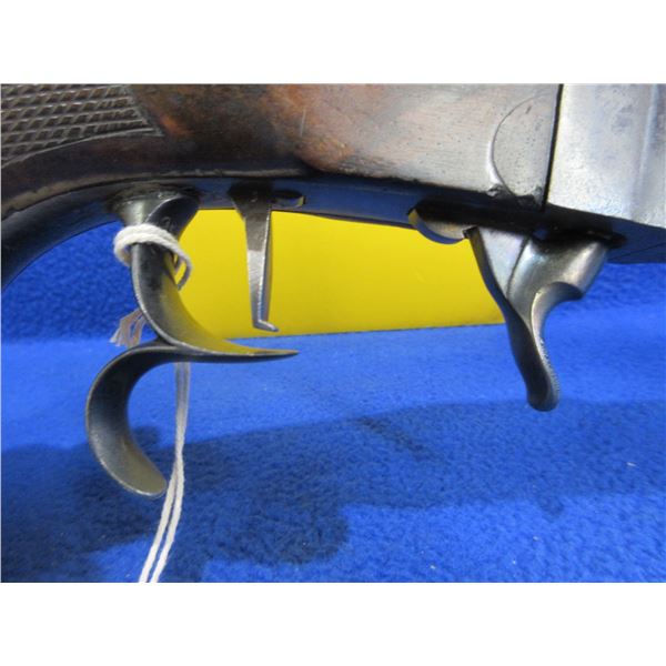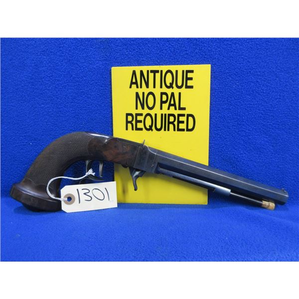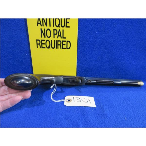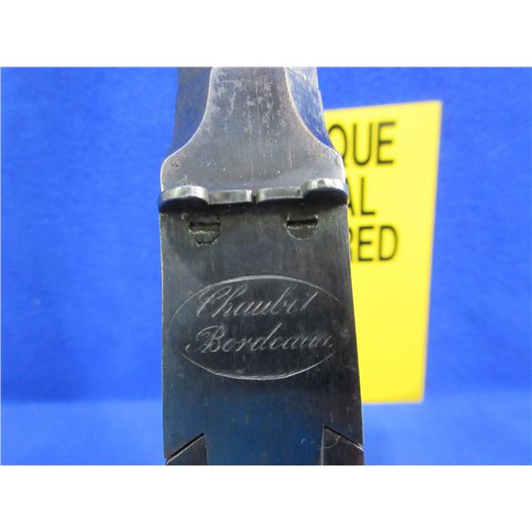 Antique - No PAL Required - Chaubet Bordeaux Cap & Ball Pistol in 50 Cal. - This is an underhammer cap and ball muzzlelading pistol, action appears to be in good to very good working order. Octagon barrel is 7", Micro-grooved rifle bore appears good, bluing is starting to turn grey, checkered walnut wood grip is good for age but has 2 chip repairs on the right side of action (very nicely repaired), has open spurred triggerguard to accommodate underhammer mechanism. Comes with appears to be original ramrod/cleaning rod. Ser # 2