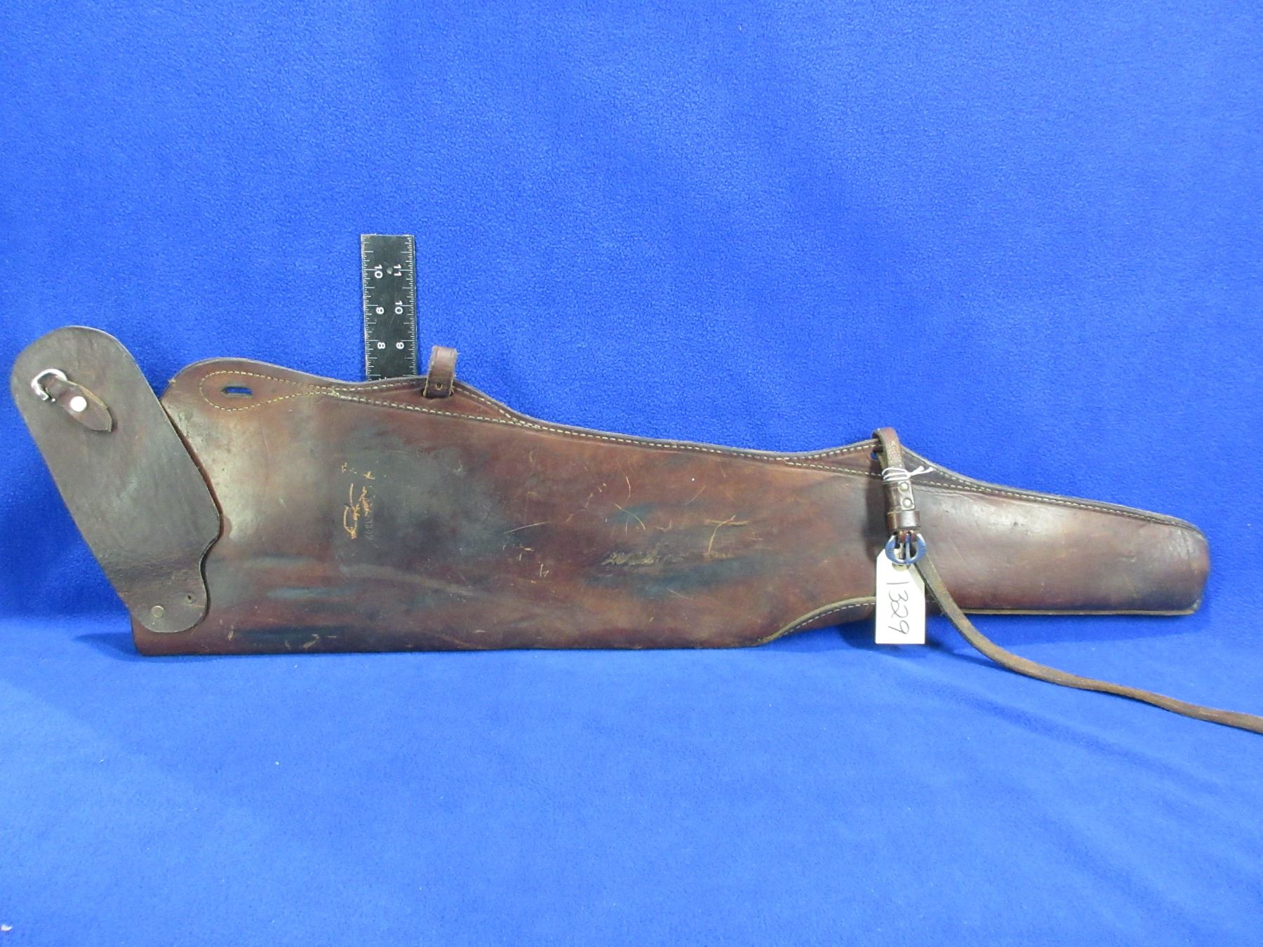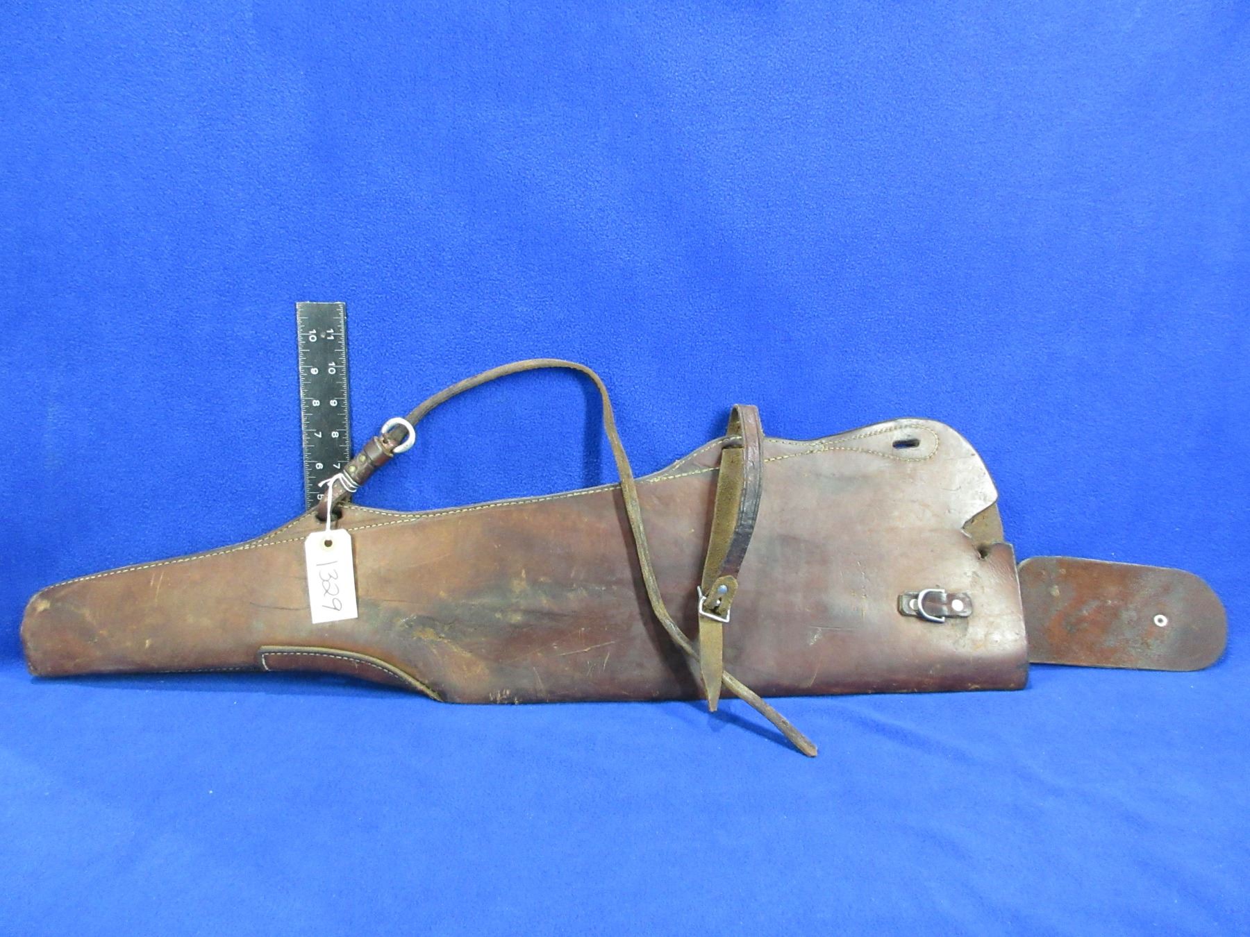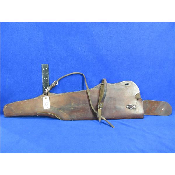 Hunters Leather Saddle Scabbard - 32" Overall Length - One stud damaged, one buckle damaged, Marked 402L-22G