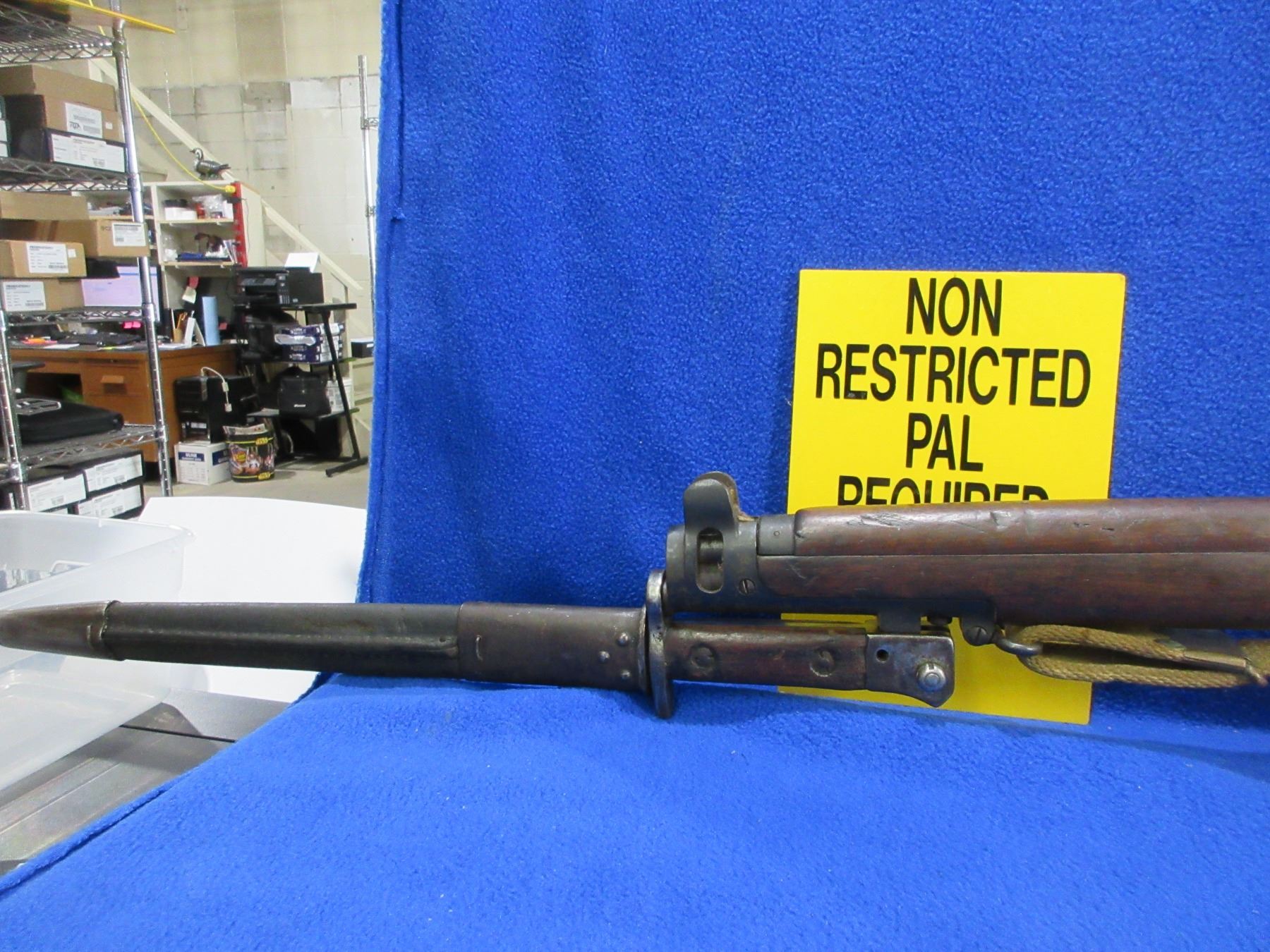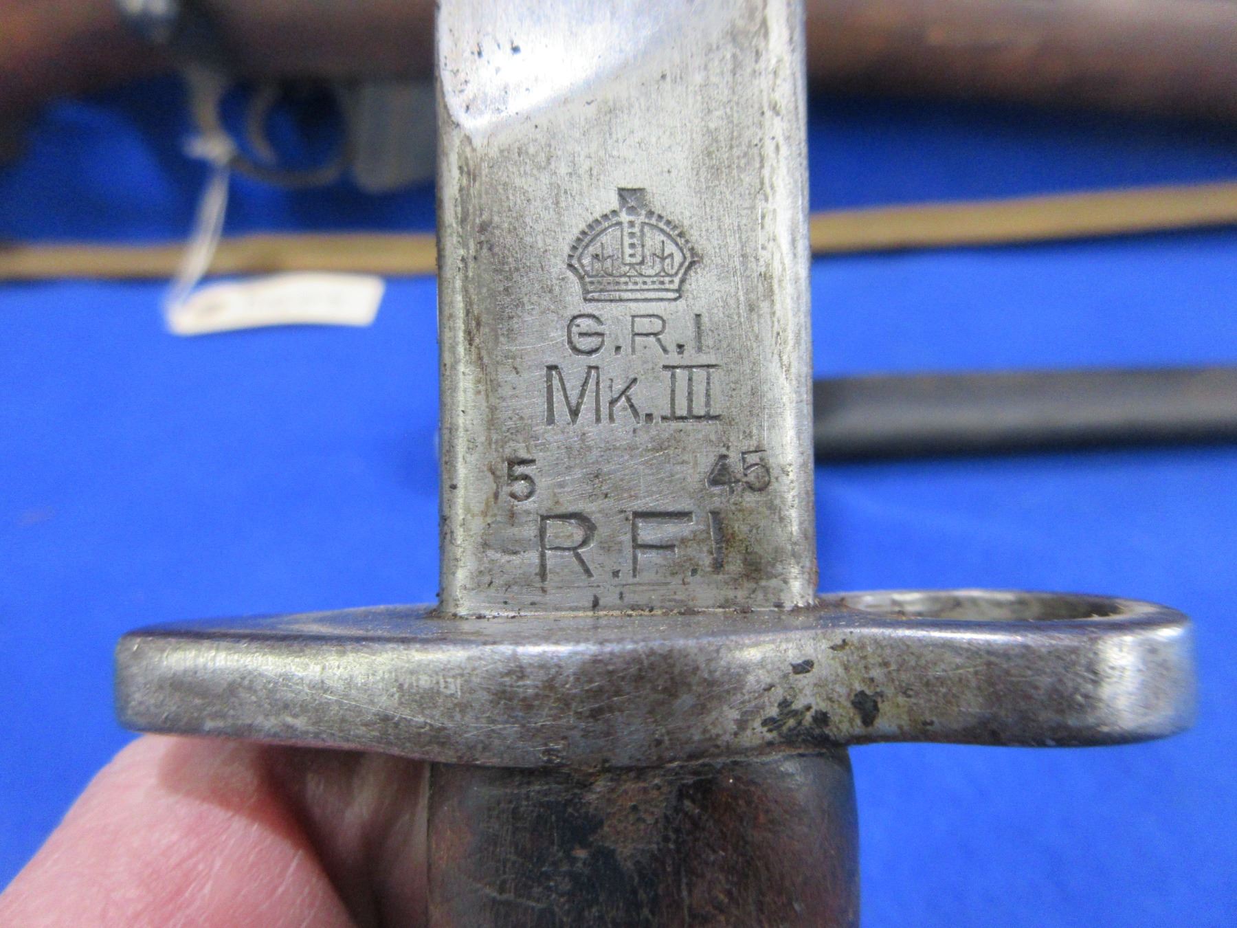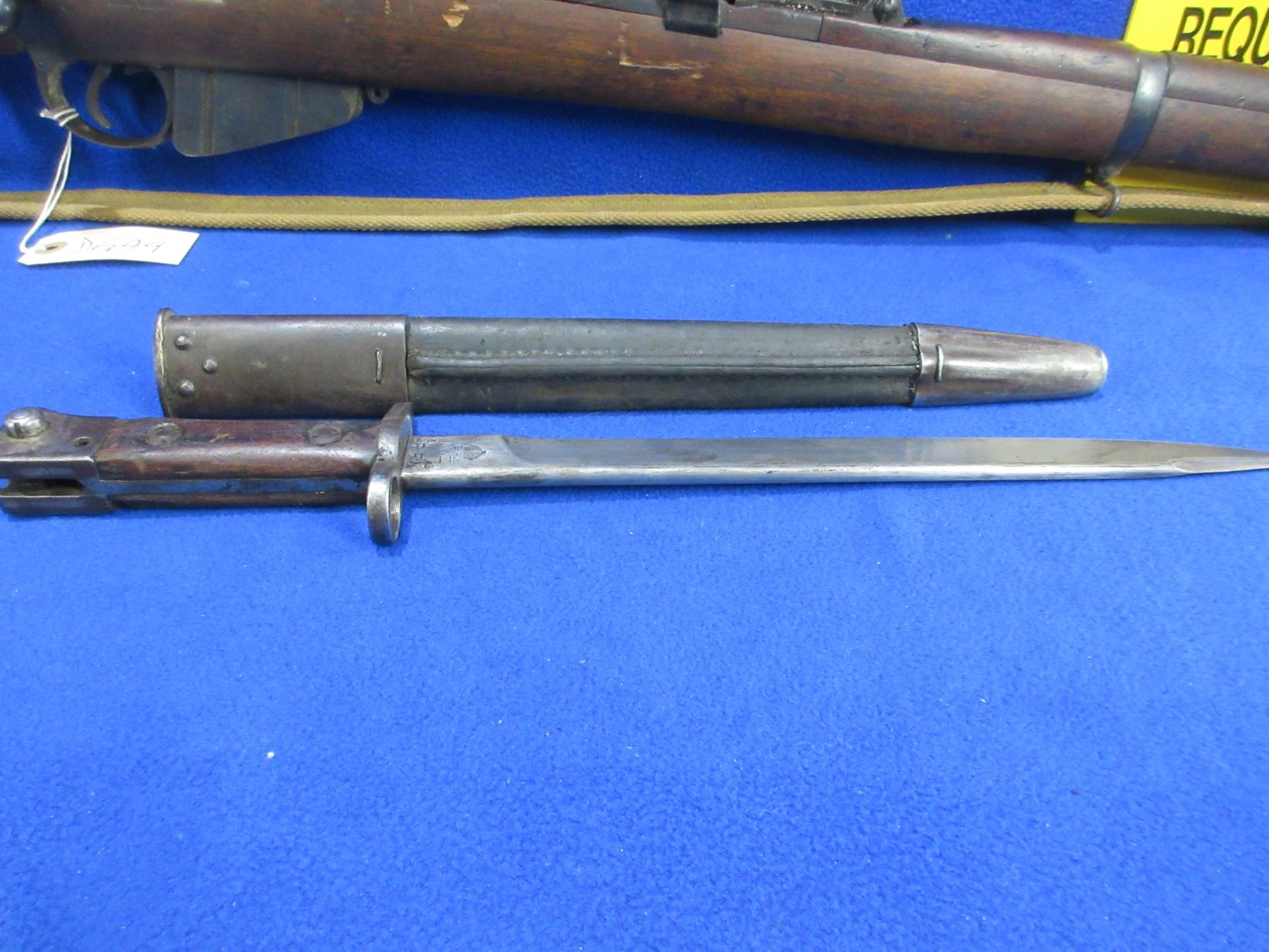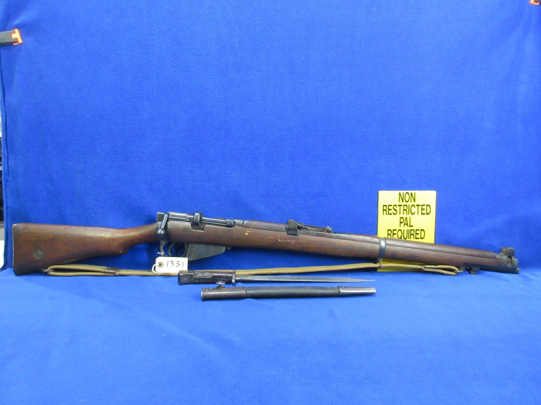 Non-Restricted - Lee Enfield 1916 SHTLE III in 303 British - This is a bolt action rifle with removable magazine, action appears to be in good to very good working order. Barrel is 25", rifling is fair to good (needs wet cleaning), bluing is fair to good, has both sights, full wood stock is good with many usage marks, length of pull is 13", brass butt plate good with brass oiler in the stock, comes with Mark III bayonet with scabbard, swivels and web strap. Probably has seen combat and is very complete but needs a good cleaning (has cosmoline on it). Action, stock and bolt are numbers matching. Ser # 1682