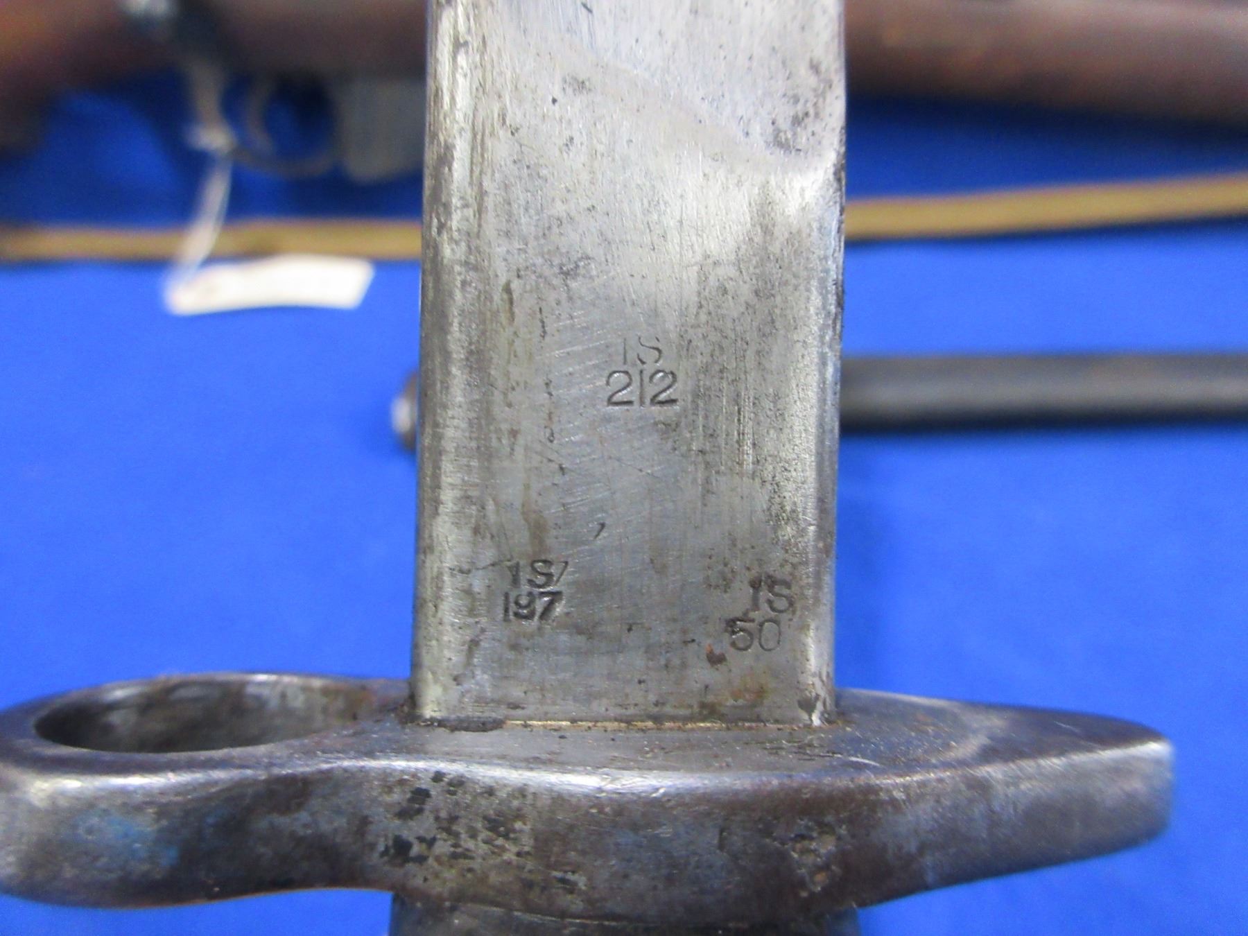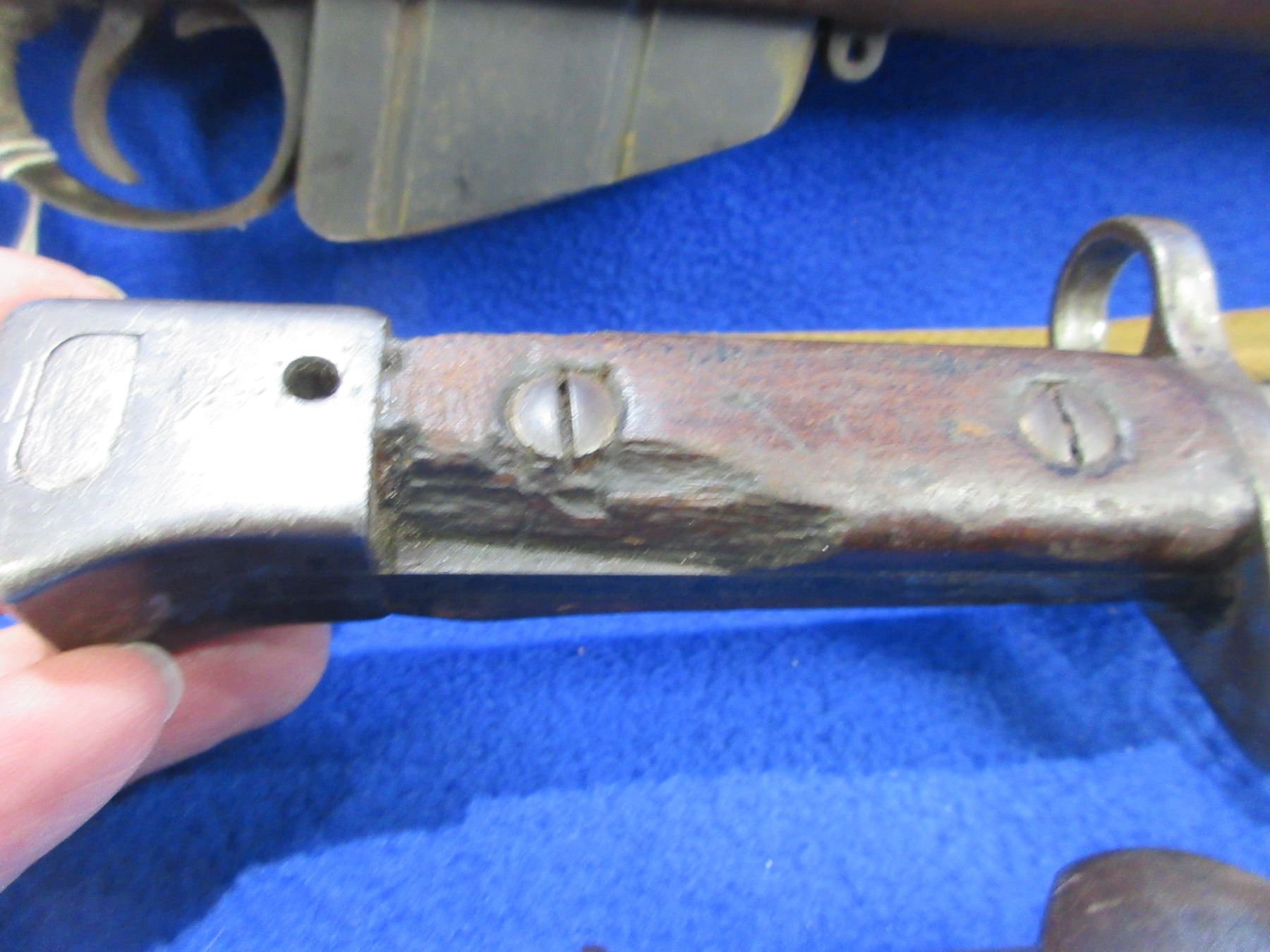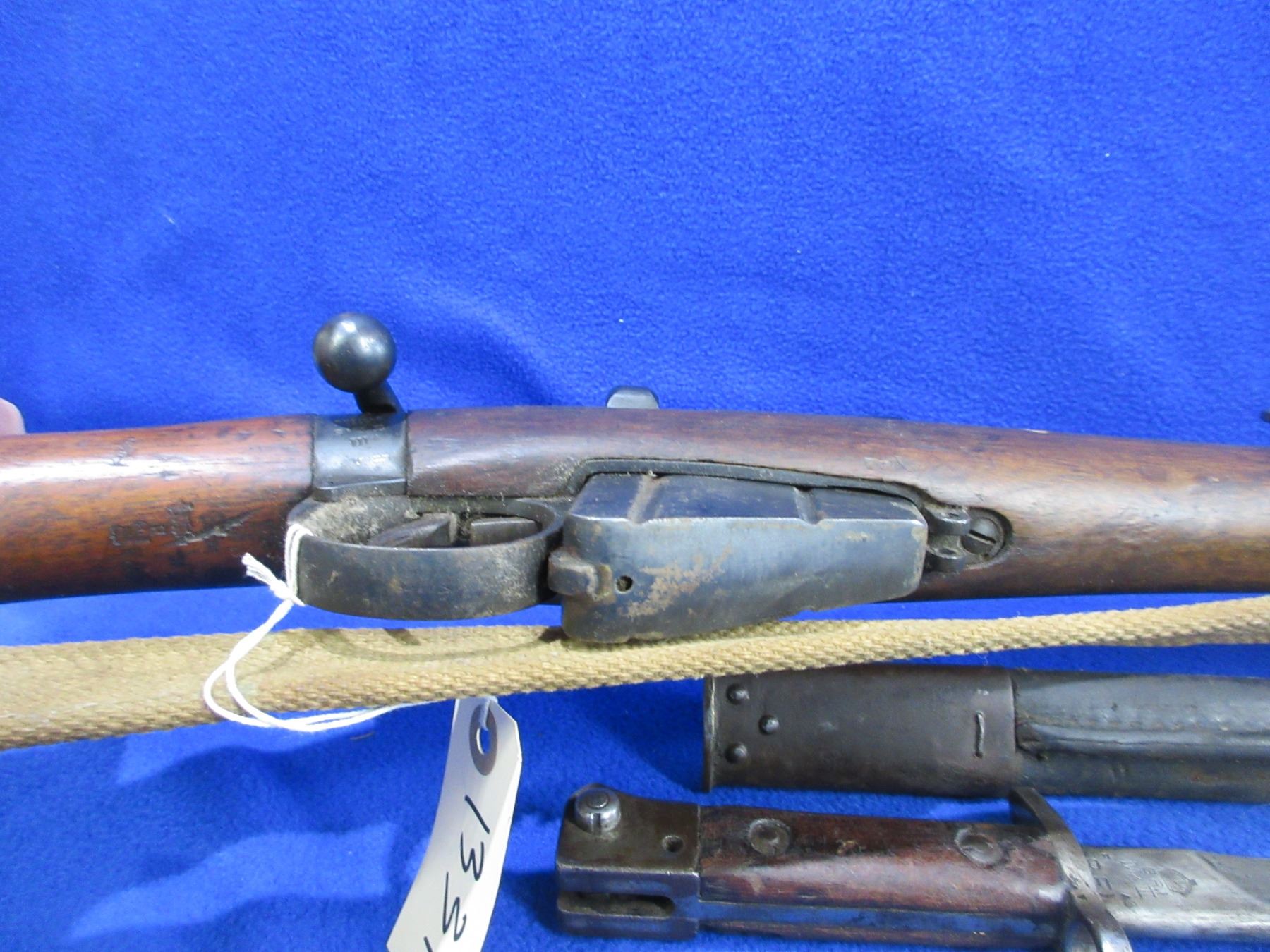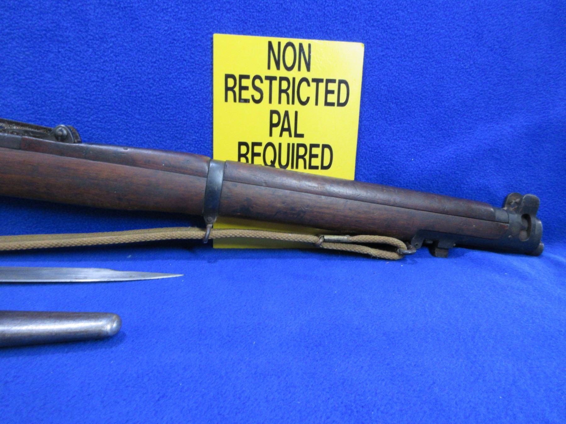Non-Restricted - Lee Enfield 1916 SHTLE III in 303 British - This is a bolt action rifle with removable magazine, action appears to be in good to very good working order. Barrel is 25", rifling is fair to good (needs wet cleaning), bluing is fair to good, has both sights, full wood stock is good with many usage marks, length of pull is 13", brass butt plate good with brass oiler in the stock, comes with Mark III bayonet with scabbard, swivels and web strap. Probably has seen combat and is very complete but needs a good cleaning (has cosmoline on it). Action, stock and bolt are numbers matching. Ser # 1682