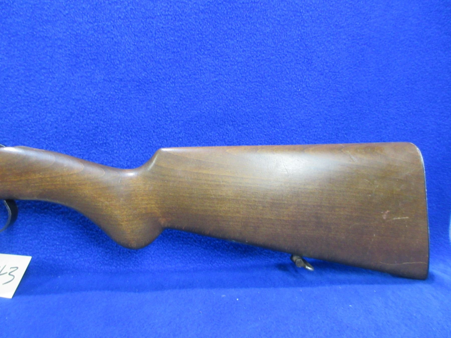 Non-Restricted - Husqvarna Model Sakrat in 22 LR - This is a single shot bolt action rifle, action appears to be in good to very good working order. Barrel is 24 1/2", rifling is good but there is lead or something stuck in the barrel (may wet clean), bluing is good but speckled, has both sights, stock is good to very good with minor usage marks, length of pull is 14", metal butt plate good. Ser # 62758