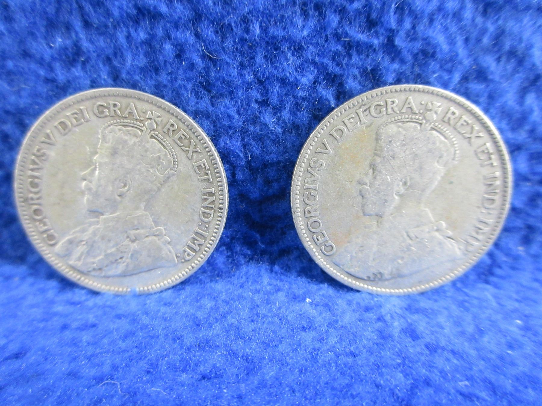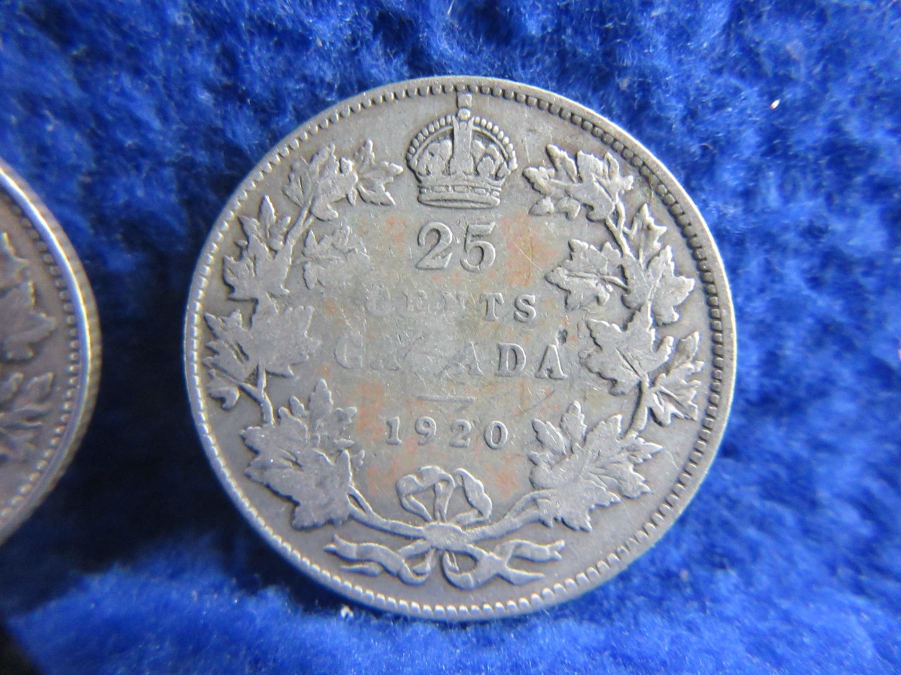 Lot 1353 2 Canadian 25 Cent Coins - .800 Silver - 1920, 1933