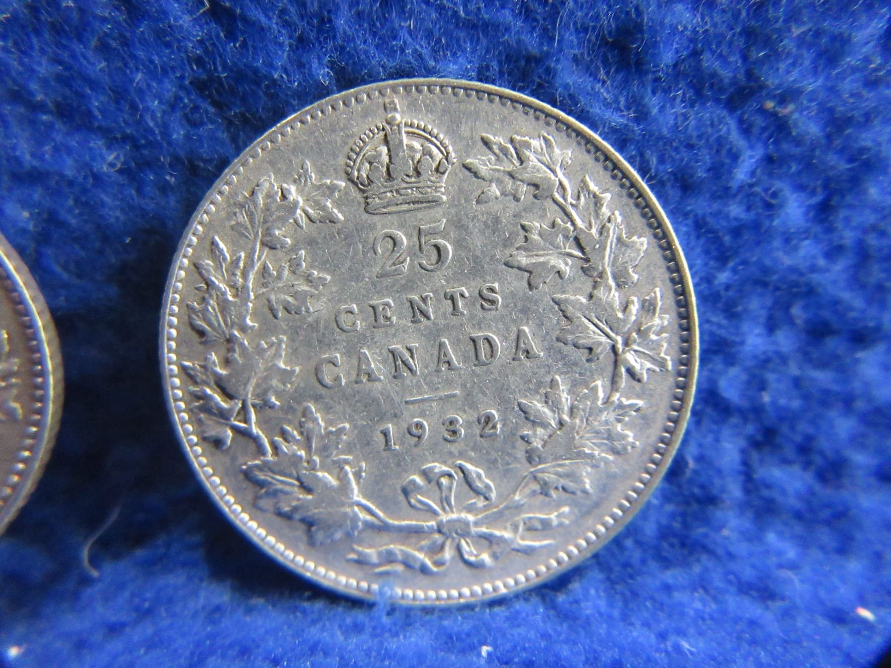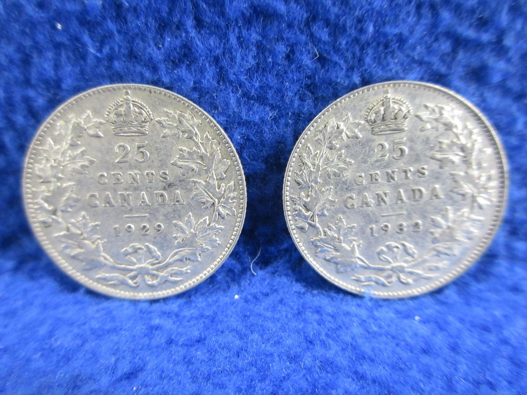 2 Canadian 25 Cent Coins - .800 Silver - 1929, 1932
