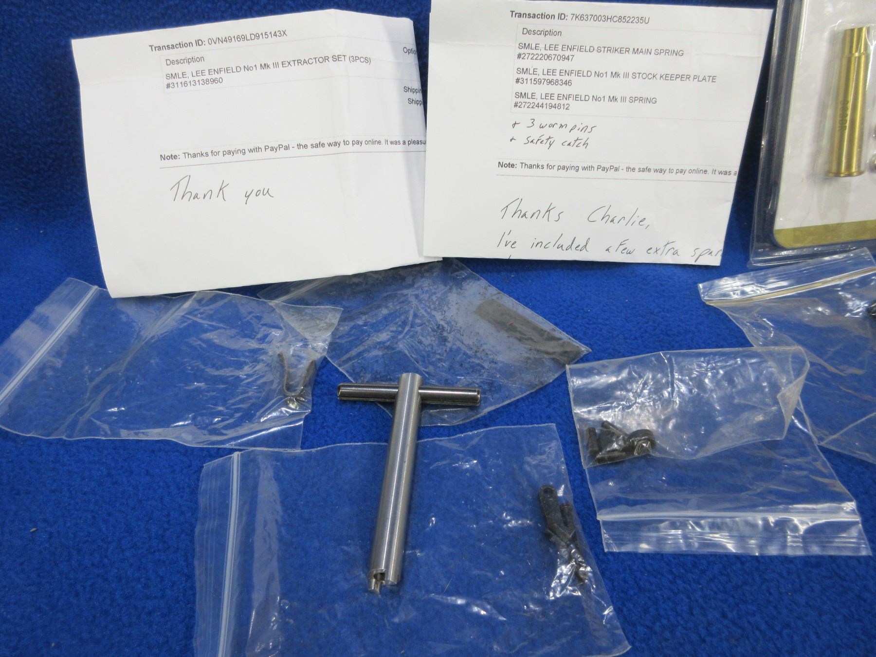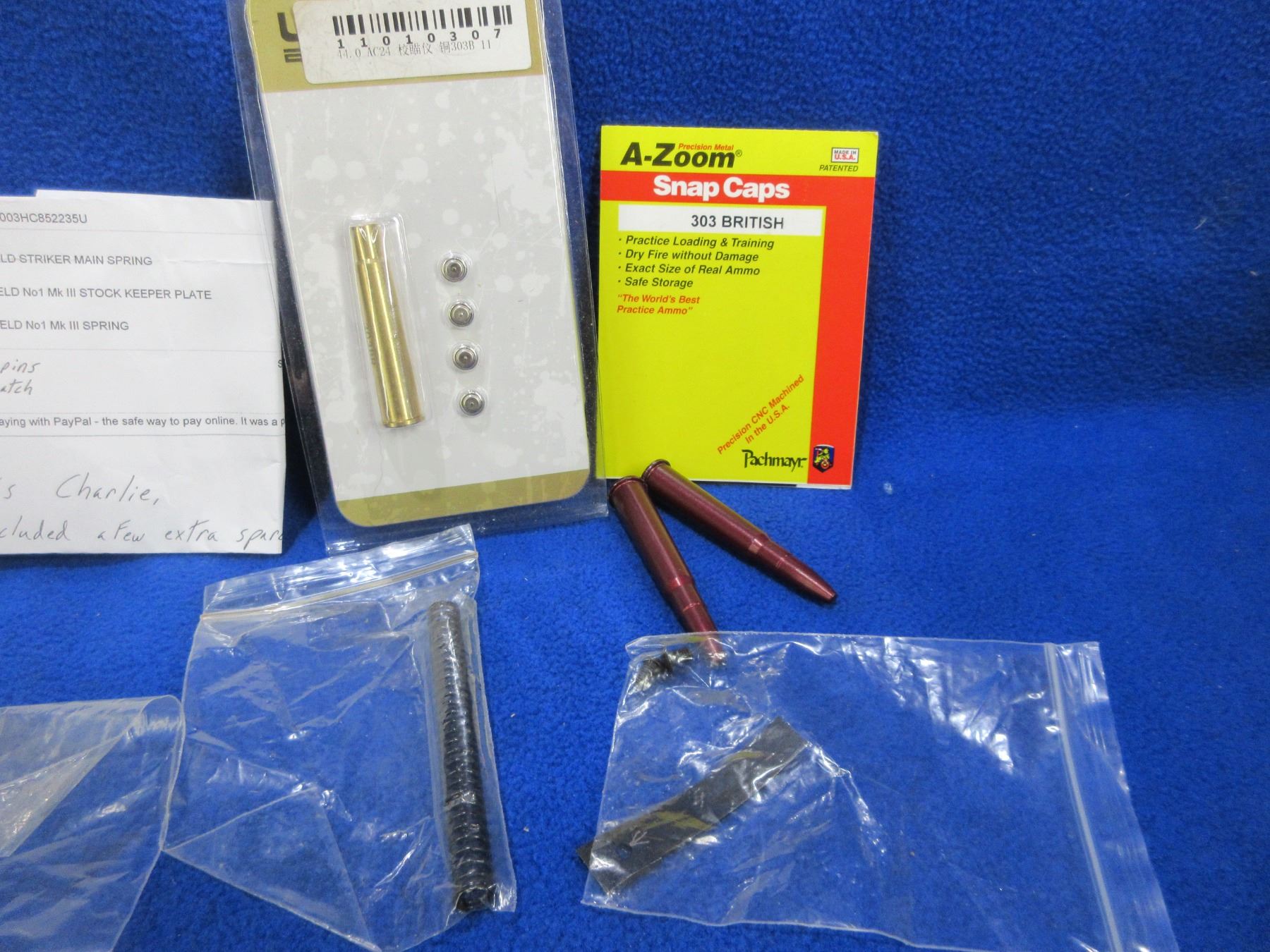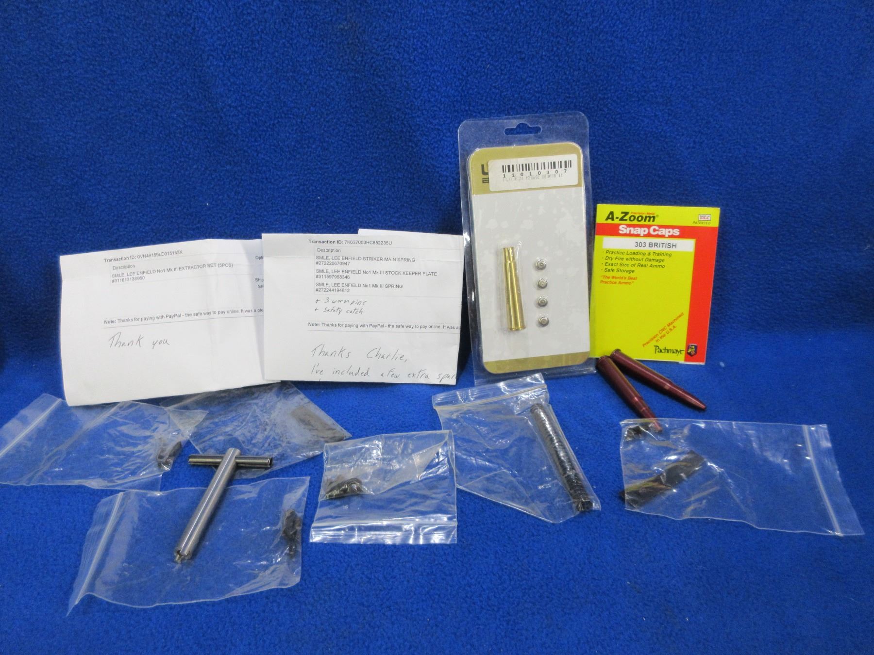 Lot 1365 Lot of Misc. - Enfield Parts & Firing Pin Tool, 303 Brit Snap Caps & Bore Sighter