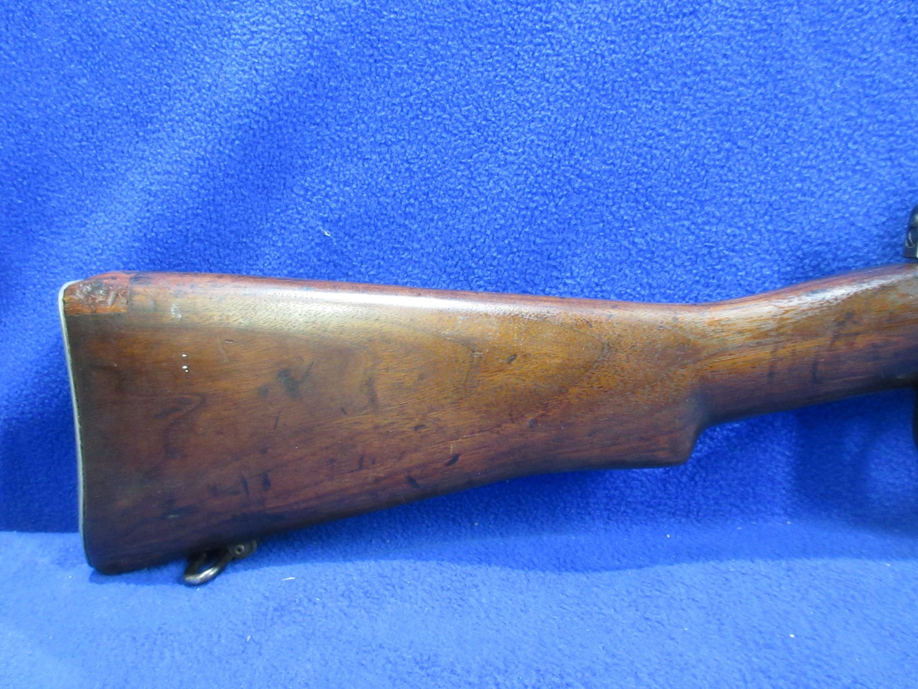 Non-Restricted - Lee Enfield No. 4 Mark I Longbranch 1944 in 303 British - This is a bolt action rifle with removable magazine, action appears to be in good to very good working order. Barrel is 22 1/4", rifling is good, bluing is fair to good on the actionnad barrel has been polished, has both sights, stock is good with many usage marks, forearm has a hairline crack on the right side of action, length of pull is 13 1/2", metal butt plate good, comes with front stud and rear swivel. Ser # 5913555